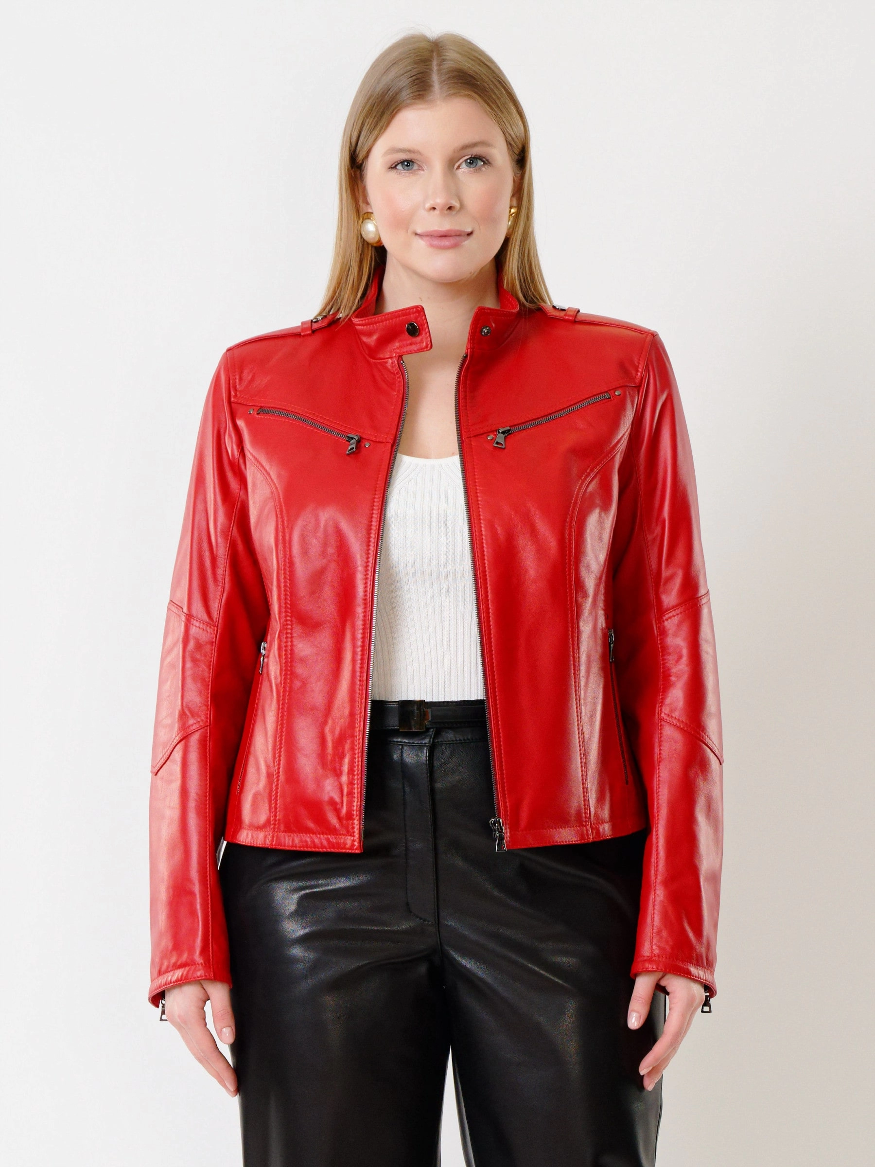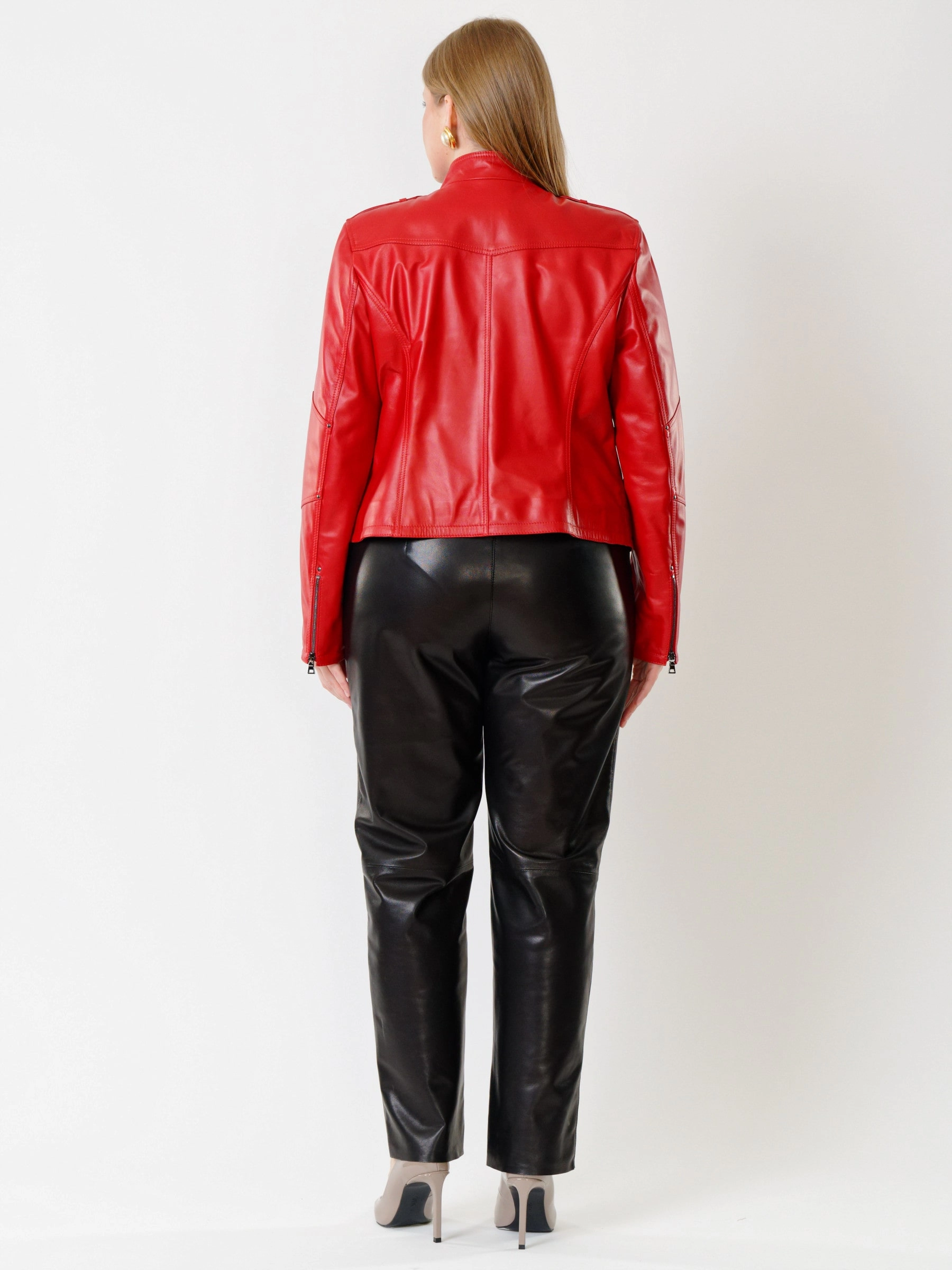 Кожаная куртка женская 399, красная, размер 48, артикул 91352