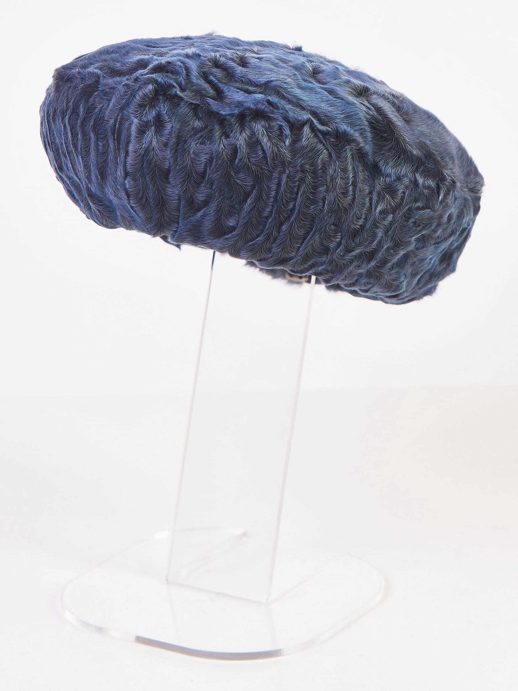 Товар меховой головной (берет) убор из меха каракуля женский м-277, синий, размер 58, артикул 51335 выполнен из каракуль. Рассчитан на сезон: весна-осень.