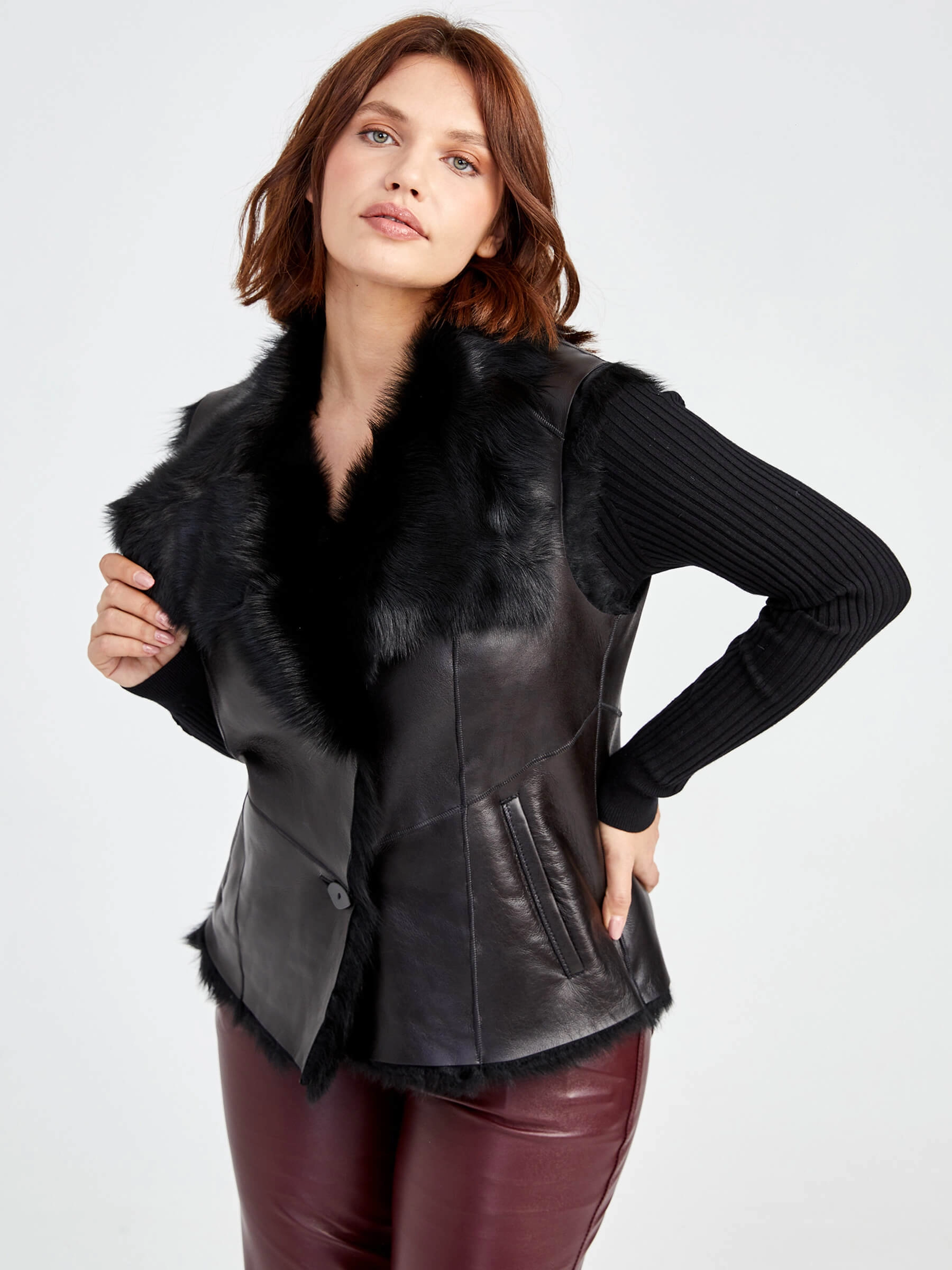 Приталенный женский меховой жилет из тосканы 06 _1, черный, размер 44, артикул 62250