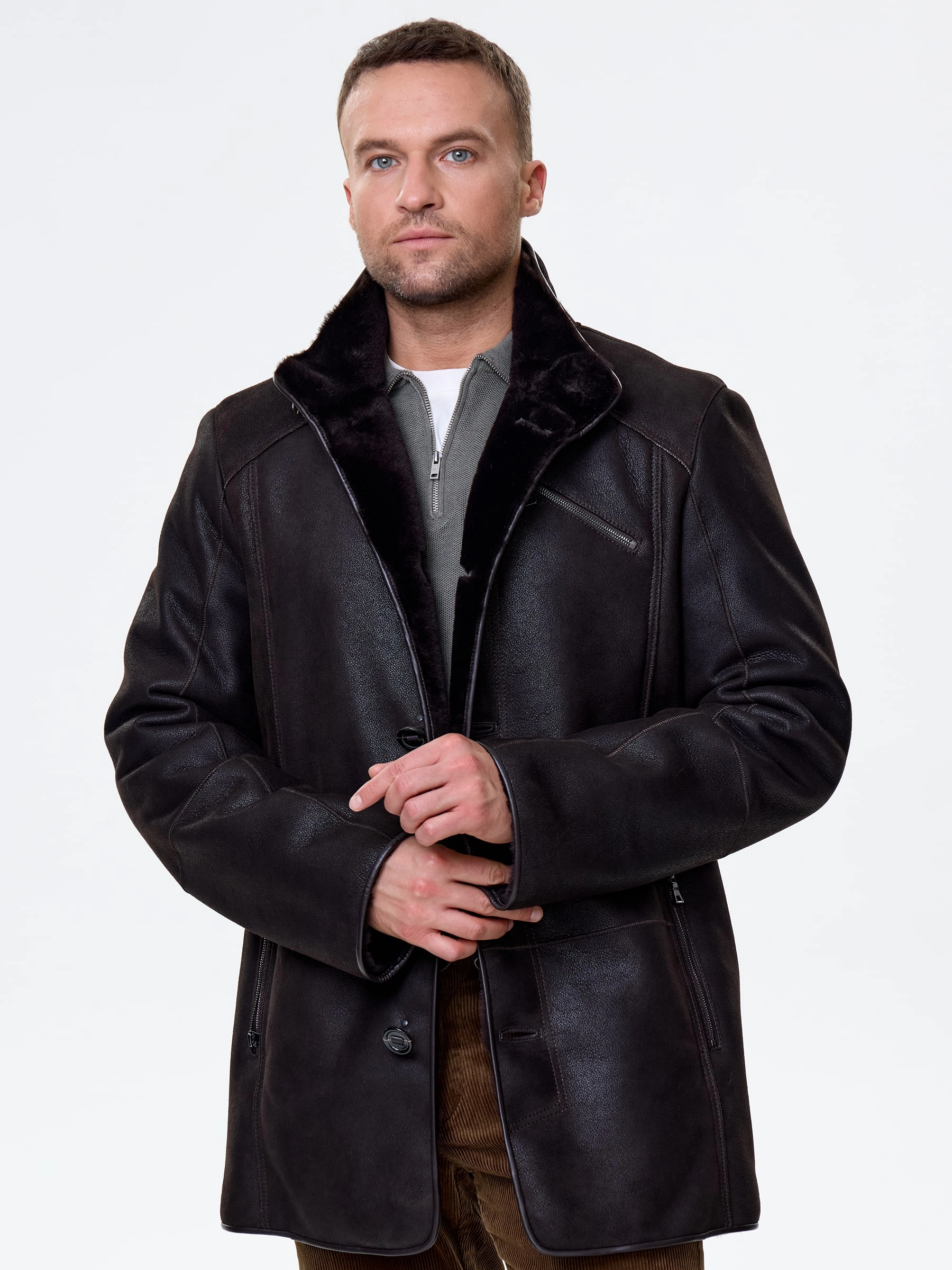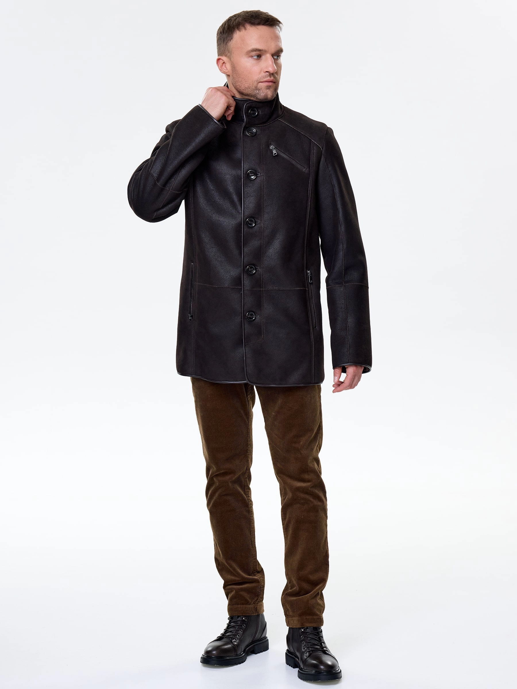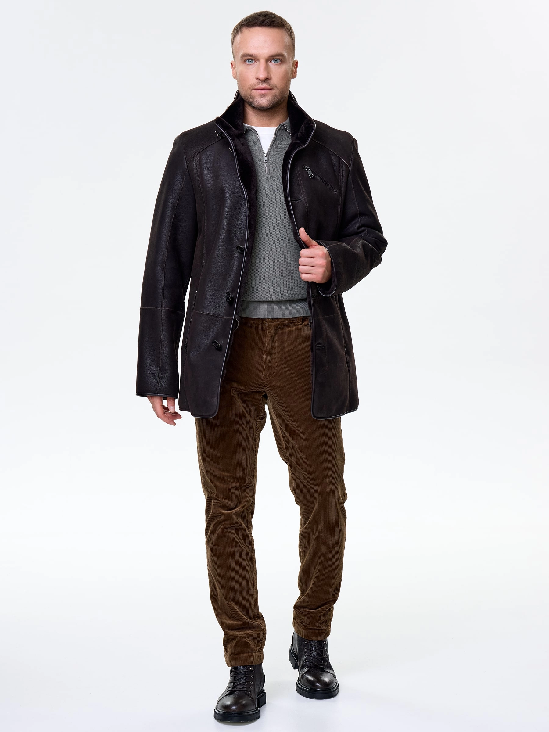 Товар мужская молодежная дубленка премиум класса 401, коричневая, размер 50, артикул 71570 выполнен из овчина "мерино" с застежкой пуговицы. Рассчитан на сезон: осень-зима.силуэт прямой.