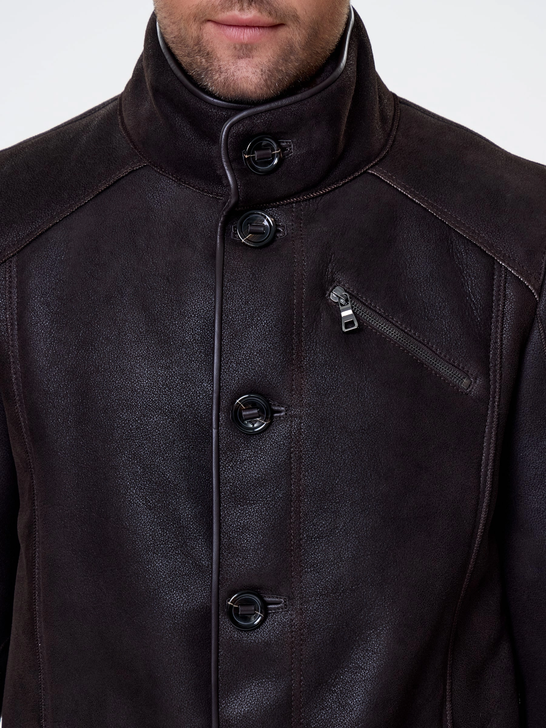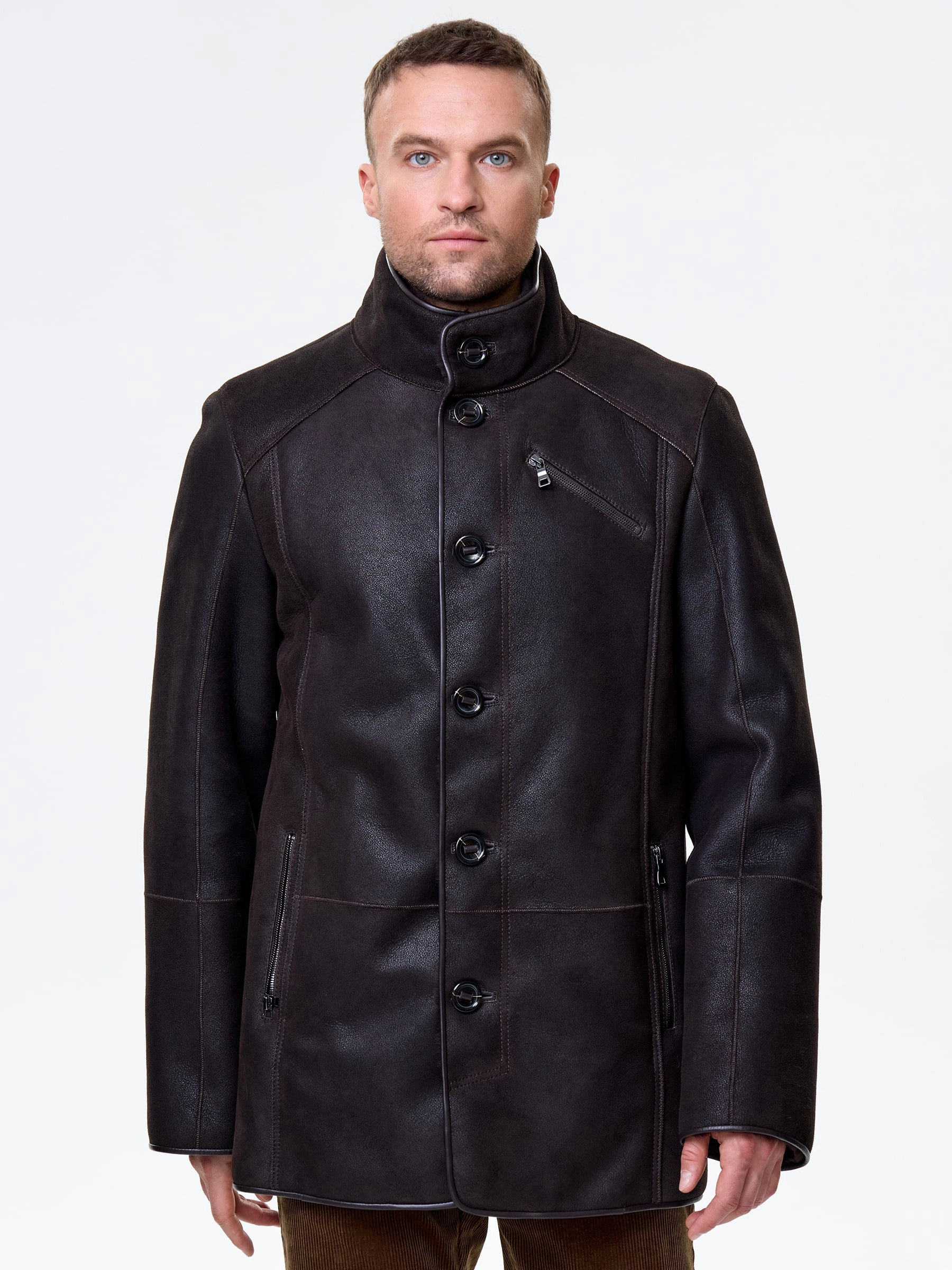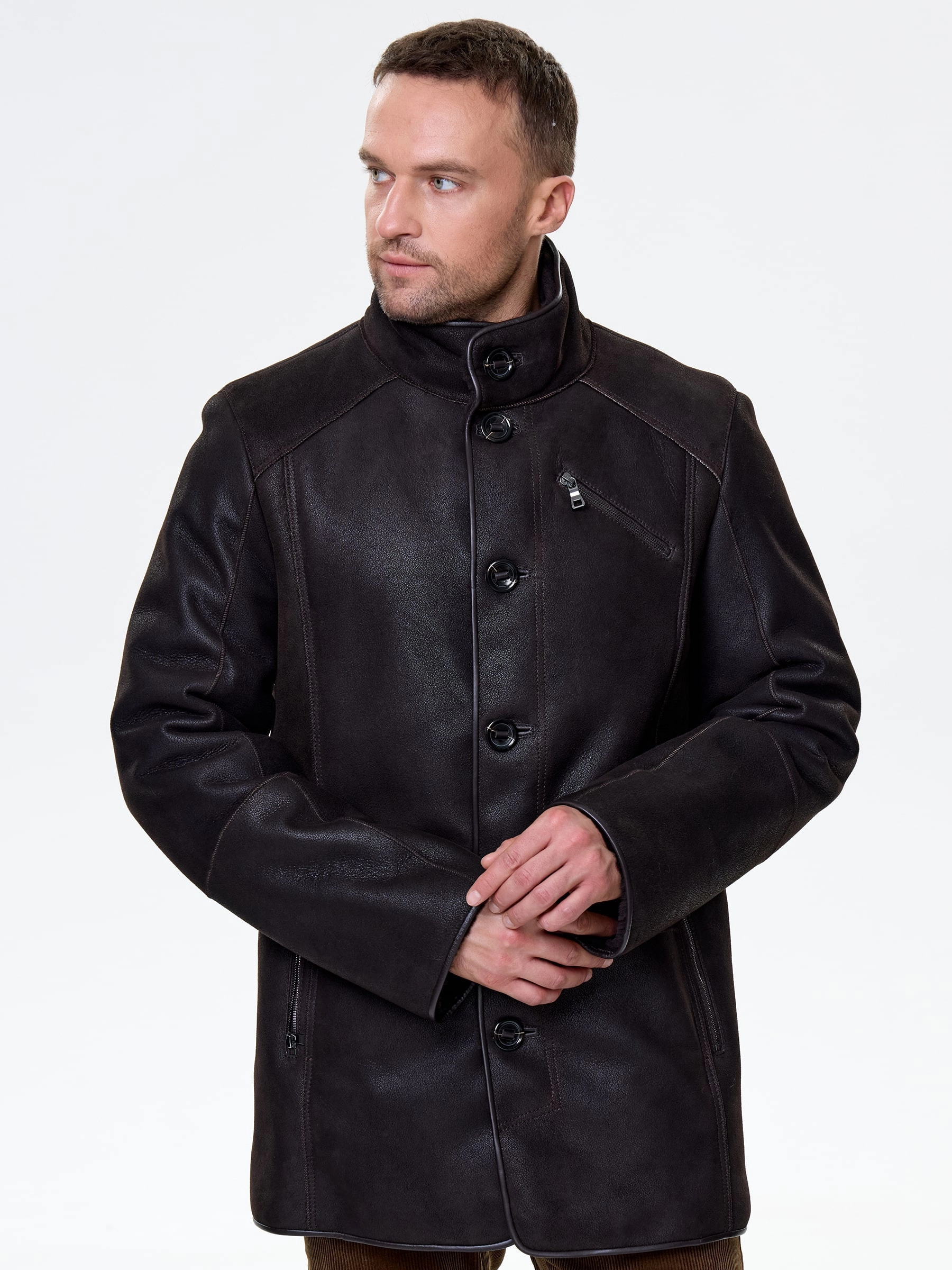 Товар мужская молодежная дубленка премиум класса 401, коричневая, размер 50, артикул 71570 выполнен из овчина "мерино" с застежкой пуговицы. Рассчитан на сезон: осень-зима.силуэт прямой.