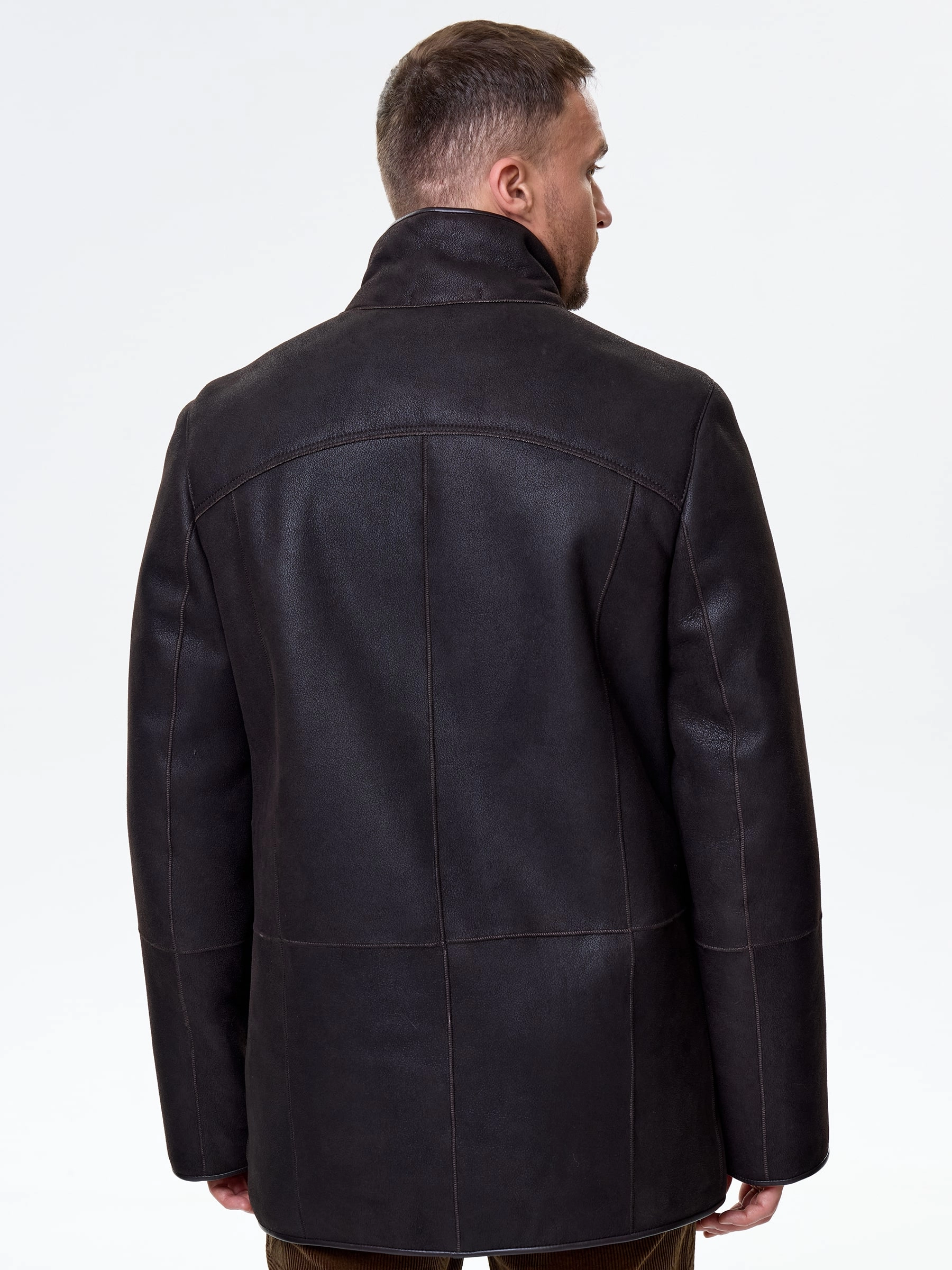 Мужская молодежная дубленка премиум класса 401, коричневая, размер 50, артикул 71570