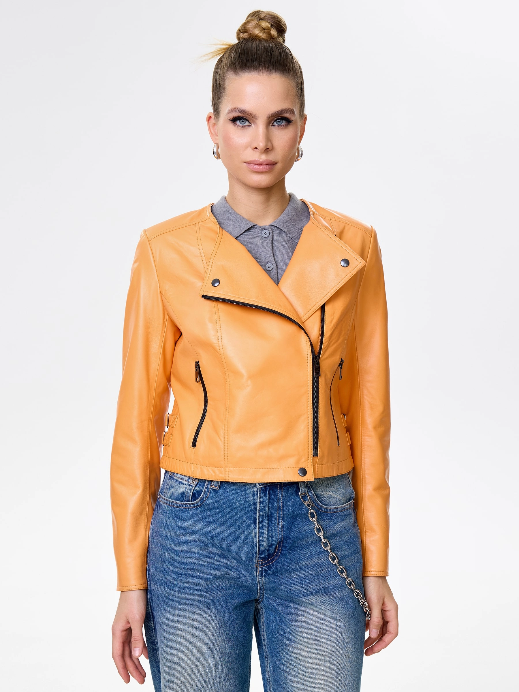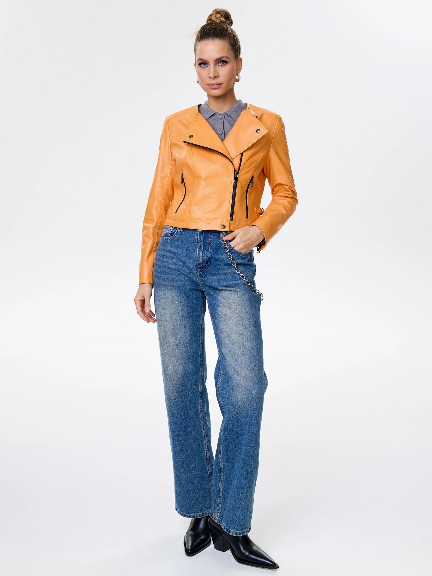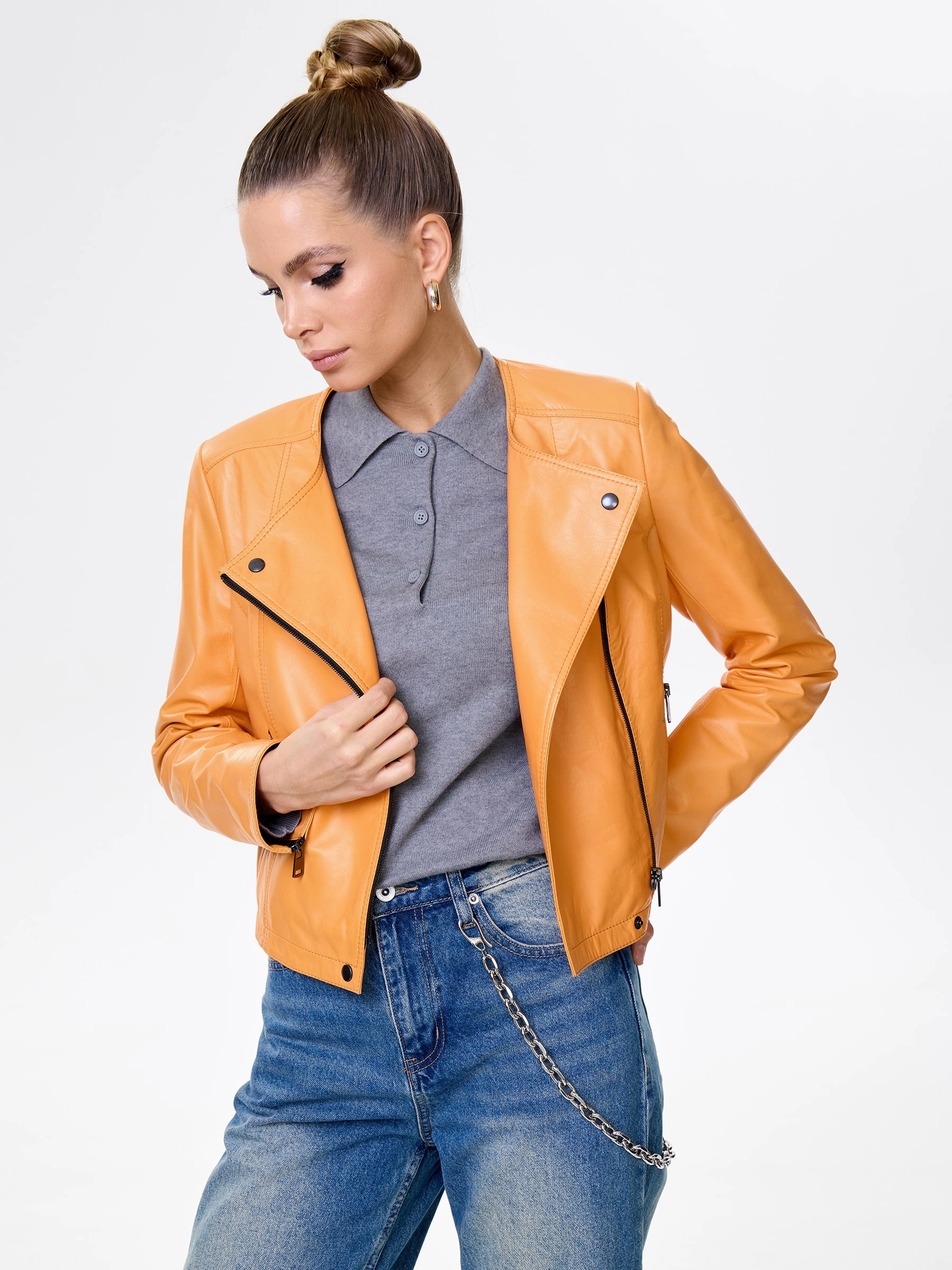 Оранжевая кожаная косуха для женщин 389, размер 46, артикул 90441