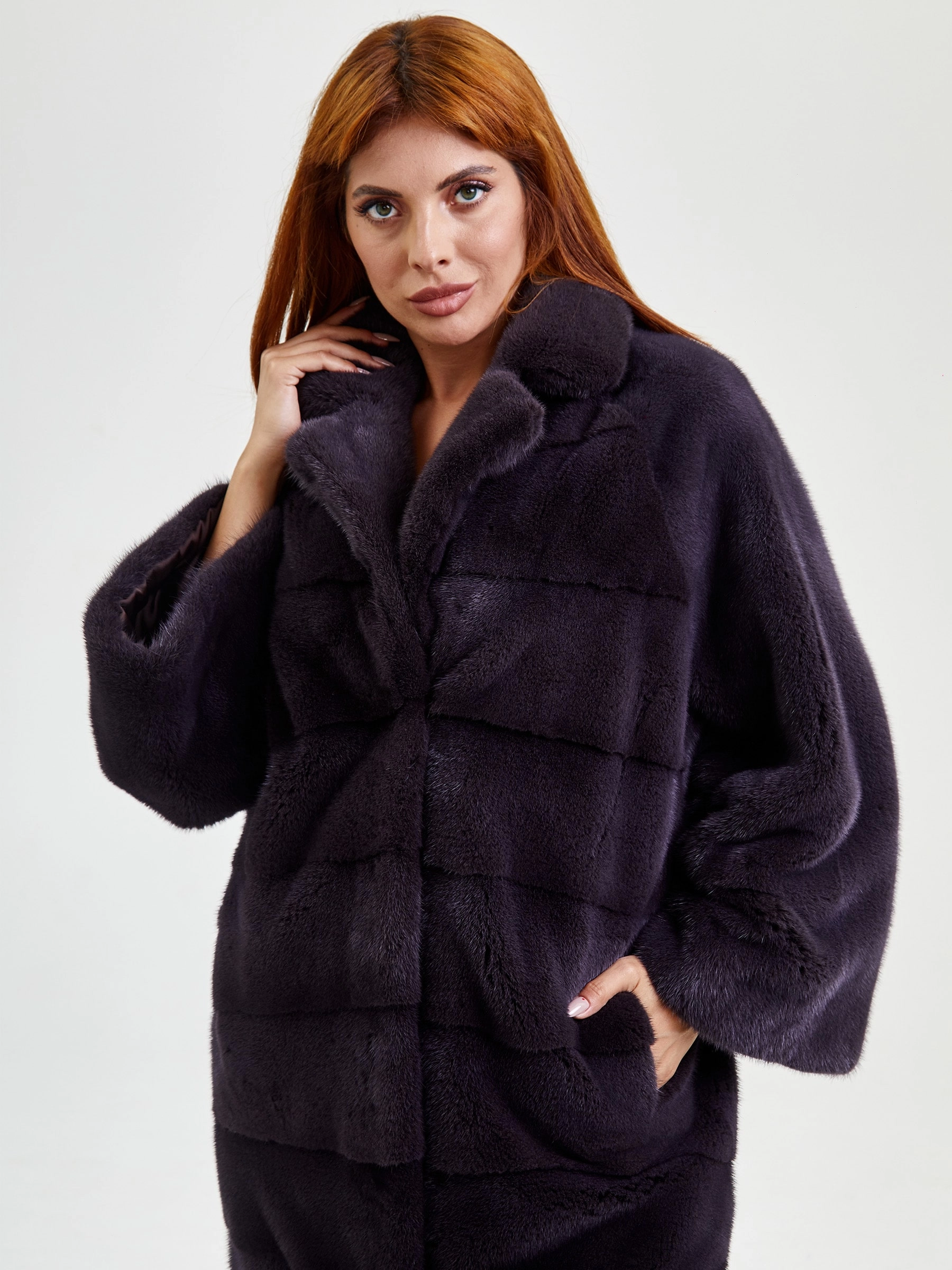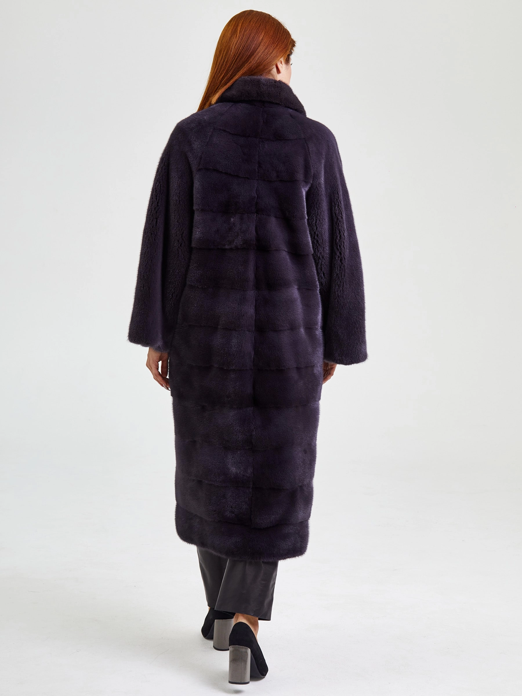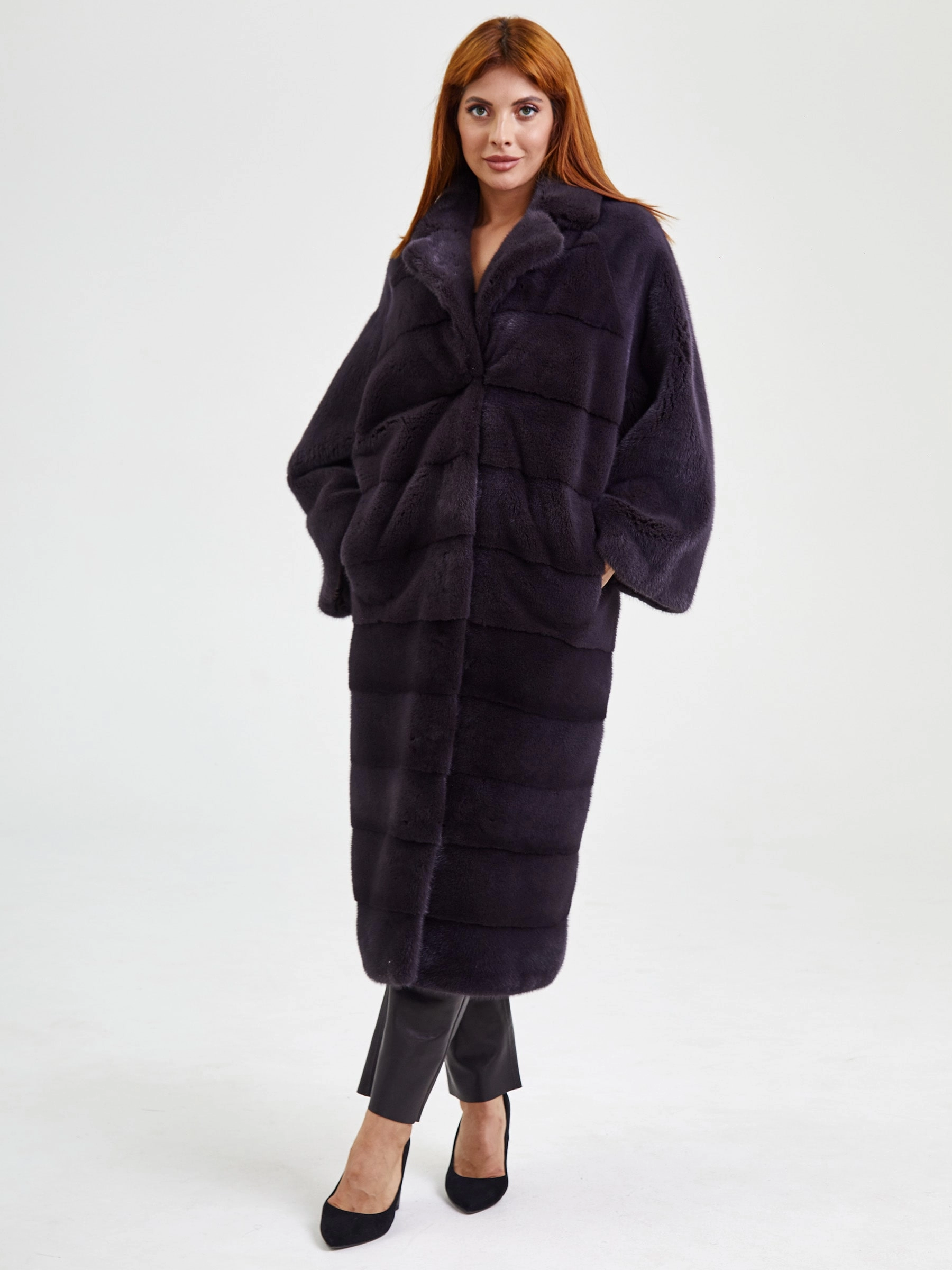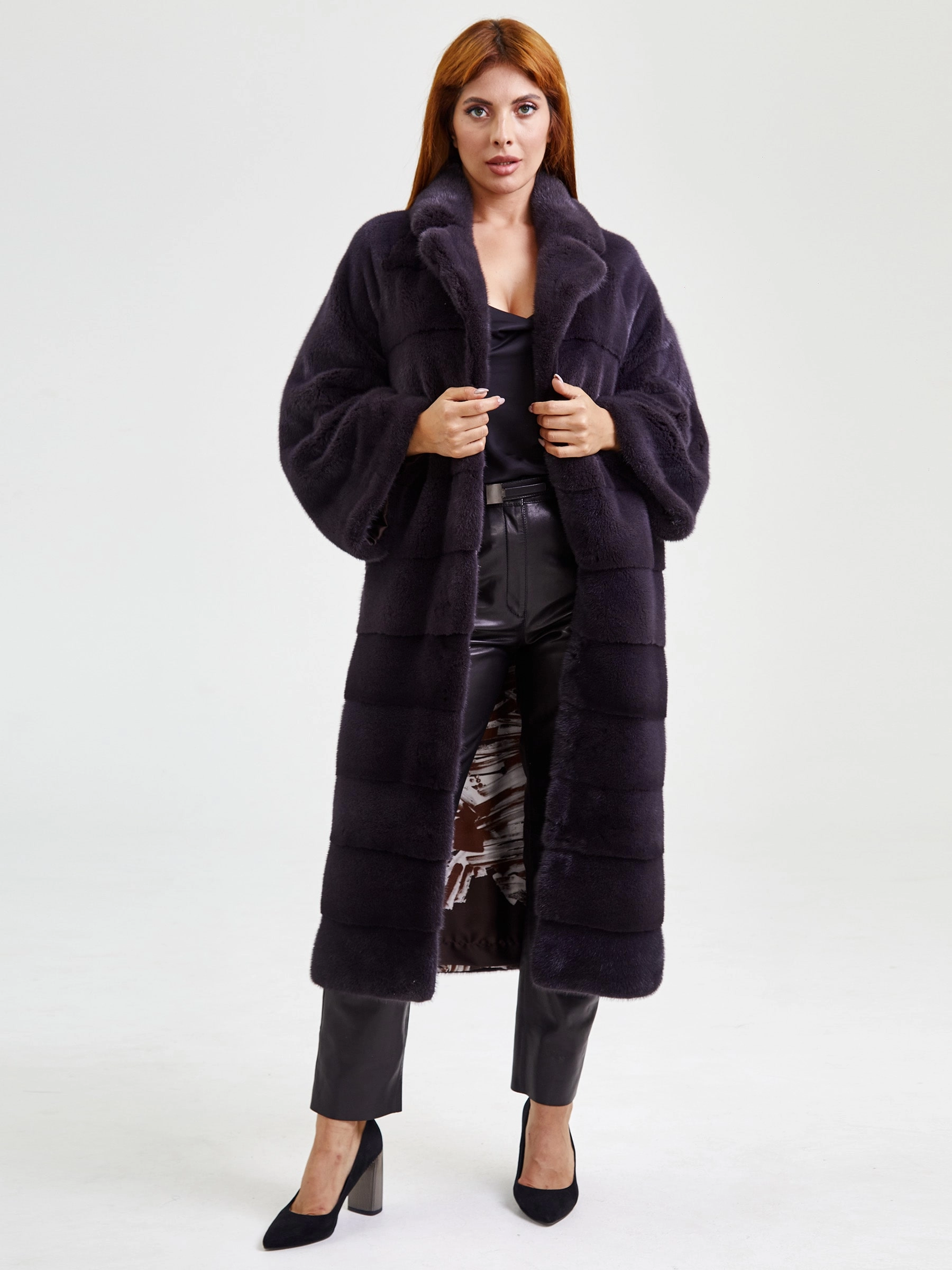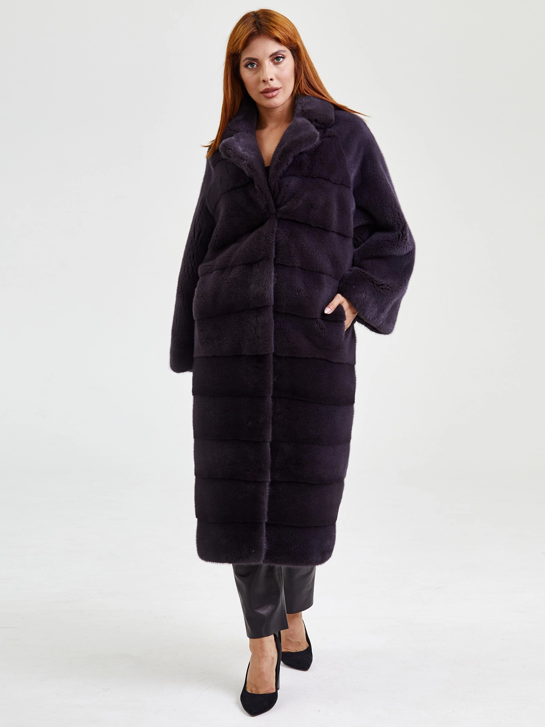 Пальто из меха норки женское 18А182(ав), длинное, баклажановое, размер 44, артикул 33080