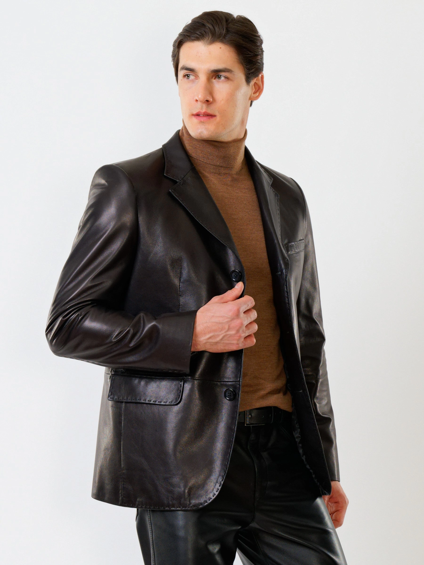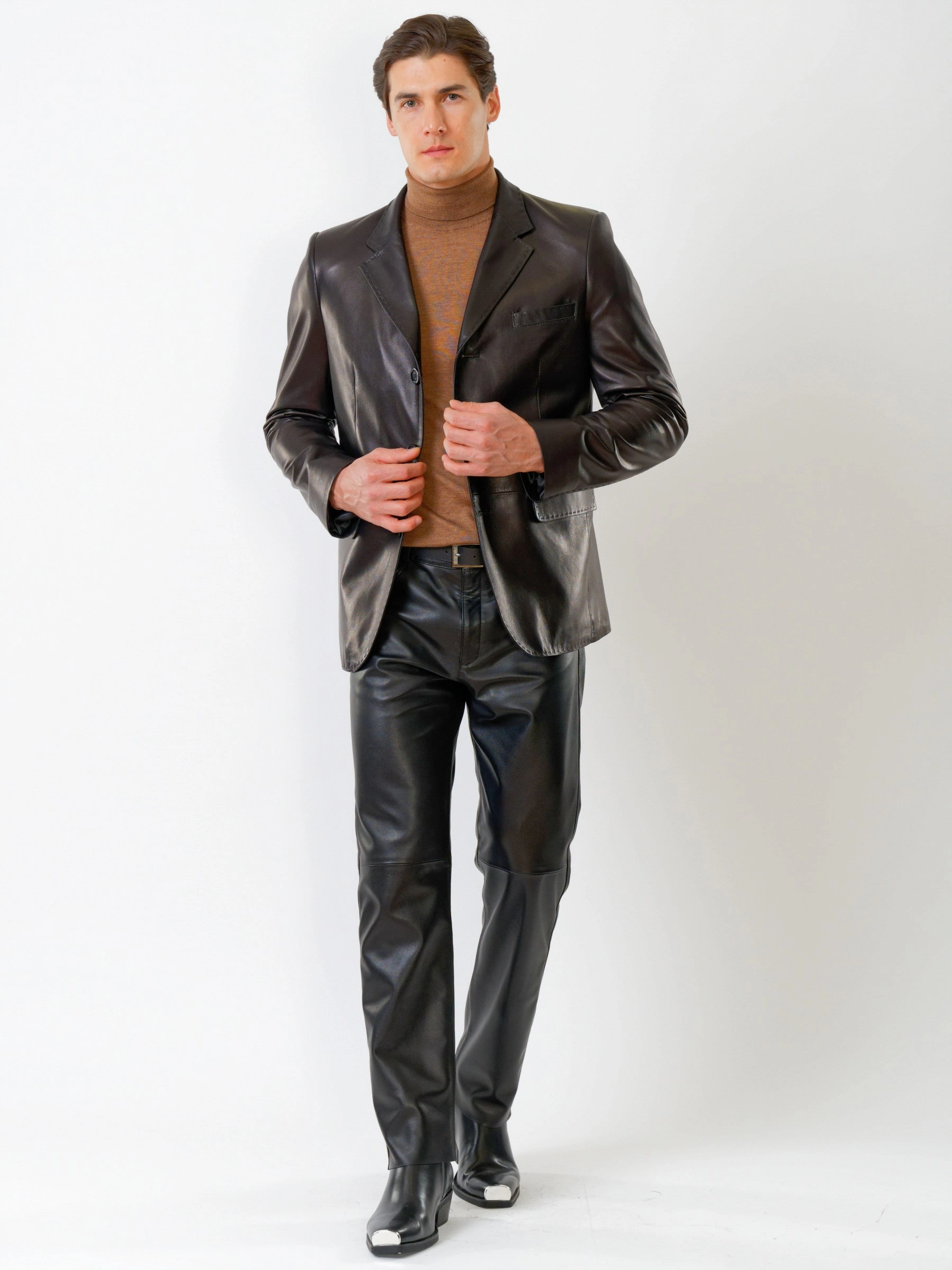 Товар кожаный костюм мужской: пиджак 543 + брюки 01, черный, р. 48, артикул 140161 выполнен из натуральной кожи. Рассчитан на сезон: весна-лето.