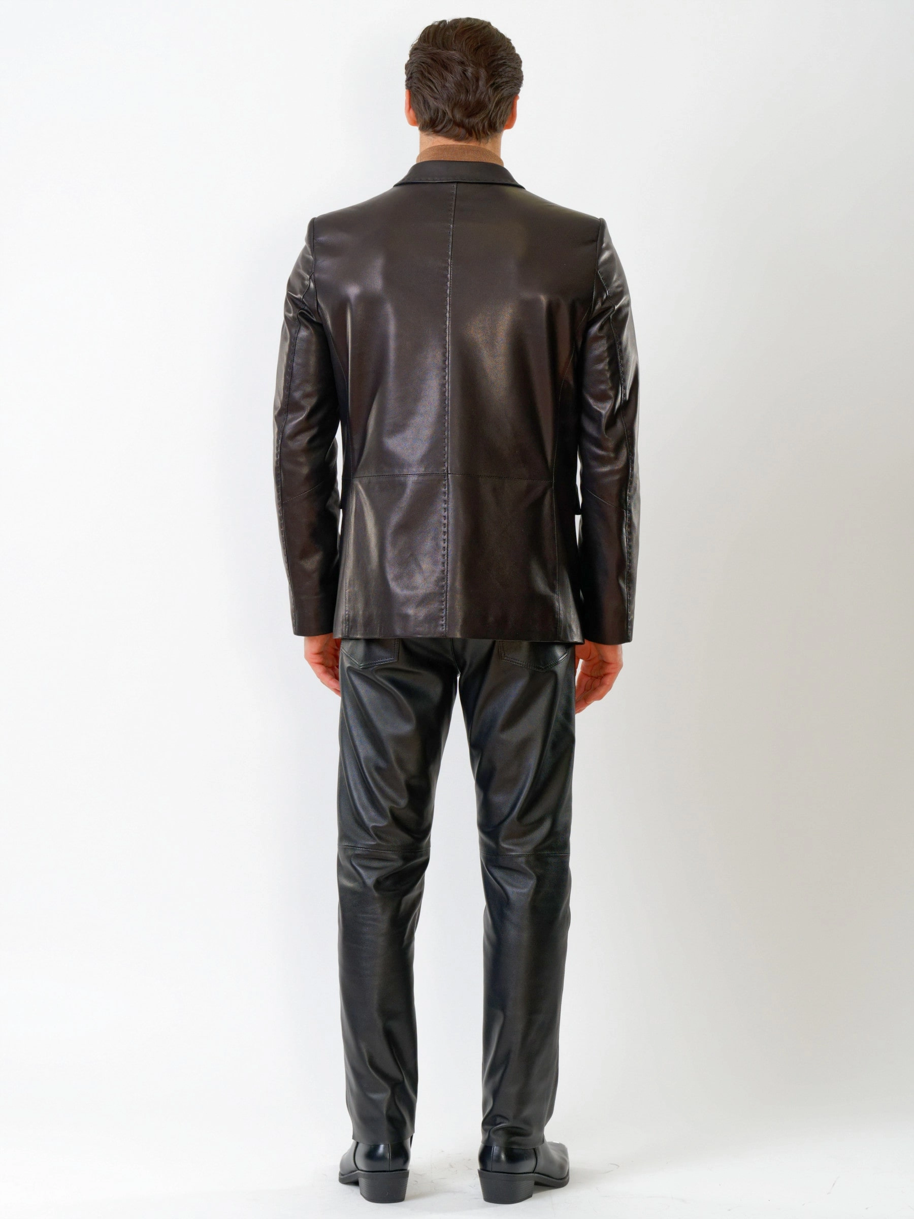 Кожаный пиджак безупречного кроя, украшенный ручным стежком и кожаные брюки. Кожа премиального качества. Безупречная работа портных. Комфортная посадка по фигуре.