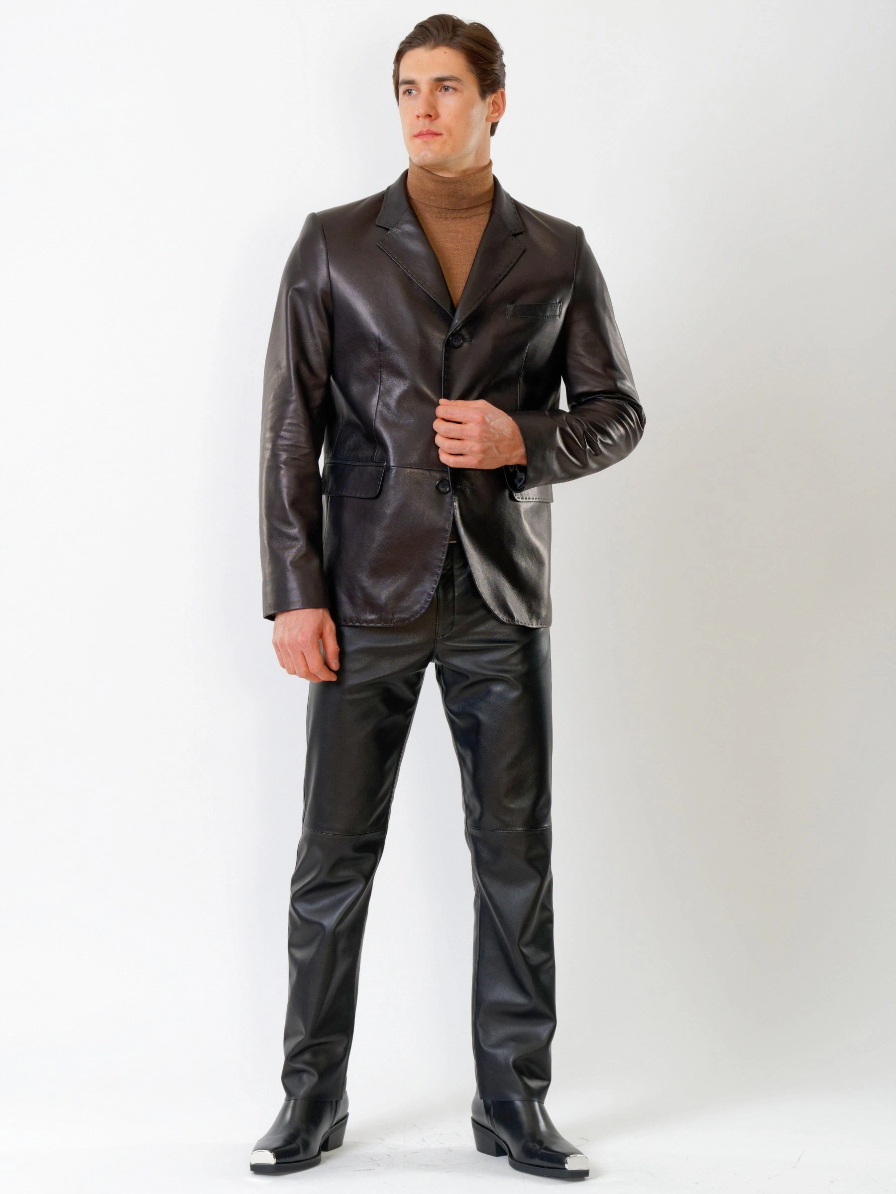 Кожаный костюм мужской: Пиджак 543 + Брюки 01, черный, р. 48, артикул 140161