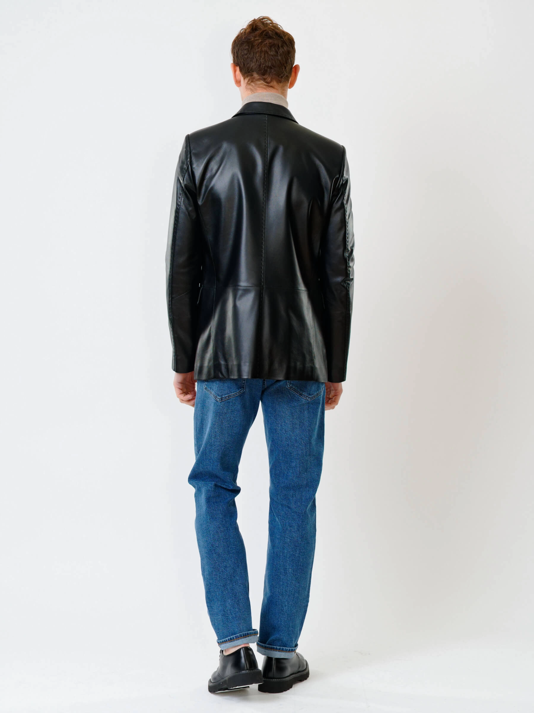 Мужской кожаный пиджак на ручном стежке премиум класса 543, черный, размер 48, артикул 28451