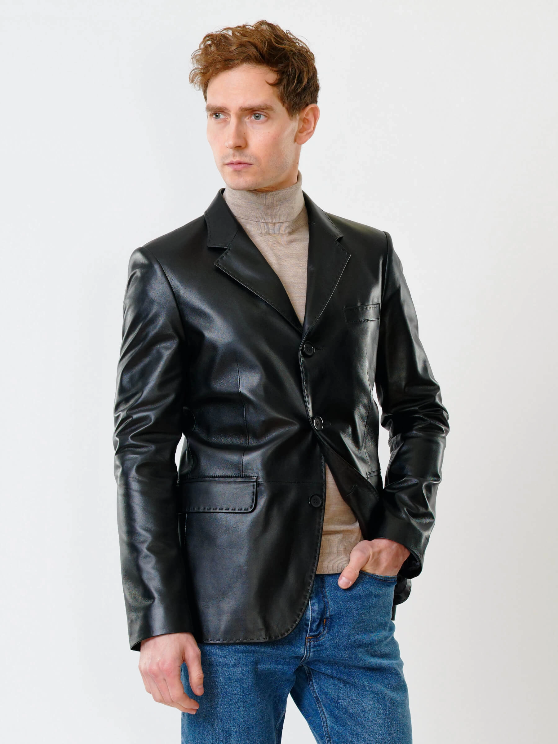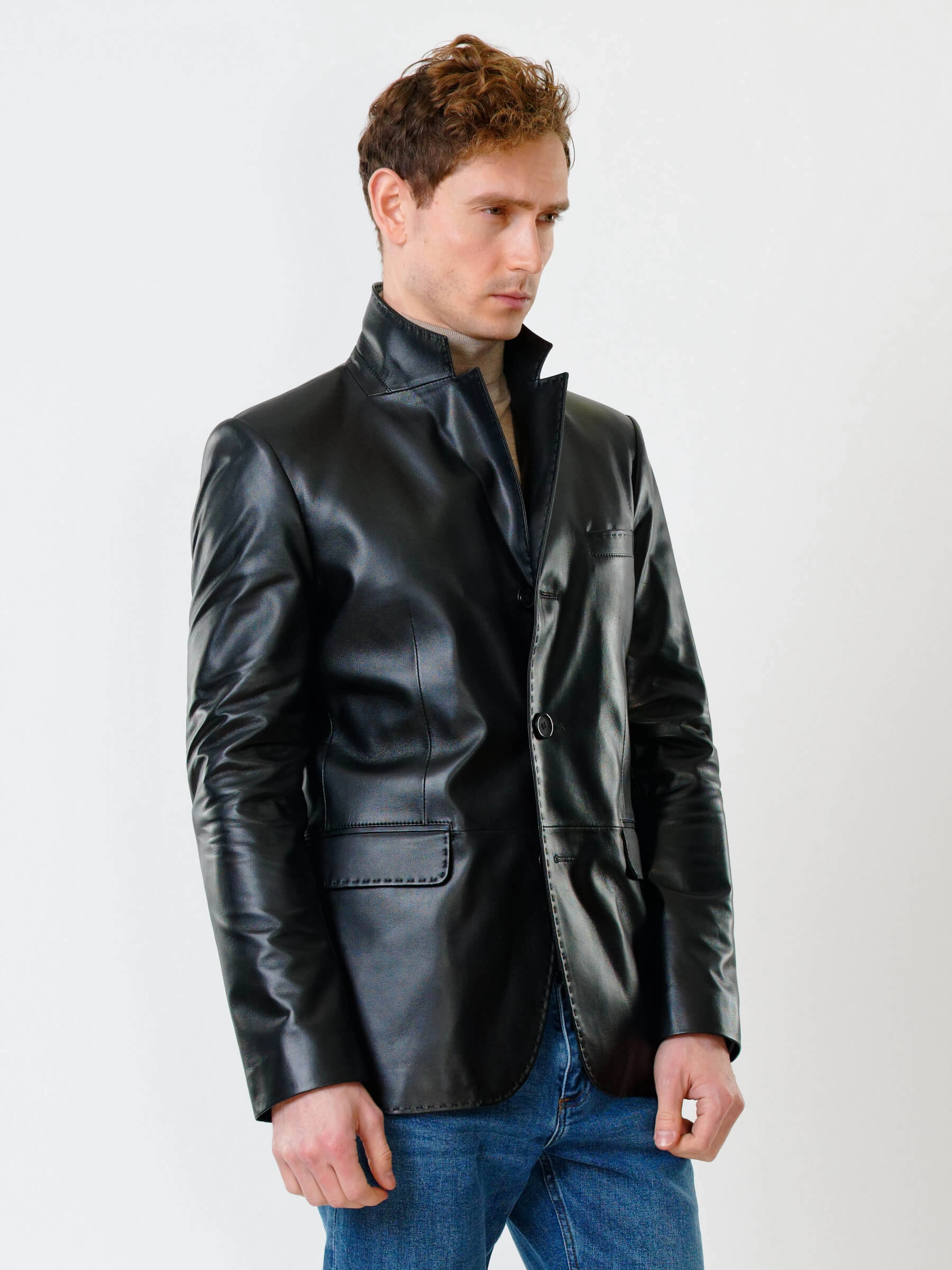 Товар мужской кожаный пиджак на ручном стежке премиум класса 543, черный, размер 48, артикул 28451 выполнен из натуральной кожи с застежкой пуговицы. Рассчитан на сезон: весна-лето. Длина изделия 78 см, силуэт полуприлегающий.