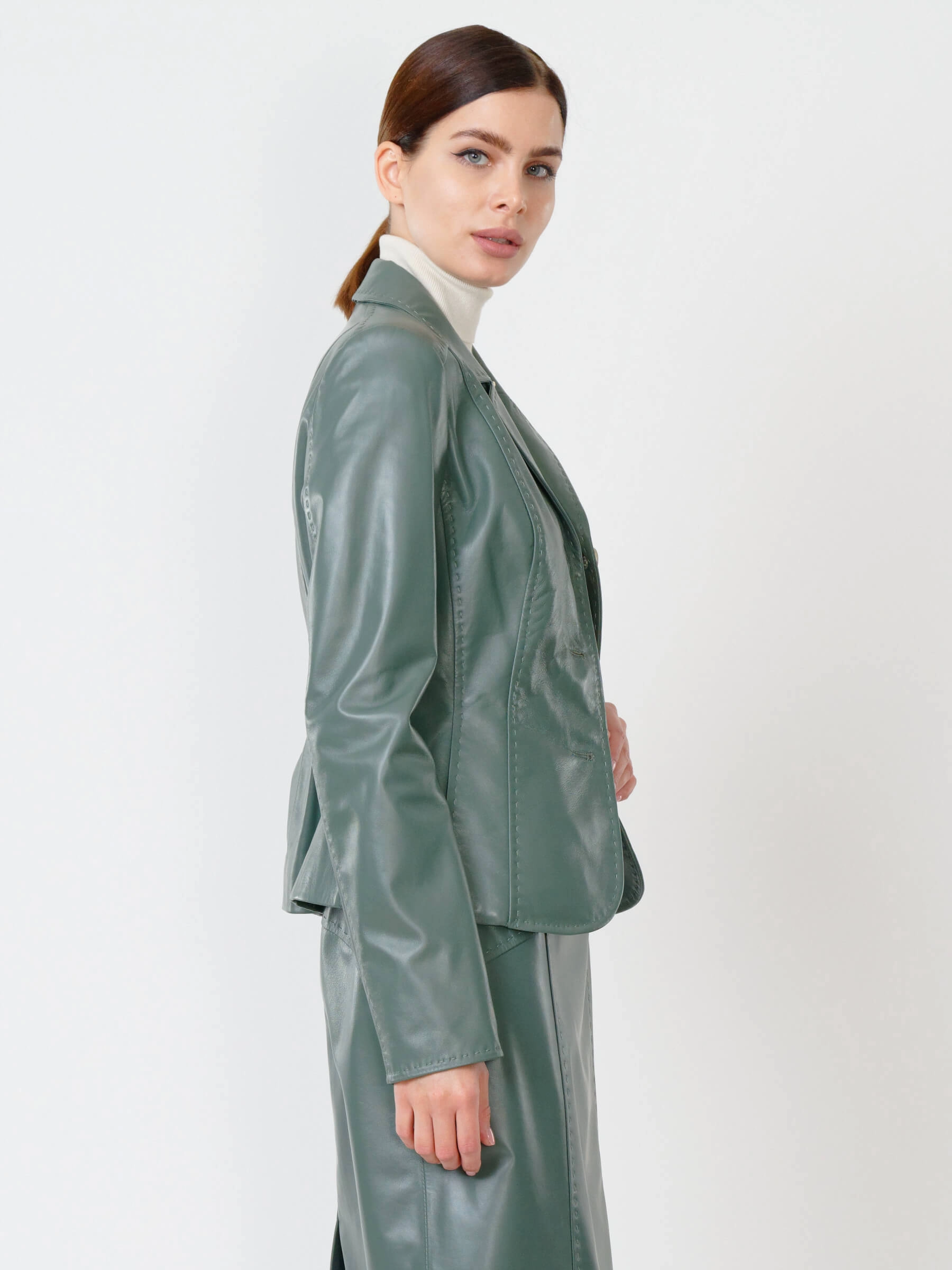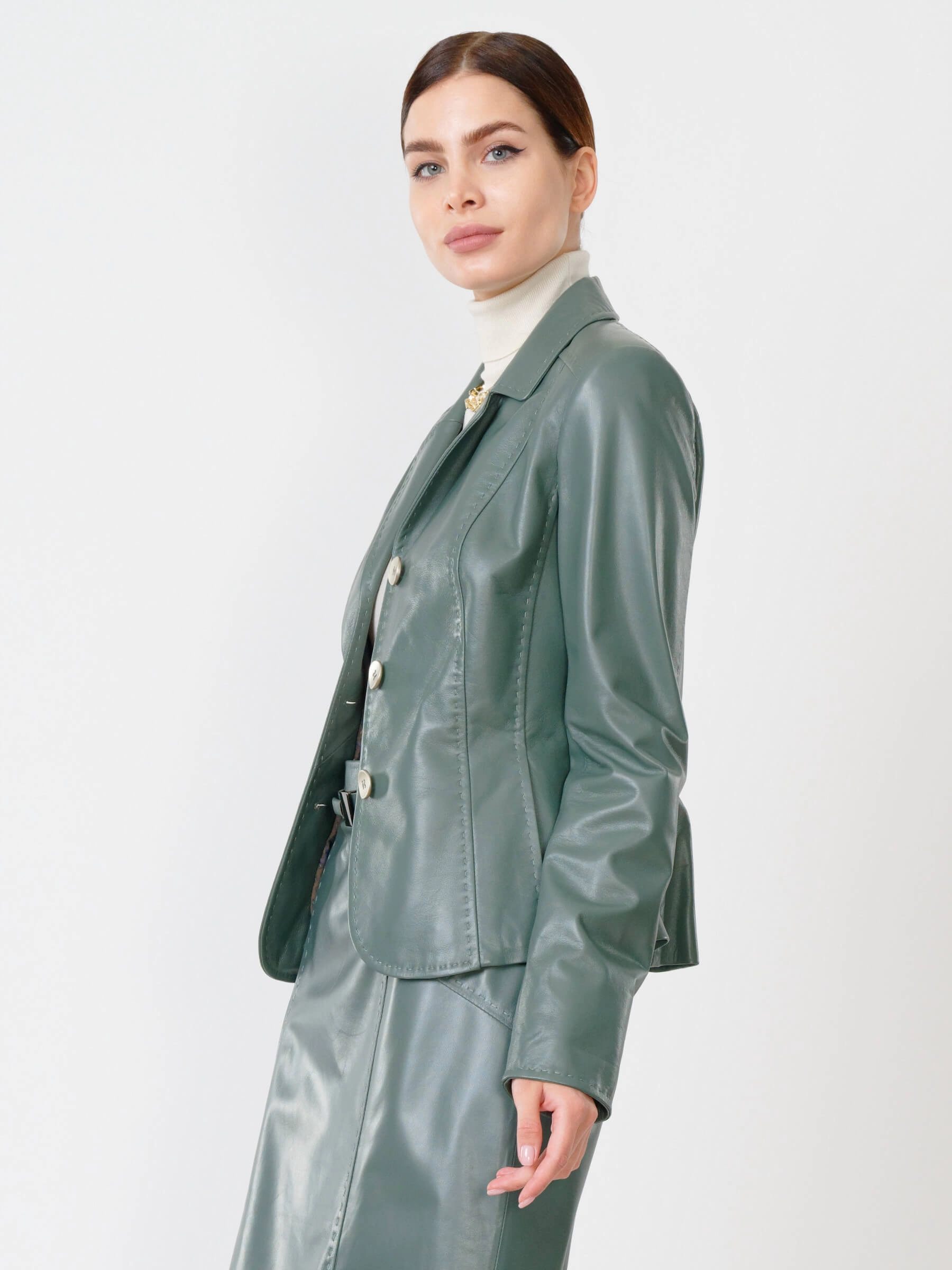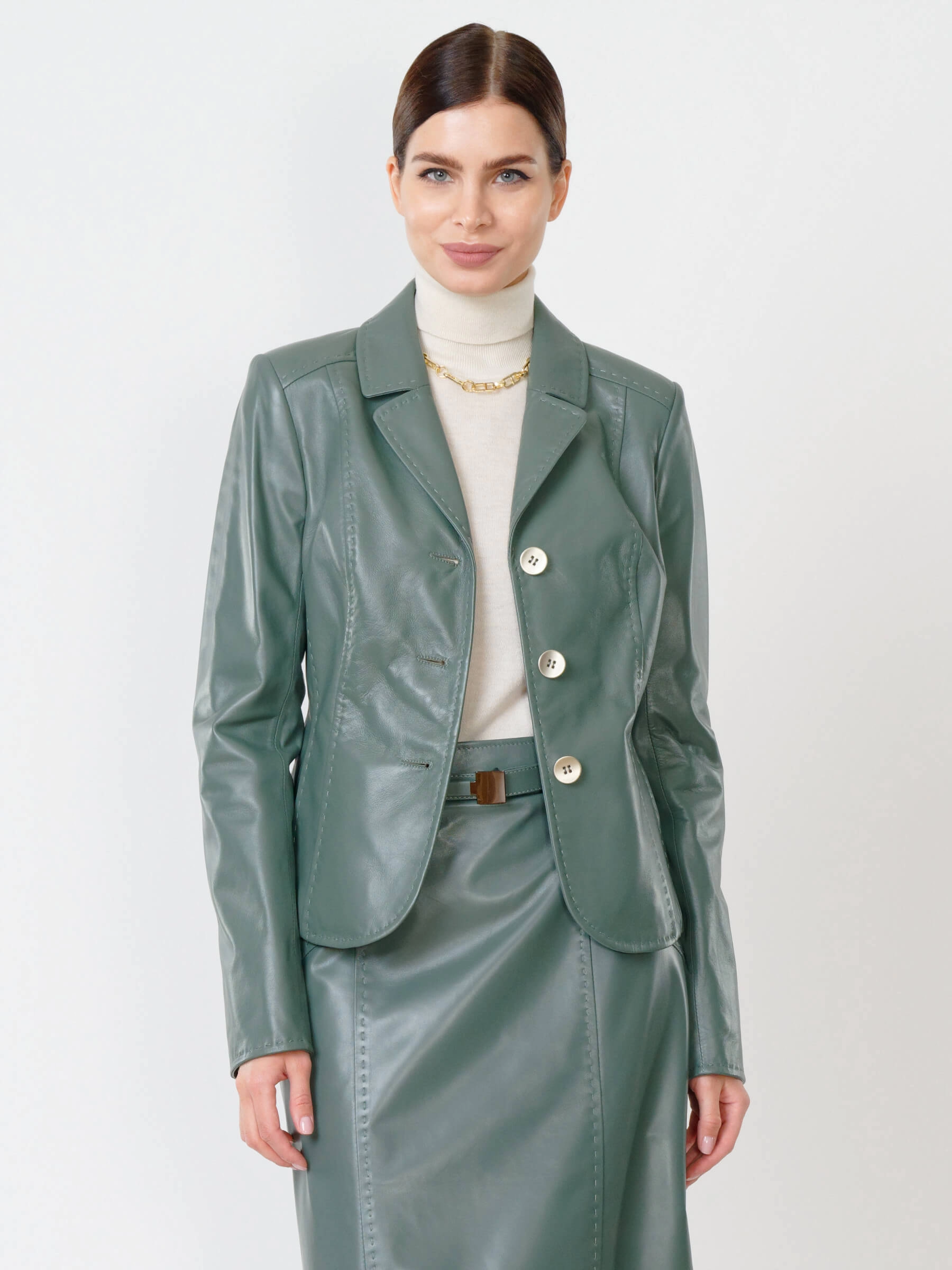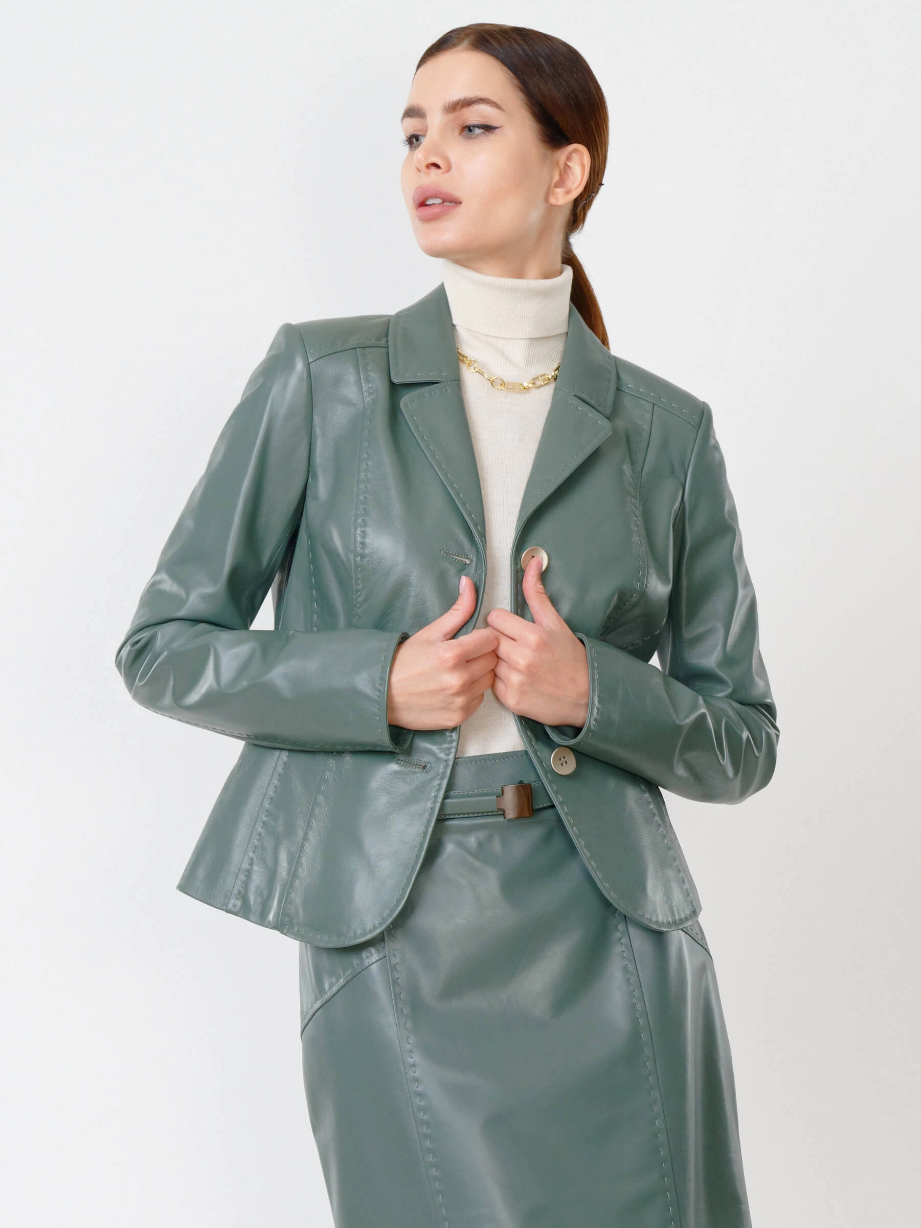 Кожаный женский пиджак 316рс, оливковый, размер 44, артикул 91042