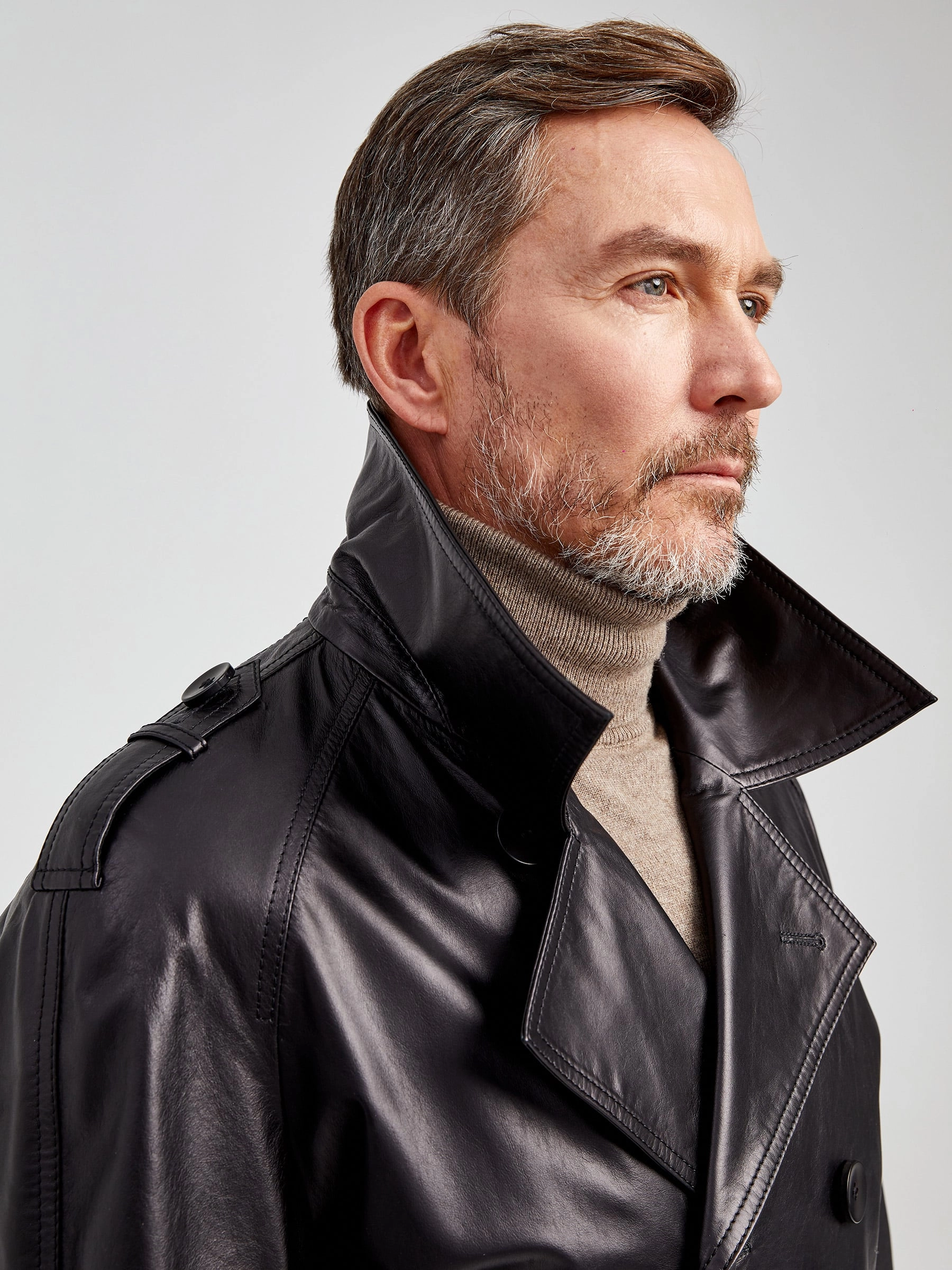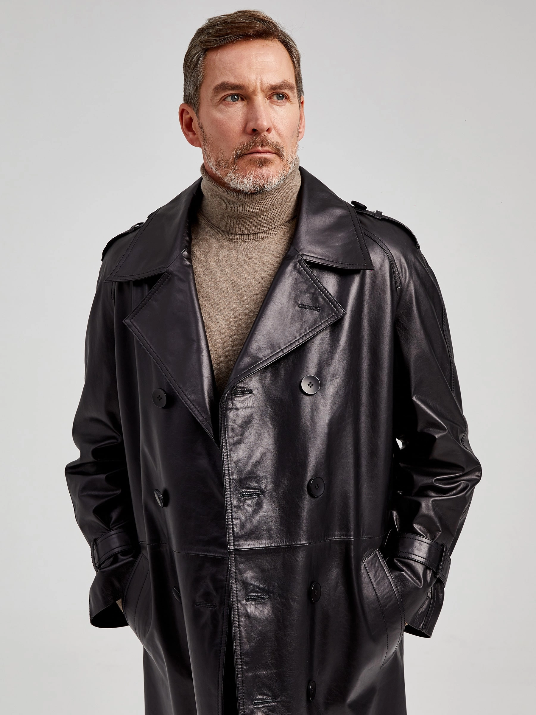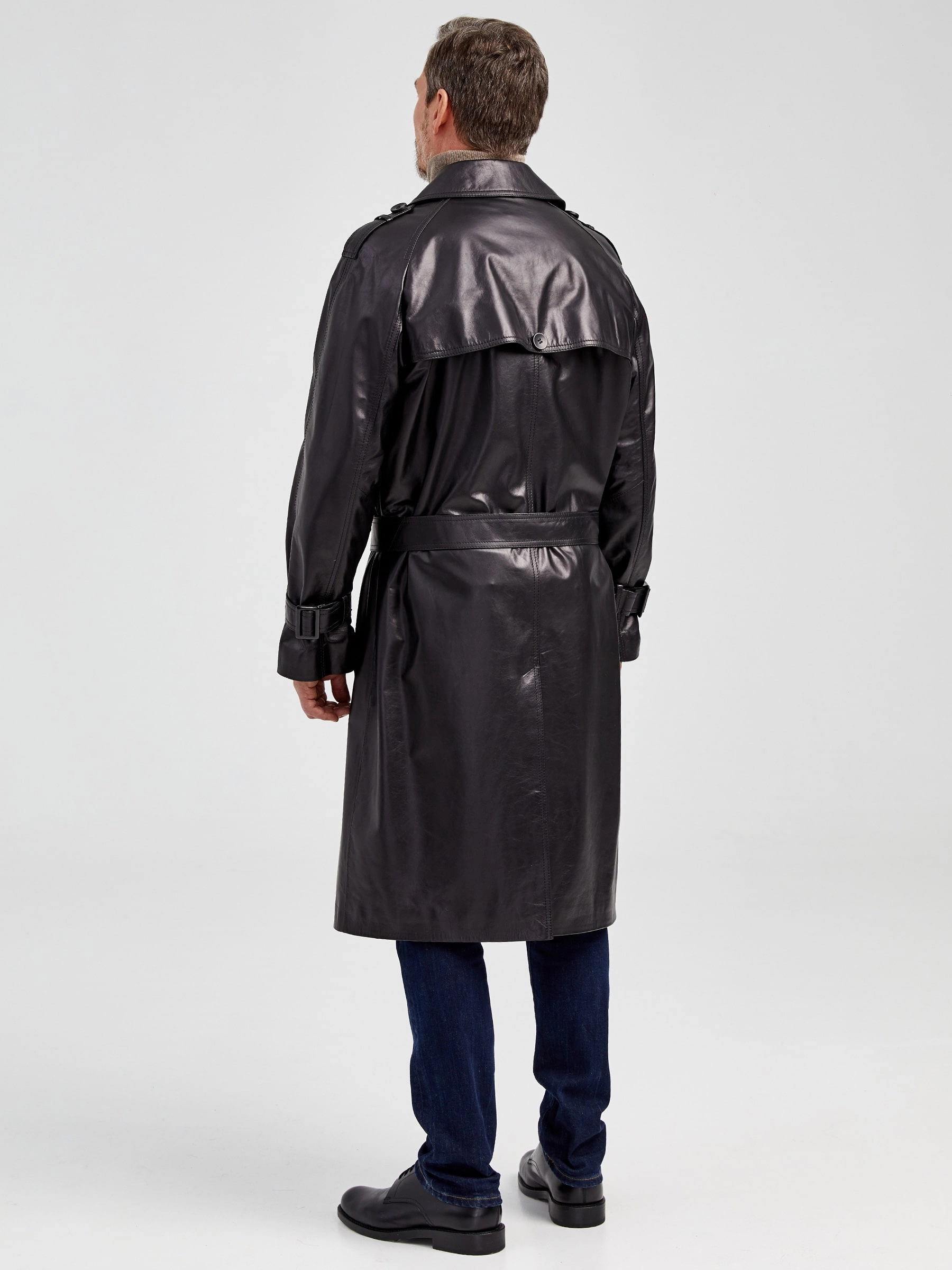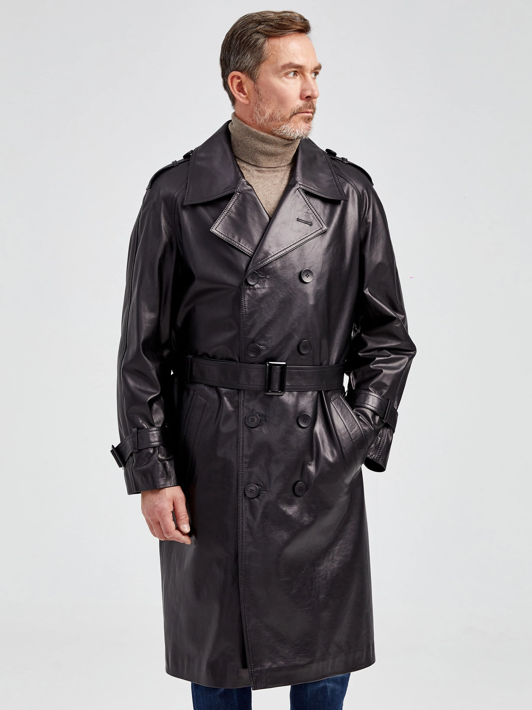 Двубортный кожаный плащ для уверенных в себе мужчин. Рукав - реглан, обеспечивают комфорт в движении. Сочетается по стилю как со свободной одеждой, так и со строгим деловым костюмом. Рекомендуется мужчинам, для которых важен дресс - код.