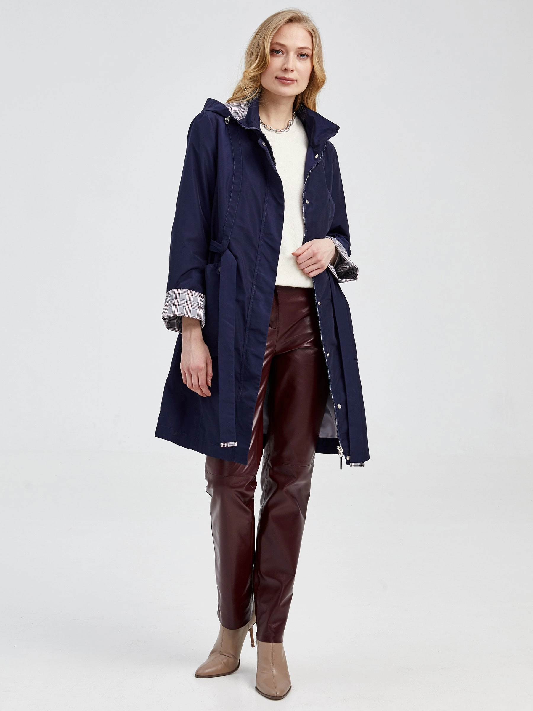 Этот текстильный плащ станет вашим актуальным и выигрышным приобретением этой весной! Модель приталенного силуэта длиной 90 см с аккуратной стойкой и удобным съёмным капюшоном. Длинный пояс эффектно подчеркнёт линию талии. Застежка на молнию с ветрозащитным клапаном на кнопках обеспечивает комфорт, а практичные накладные карманы по бокам дополняют образ. Этот универсальный повседневный плащ идеально сочетается с джинсами, платьями или юбками, добавляя образу динамичный акцент. Отличный выбор для городских прогулок!
