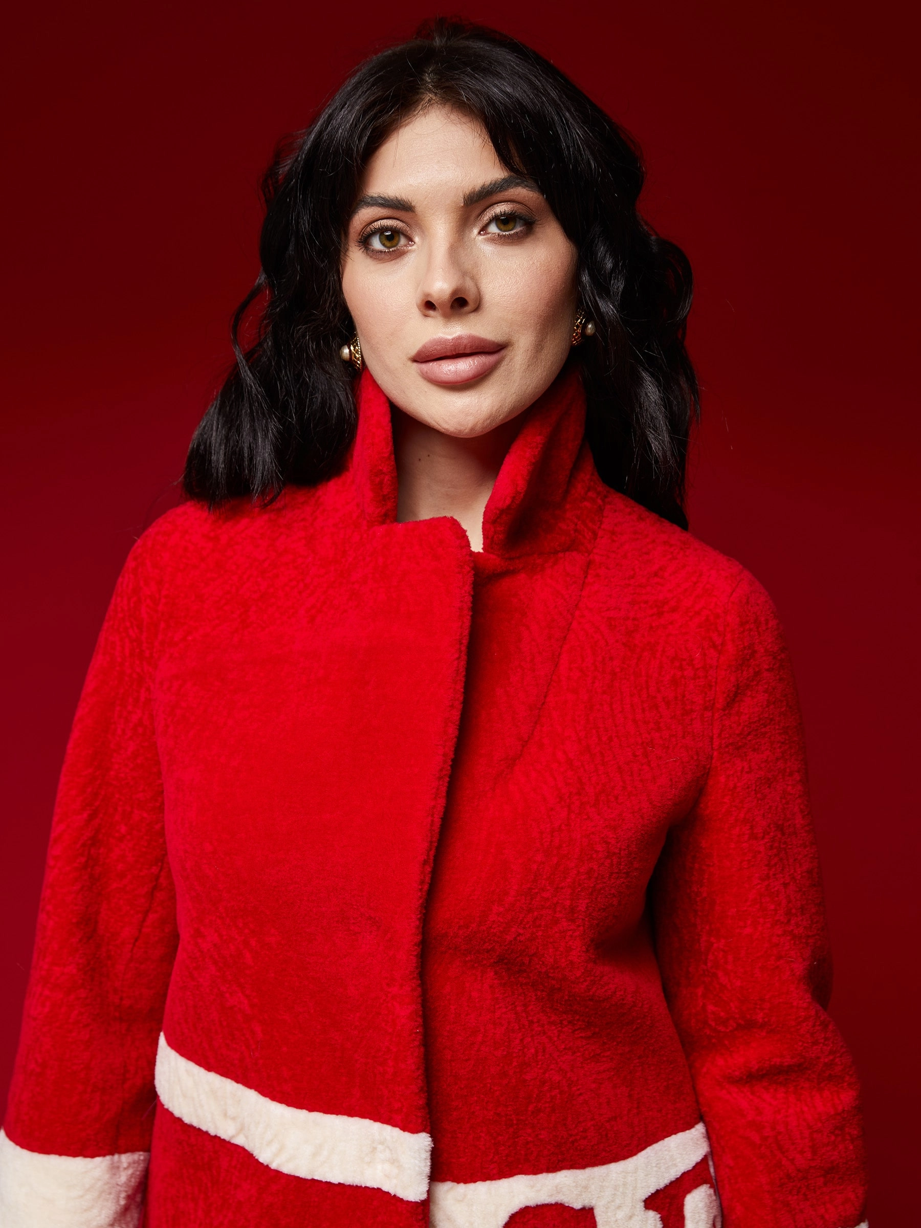 Стильное полупальто из шерсти длиной свыше 90 см в комбинации красного и белого цветов. Прямой силуэт с английским воротником и застёжкой на кнопках создаёт универсальный образ, который остаётся в тренде этой весной. Сочетайте его с кожаными брюками и грубыми ботинками для дерзкого образа или с джинсами-скинни и кроссовками для повседневного стиля — это пальто подарит комфорт и завершит ваш образ.