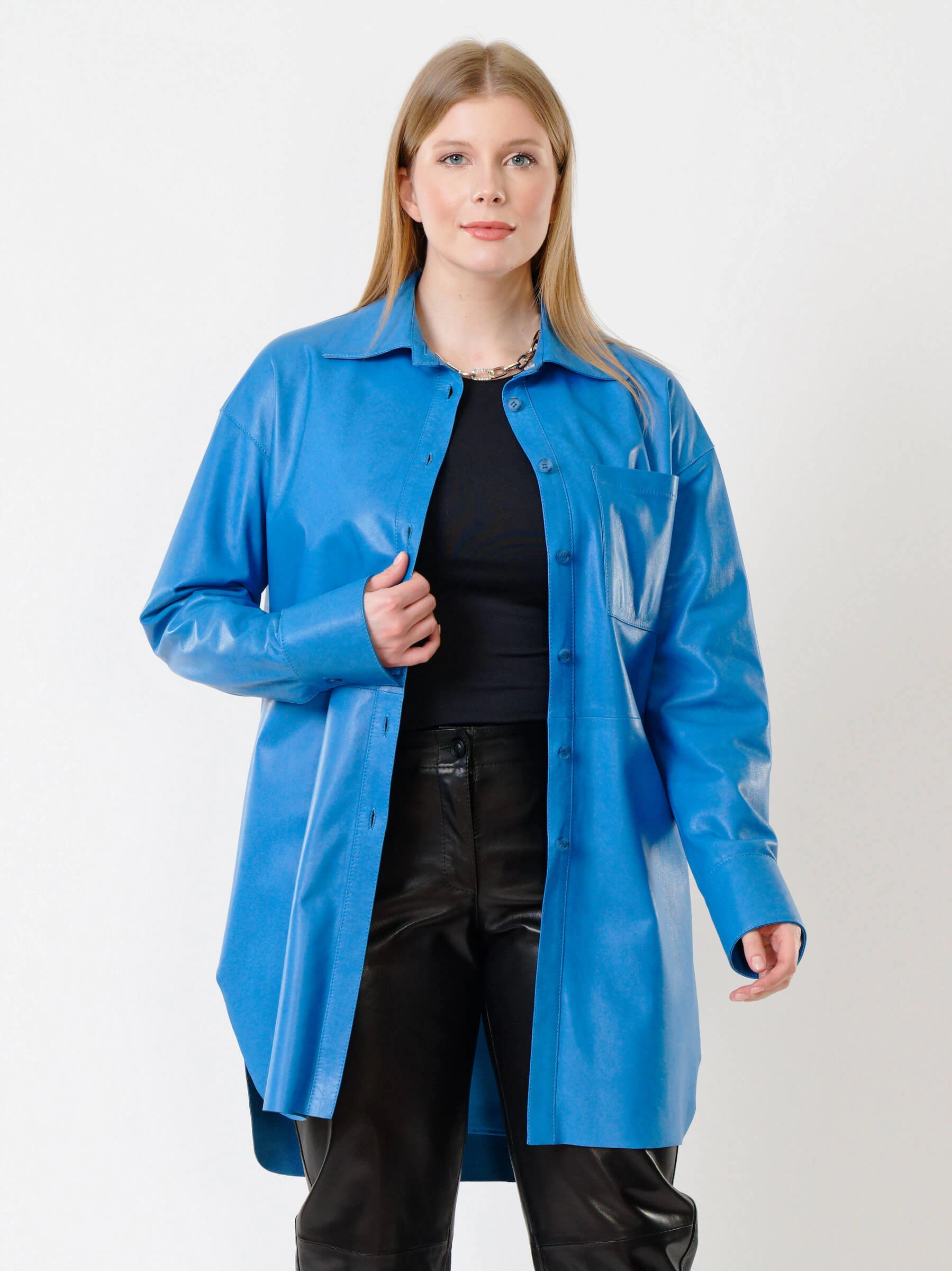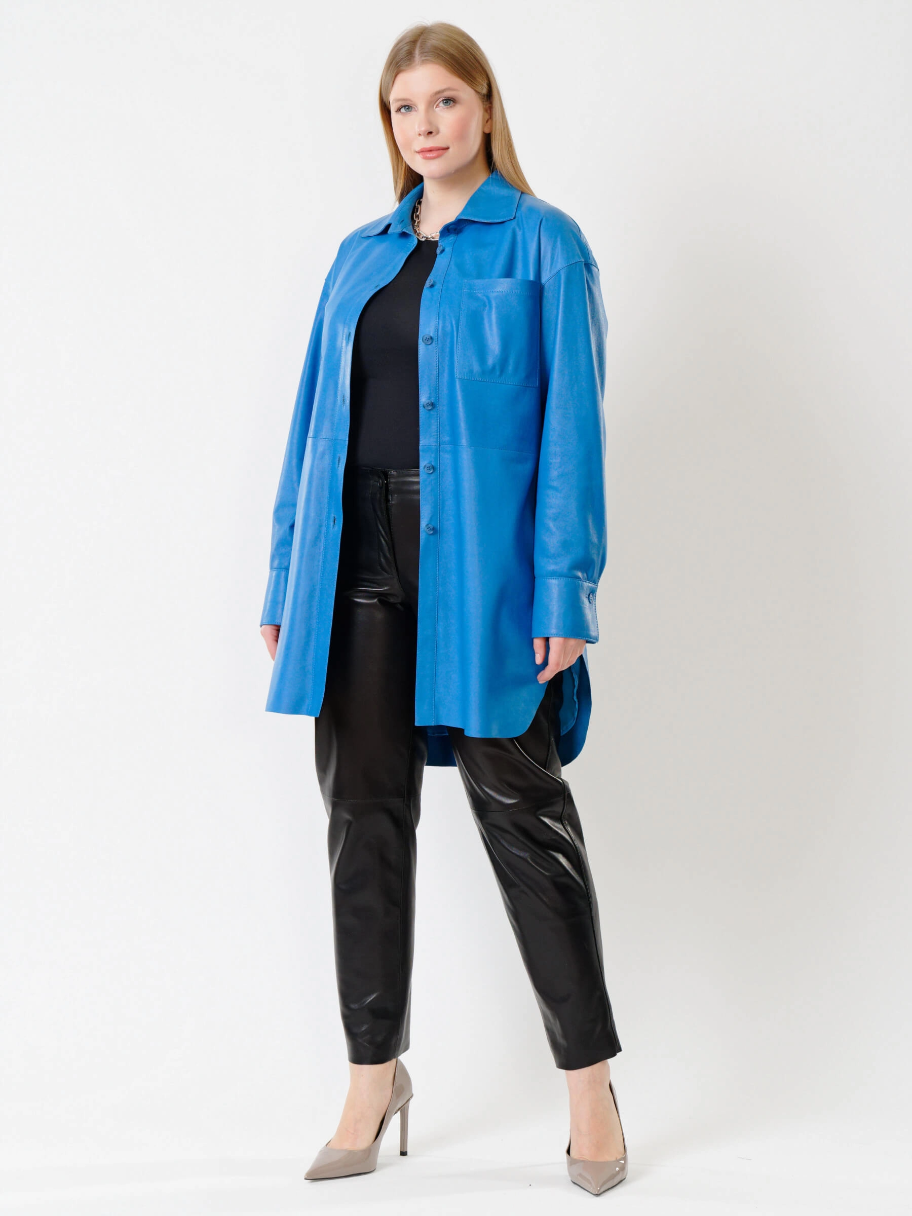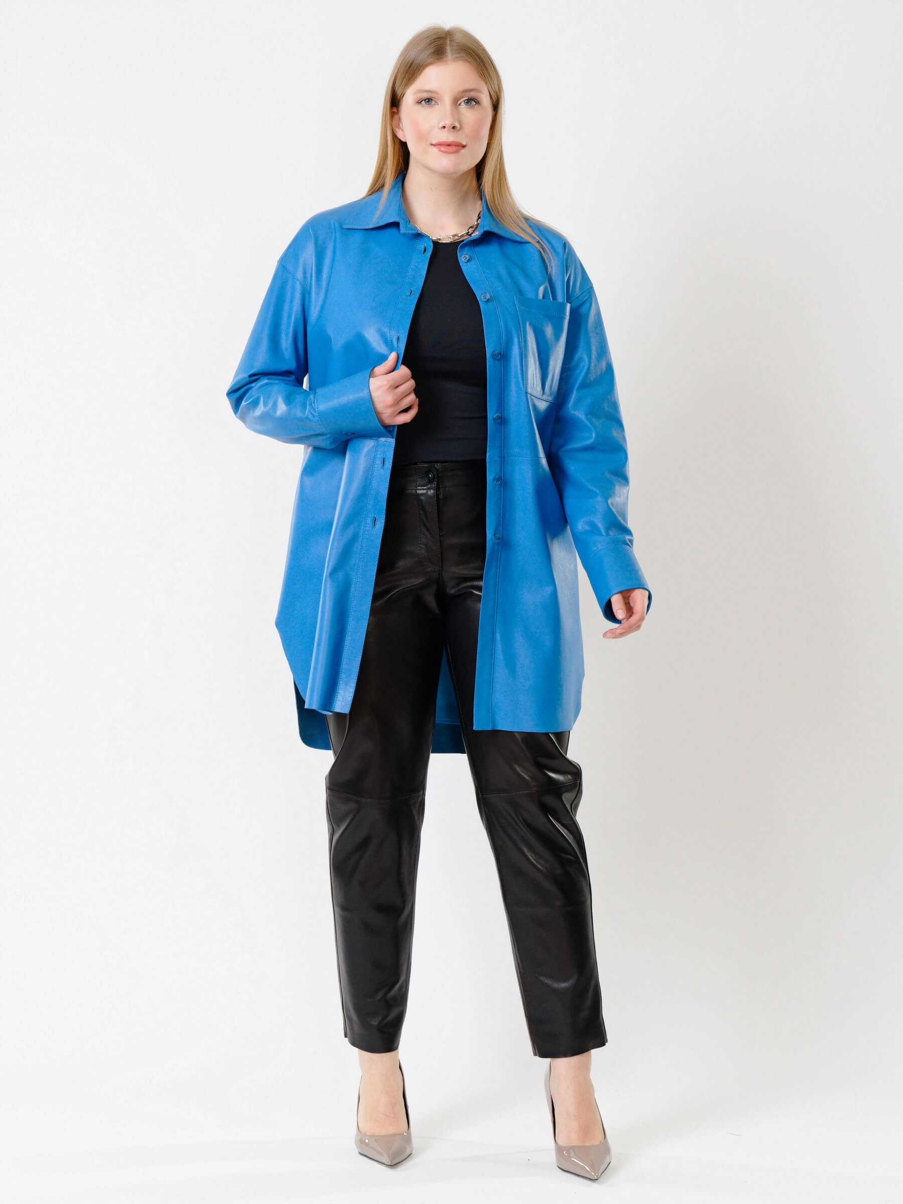 Кожаная женская рубашка с поясом из натуральной кожи 01_2, голубая, размер 48, артикул 91412