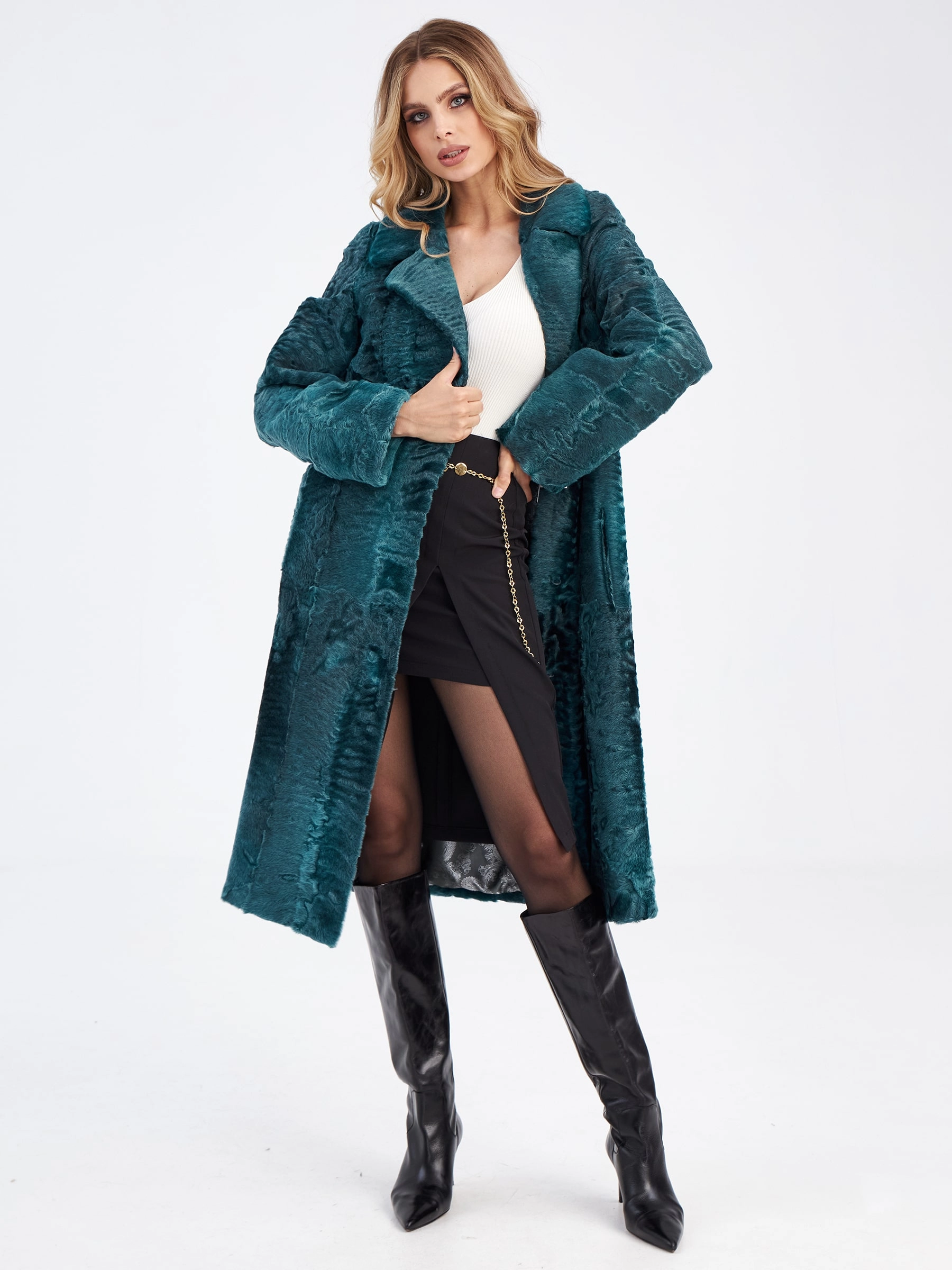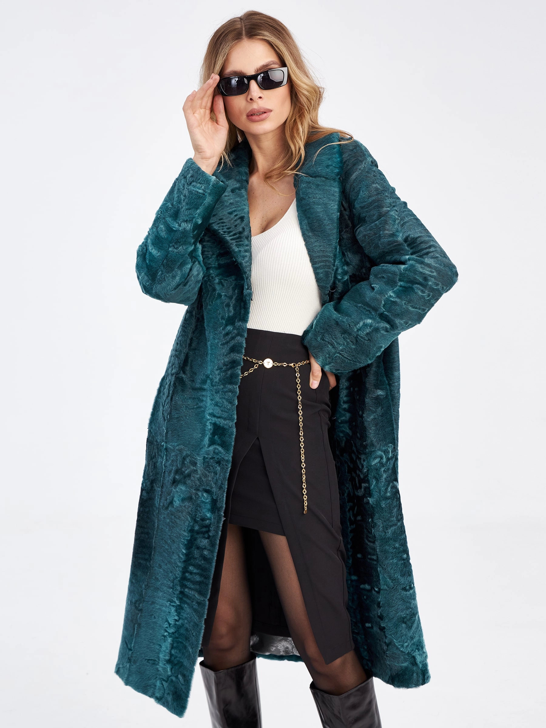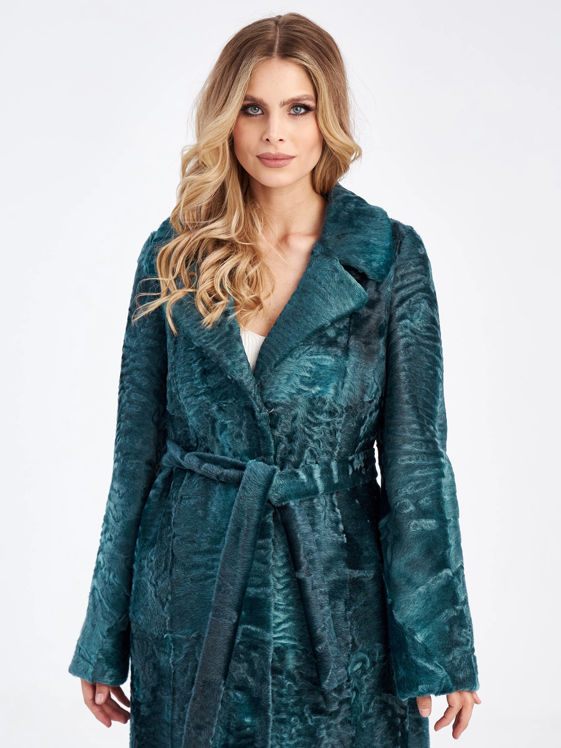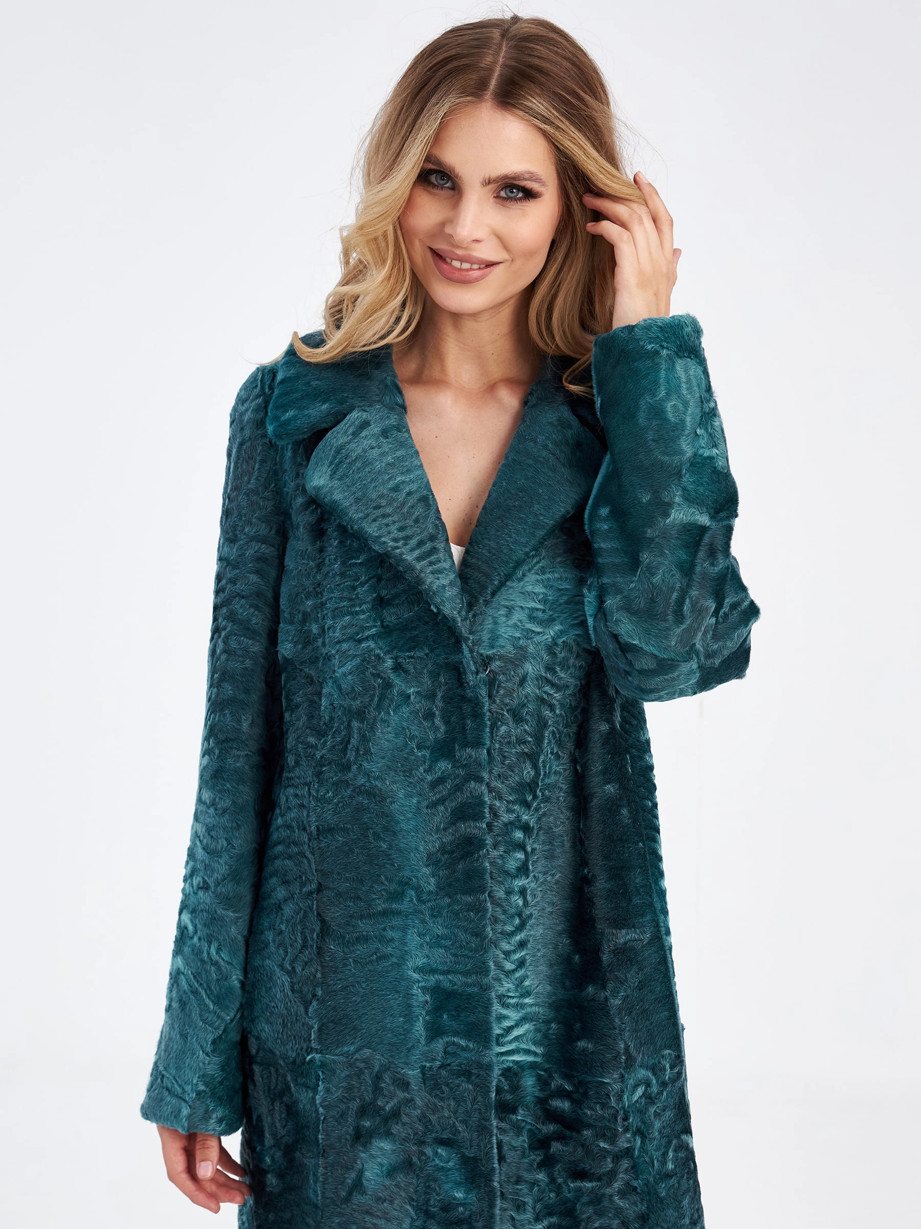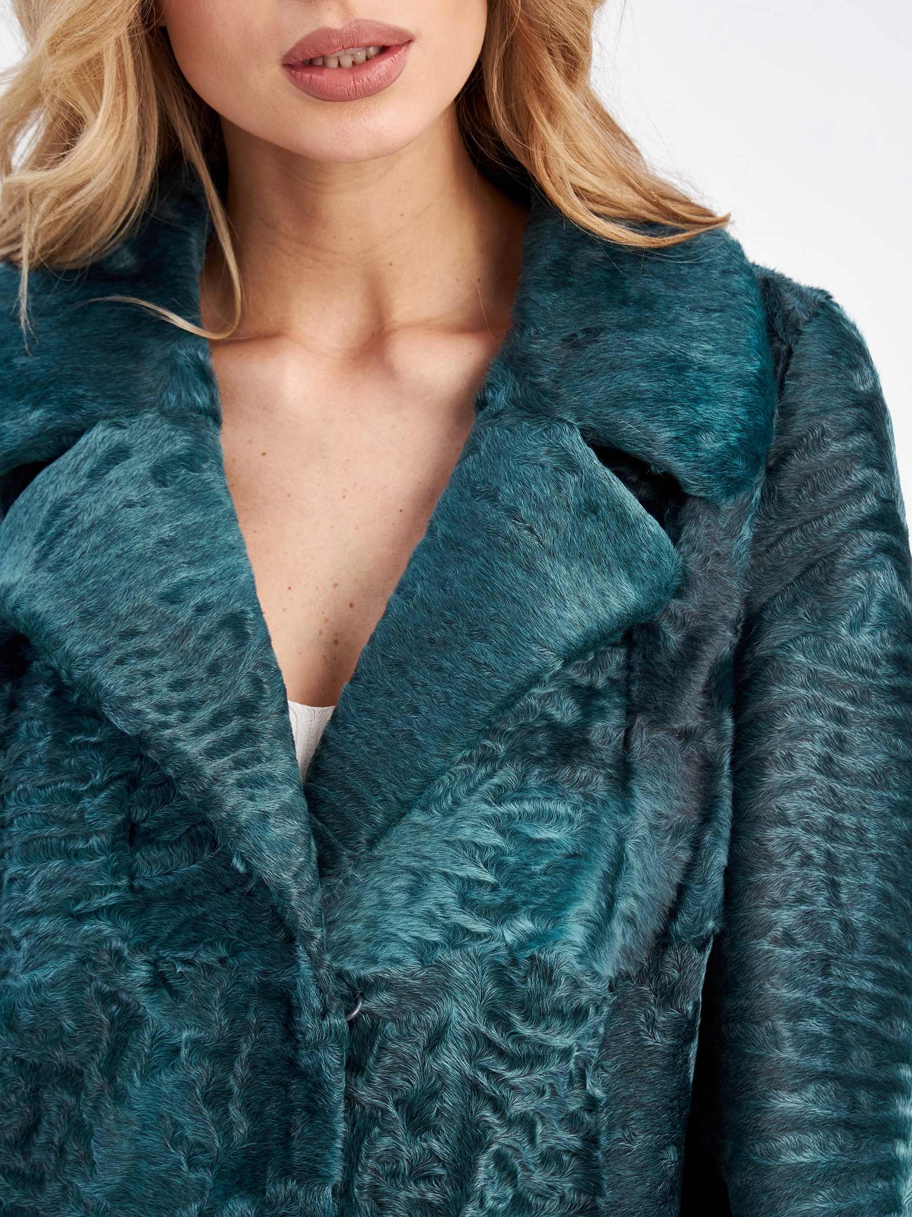 Товар шуба из меха каракуля для женщин лола, зеленая, размер 46, артикул 33790 выполнен из каракульча с застежкой клипсы. Рассчитан на сезон: осень-зима. Длина изделия 113 см, силуэт прямой.