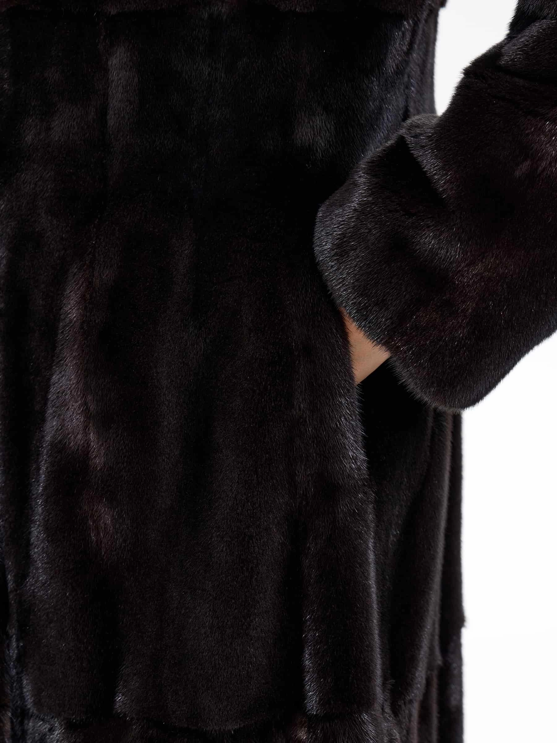 Шуба из меха норки MAKIS ROUSSOULIS METALICA, черная, размер 44, артикул 34500