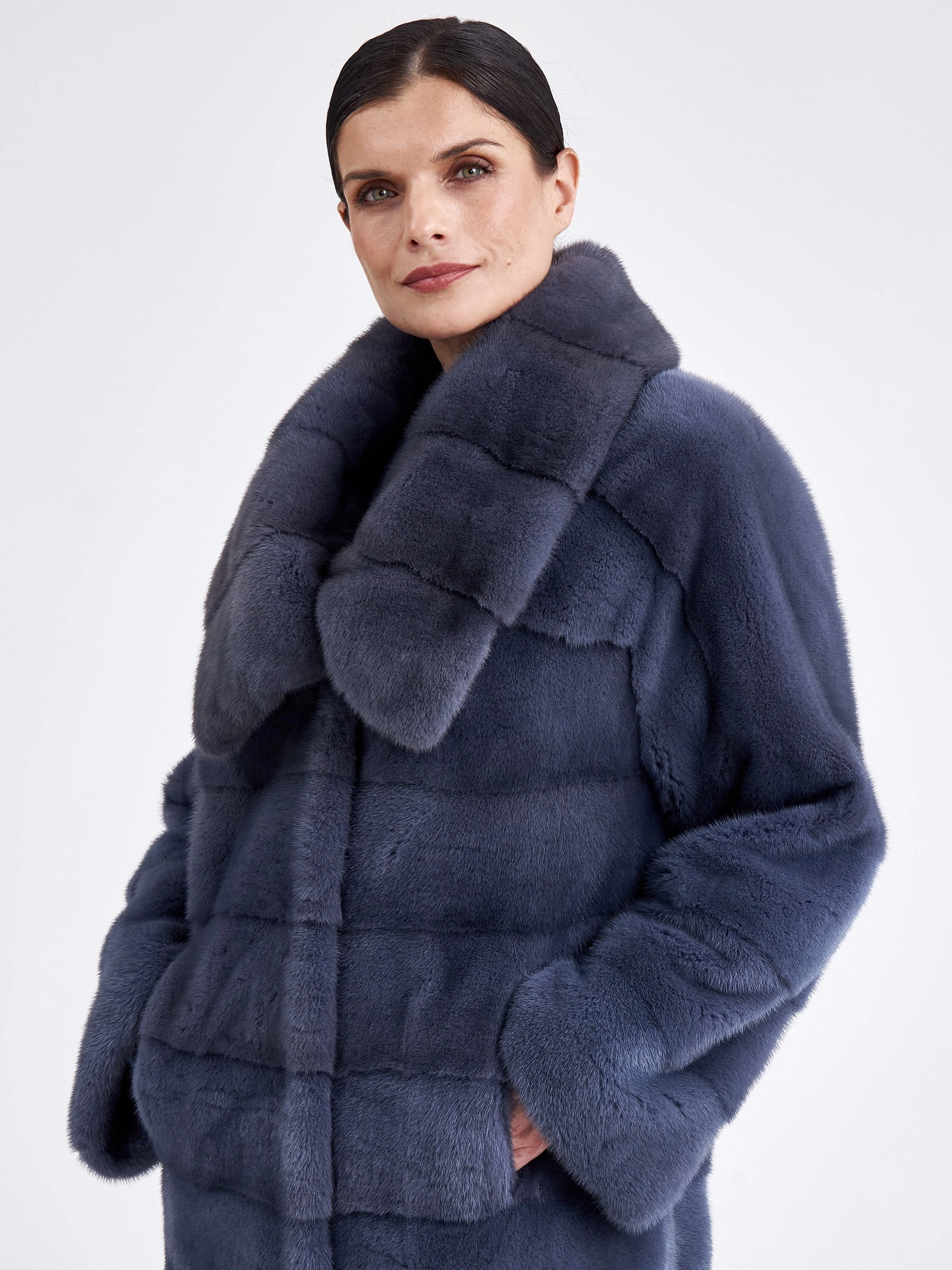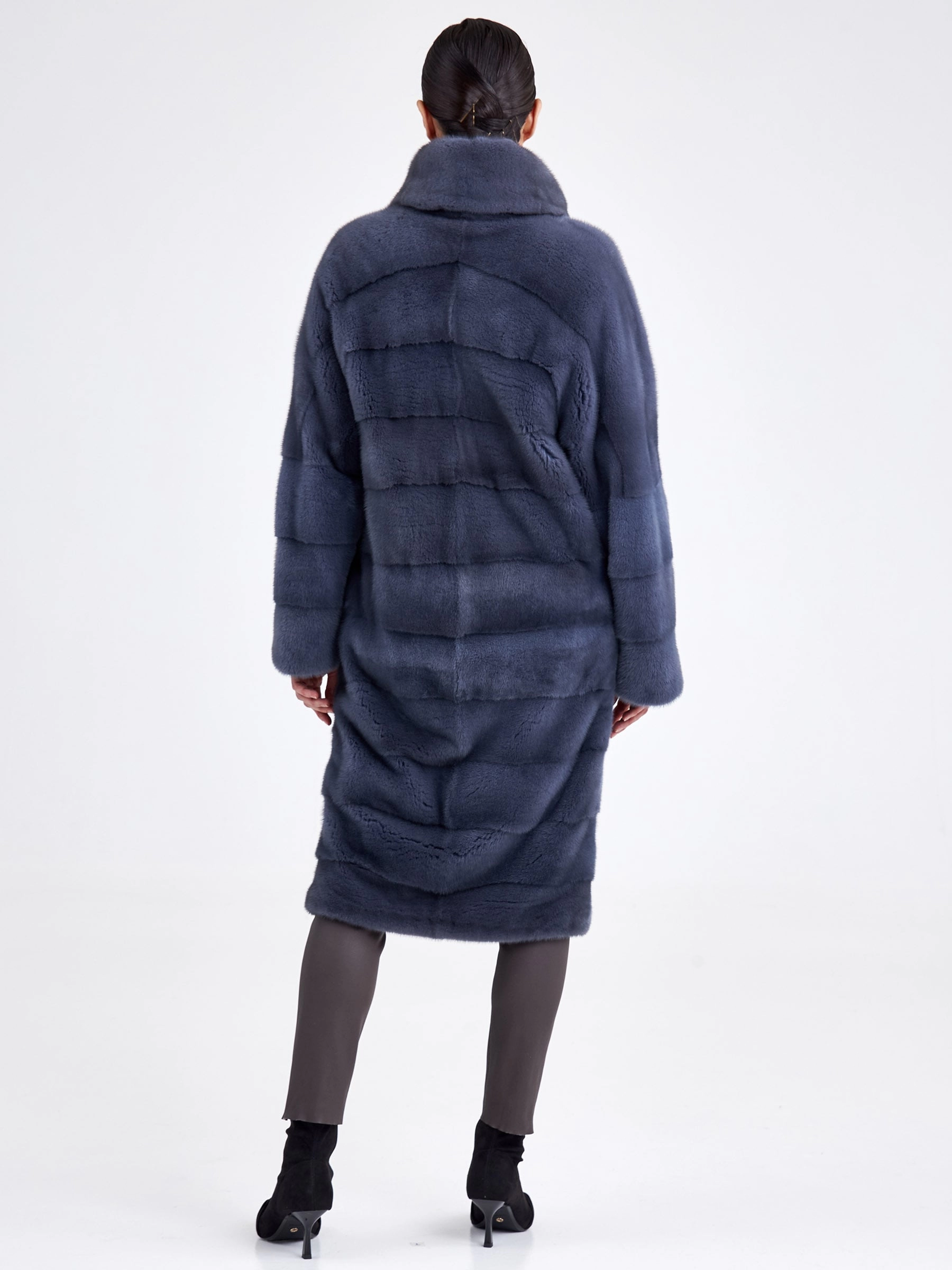 Длинная поперечная женская шуба из меха норки 1150(в), серая, размер 44, артикул 33180