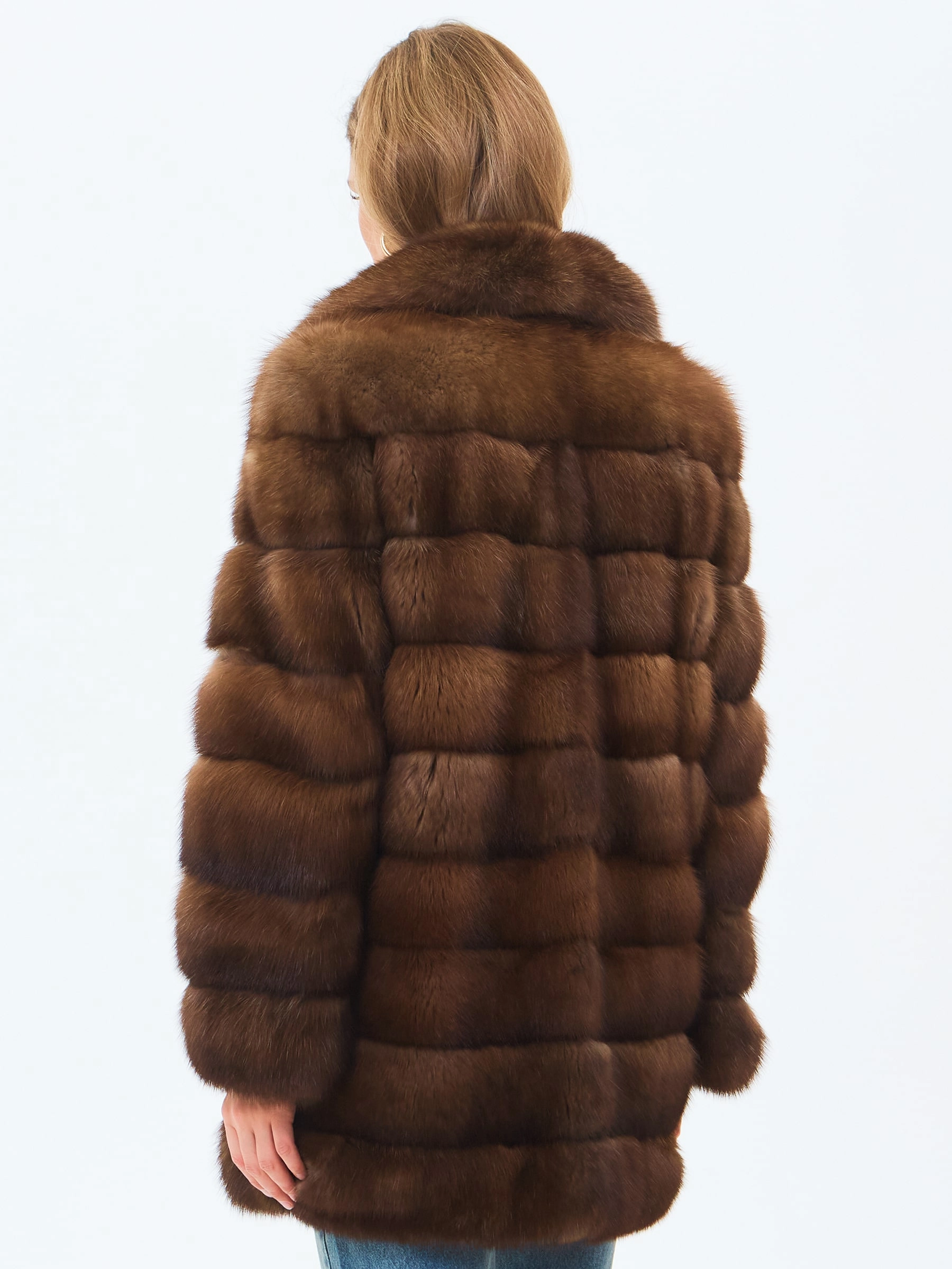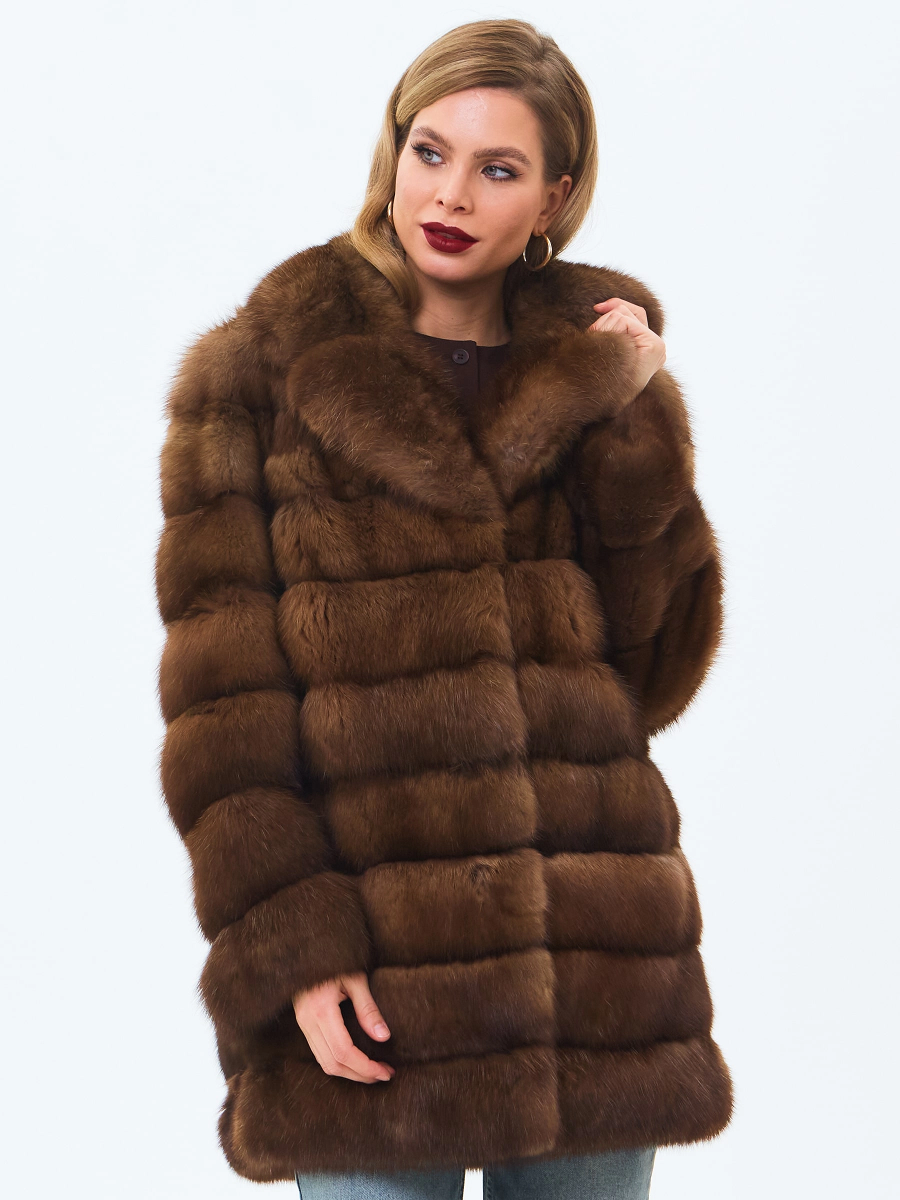 Шуба из меха соболя женская премиум класса 2А, темно-коричневая, размер 46, артикул 34210