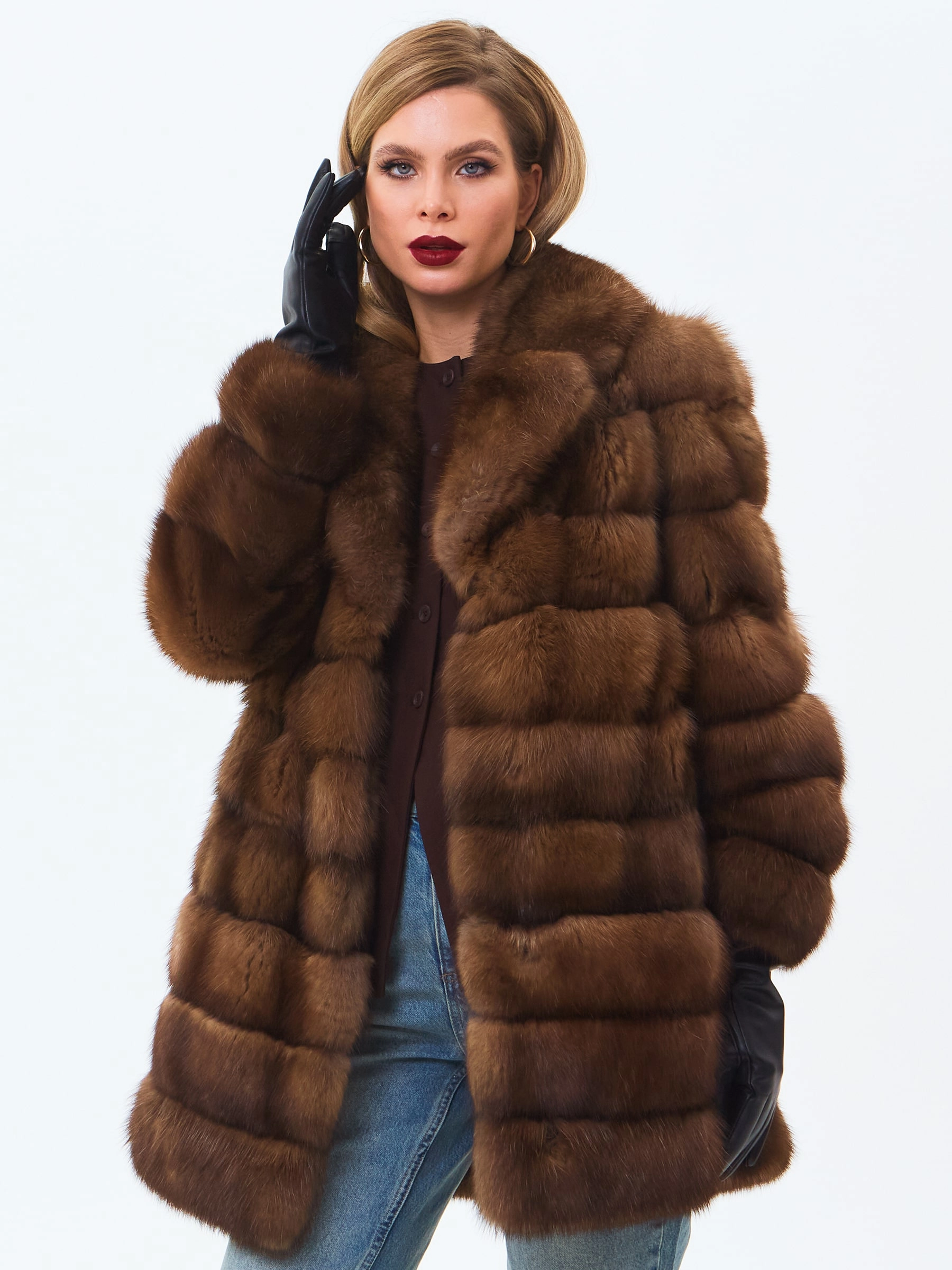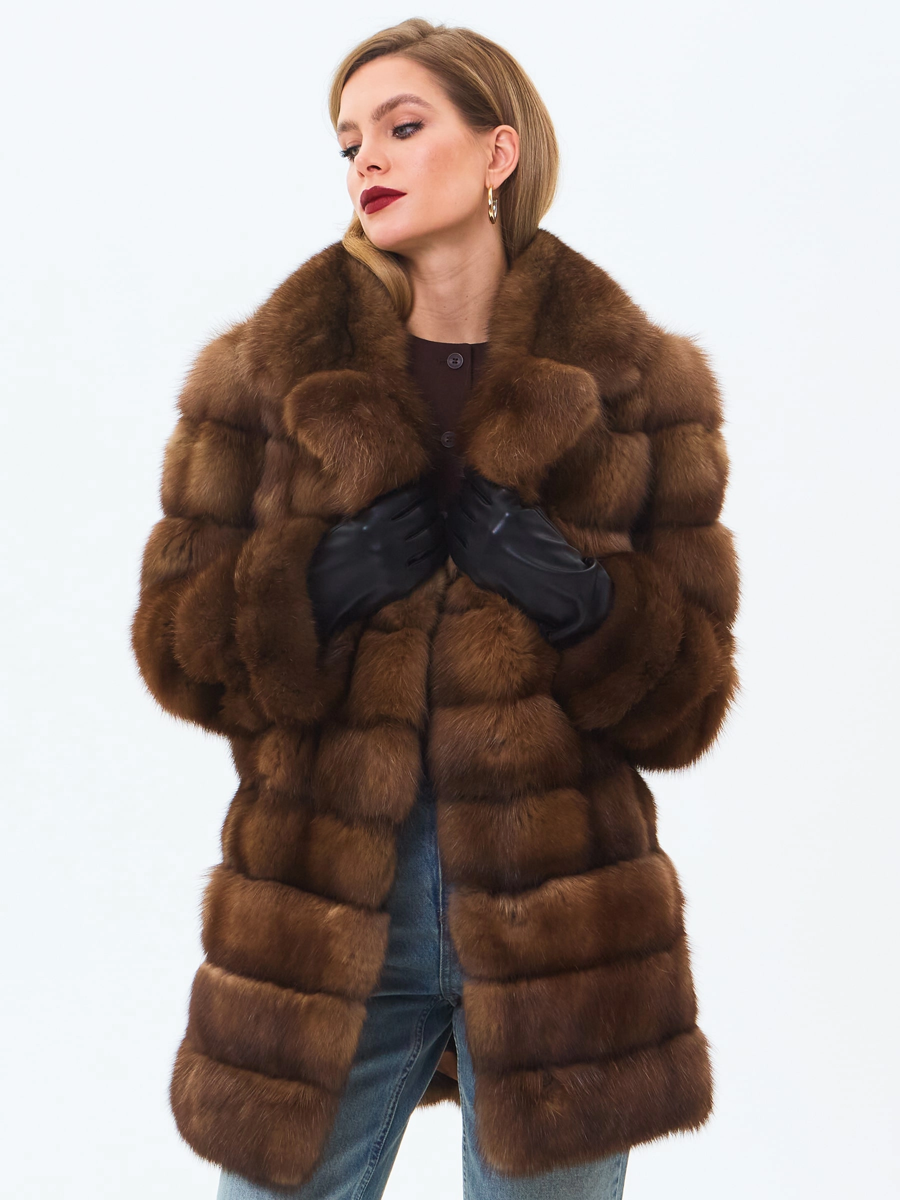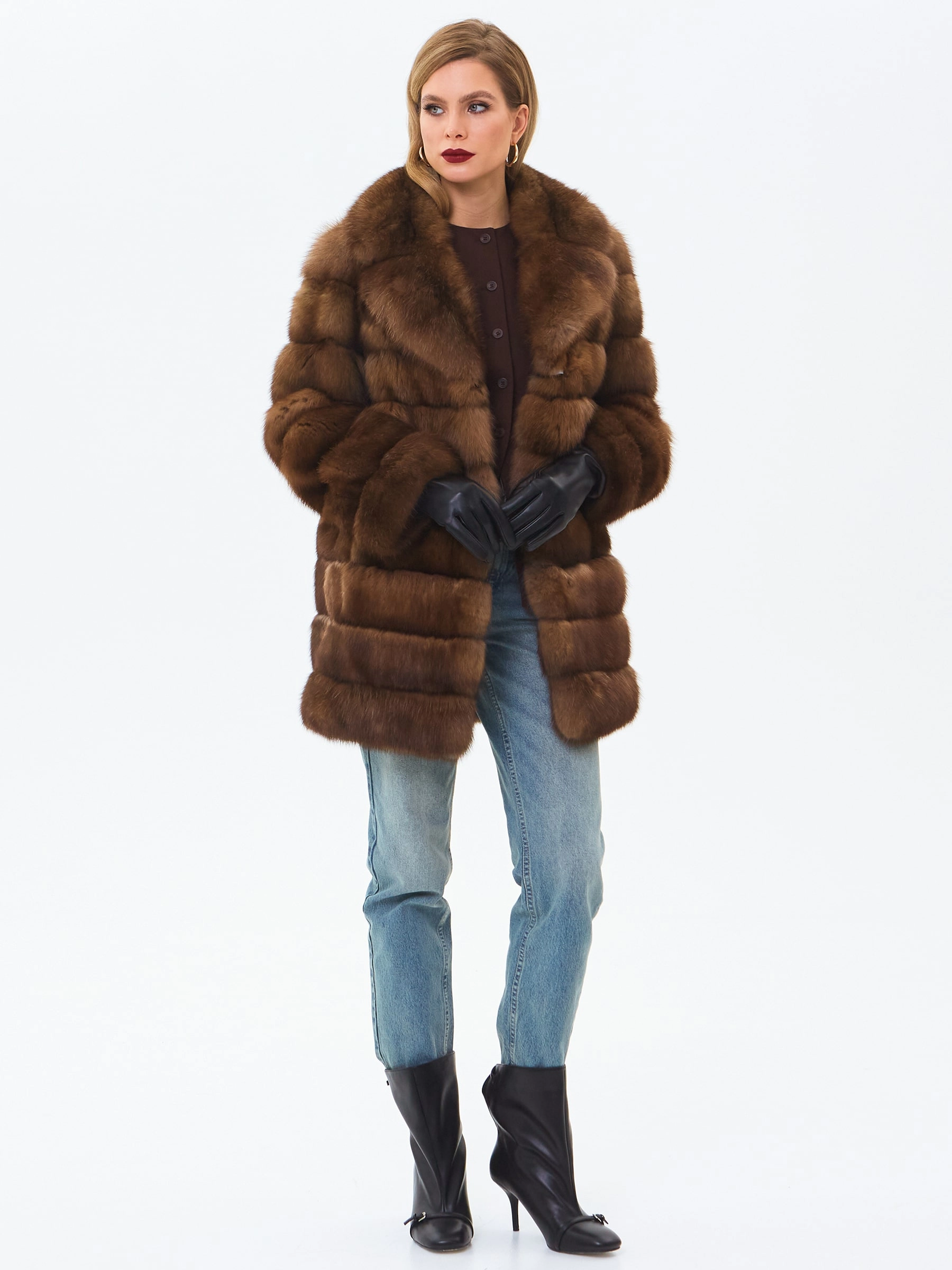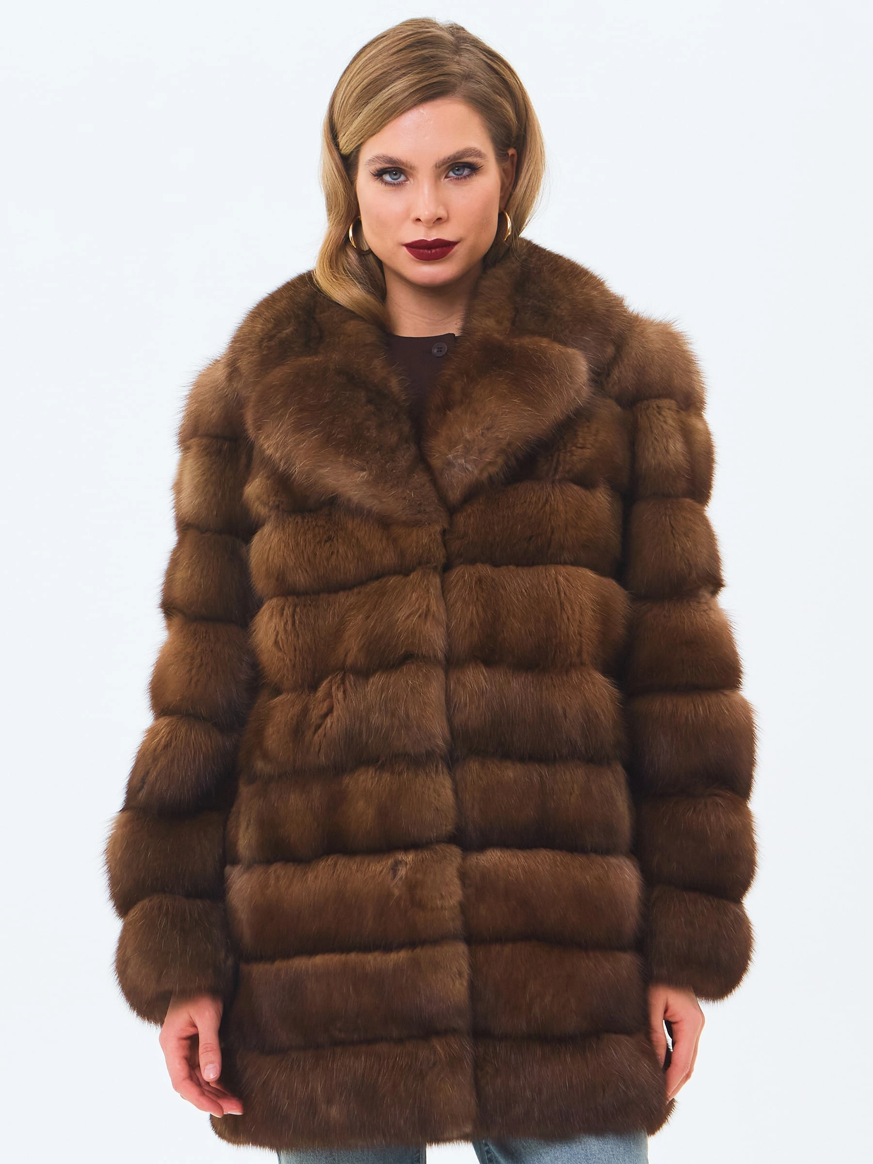 Эффектная шубка из меха соболя. Английский воротник с широкими лацканами. Диагональная раскладка меха. Способность сохранять тепло за счет очень плотного густого подшерстка, мягкого и шелковистого на ощупь. Невероятно легкая и комфортная шубка застегивается клипсами! Безупречный подбор меха. Премиальное качество.
