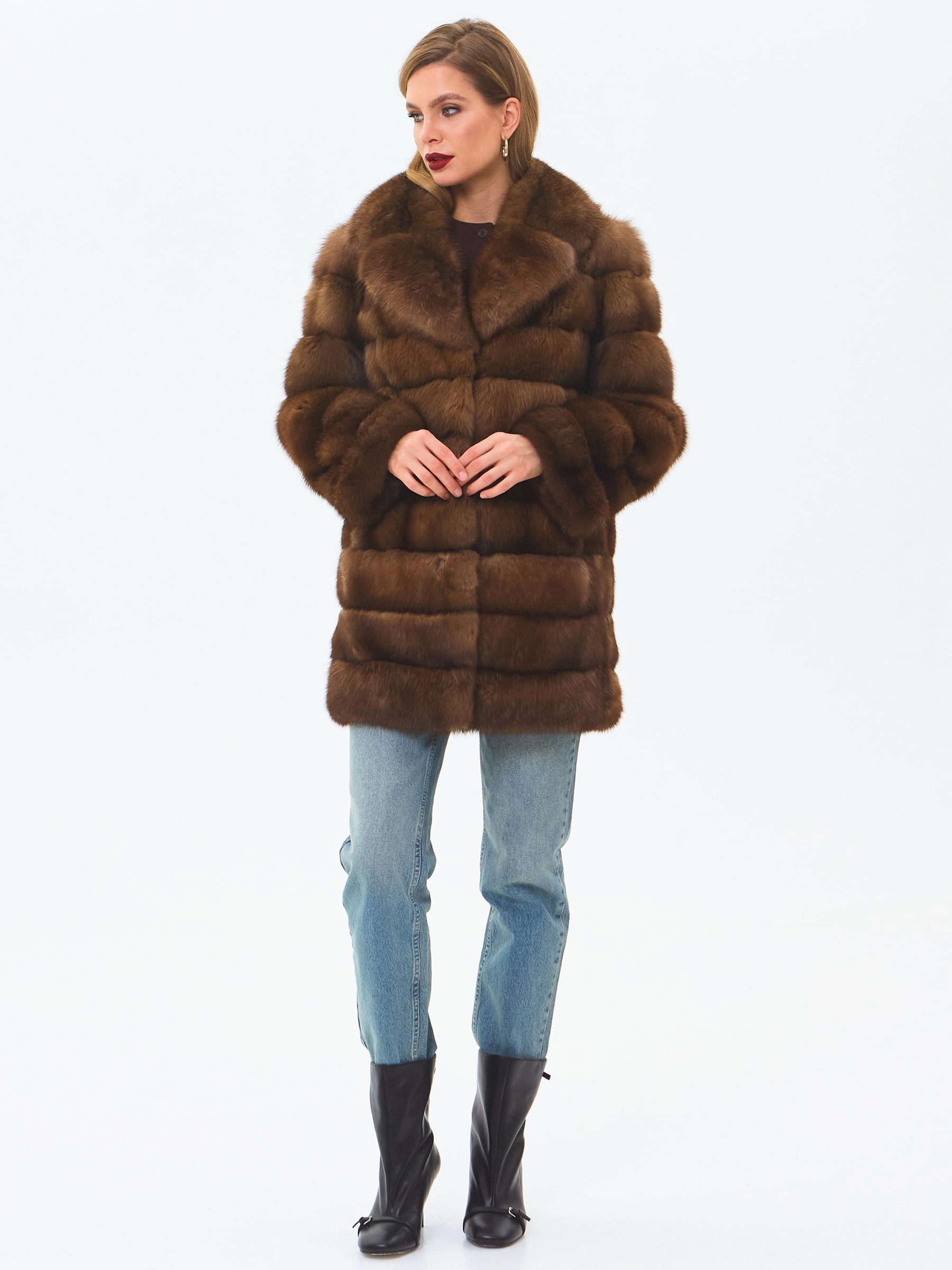 Товар шуба из меха соболя женская премиум класса 2а, темно-коричневая, размер 46, артикул 34210 выполнен из соболь с застежкой клипсы. Рассчитан на сезон: зима. Длина изделия 77 см, силуэт прямой.