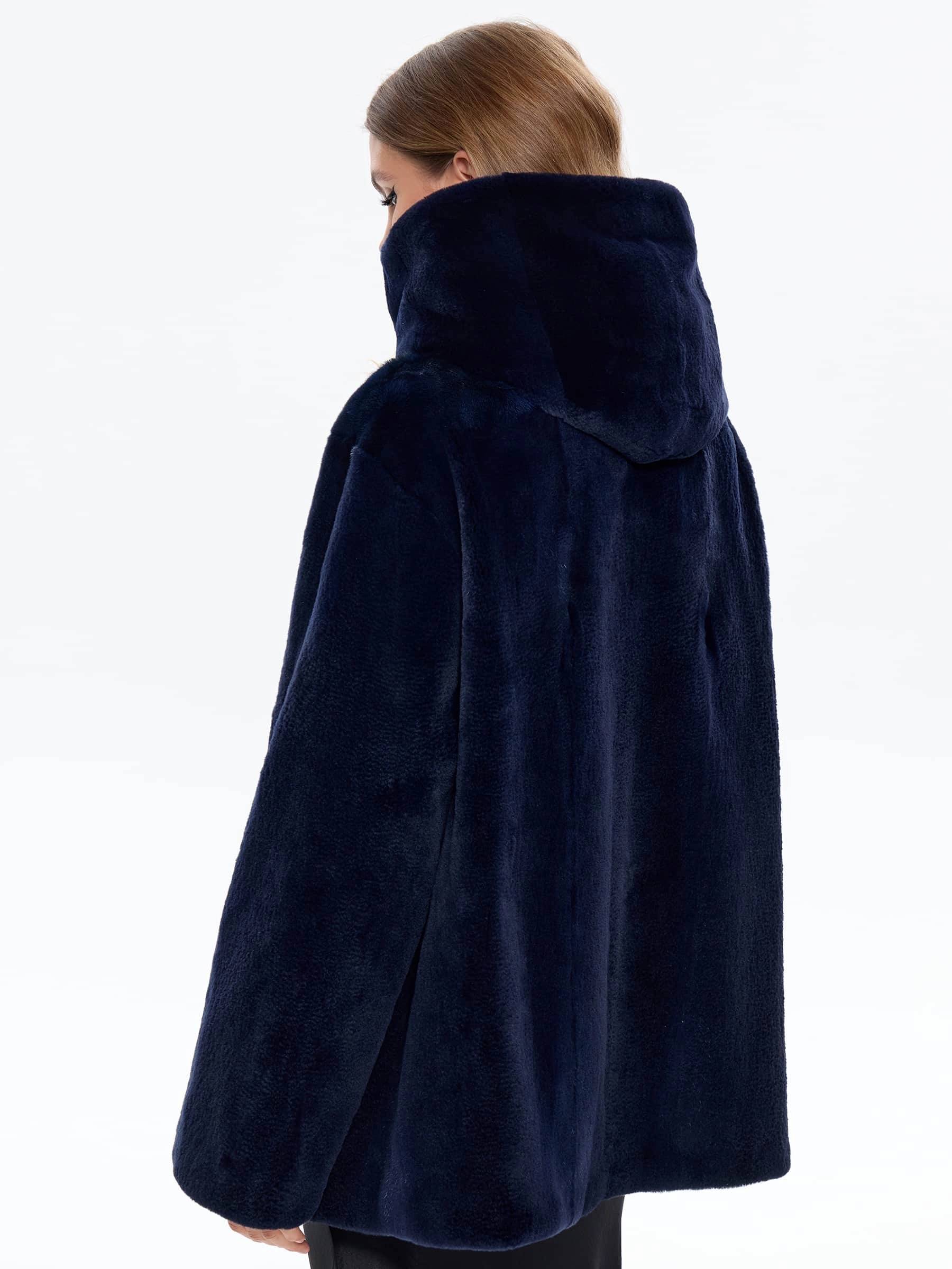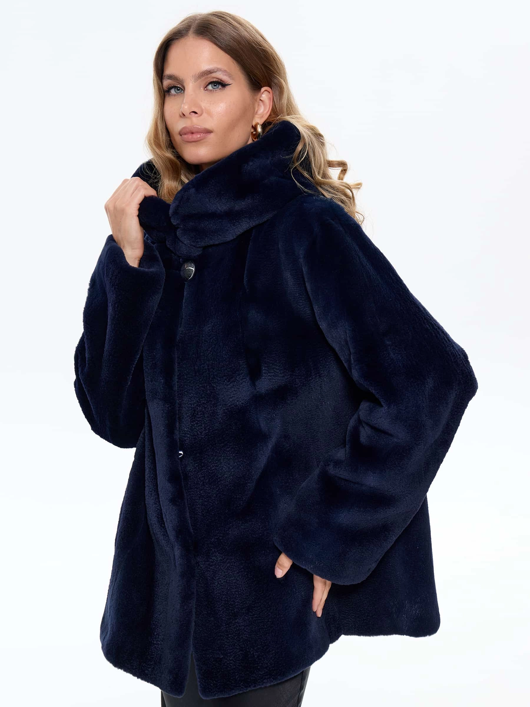 Элегантная короткая шуба из шелковистого "щипаного" меха норки с объемным капюшоном модели «Жанет» насыщенного синего оттенка. Свободный силуэт и спущенный рукав создают современный образ уютной роскоши, а текстура меха, напоминающая набивной бархат, придает ей особый шарм. Рекомендация стилиста: эта модель великолепно сочетается с узкими джинсами, высокими сапогами и объемным свитером для повседневного образа, а также с кожаными брюками и дизайнерскими кроссовками для дерзкого городского лука. Идеальный выбор для тех, кто ценит современный комфорт и непревзойденную элегантность.