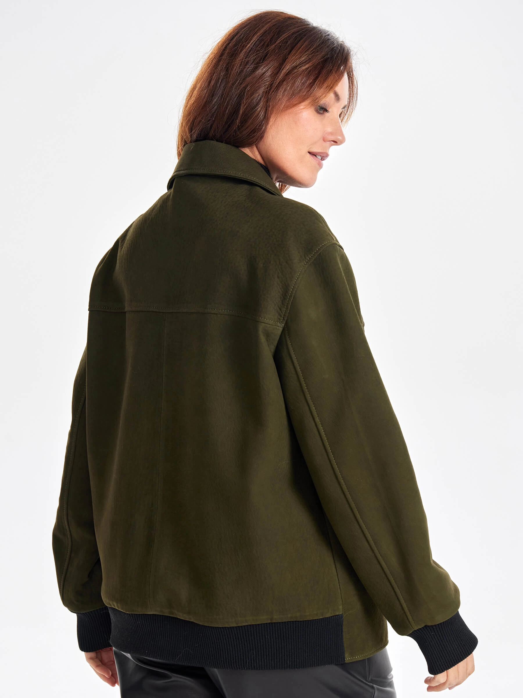 Удлиненная женская кожаная куртка бомбер премиум класса 3065, хаки, размер 48, артикул 23790
