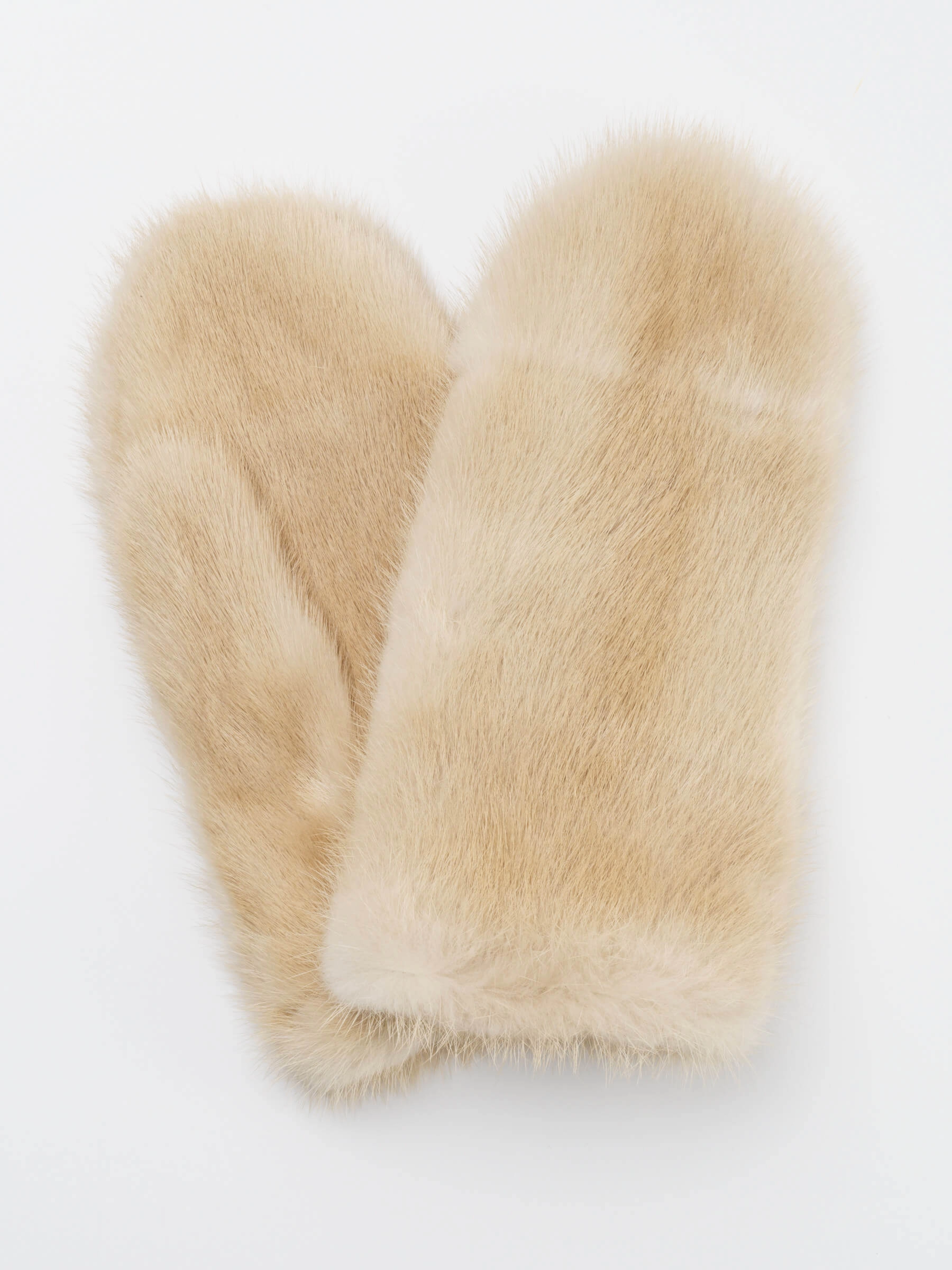 Варежки из меха норки женские 228, бежевые, размер One Size, артикул 20410