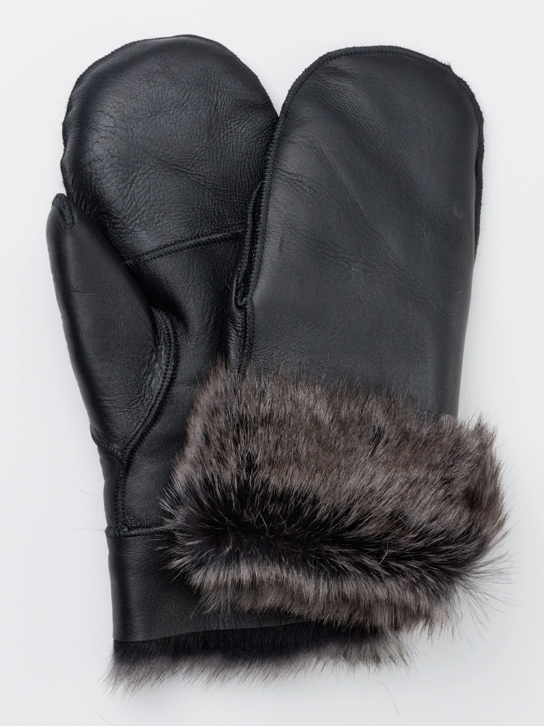 Варежки из овчины меховой мужские, черные, размер One Size, артикул 160110