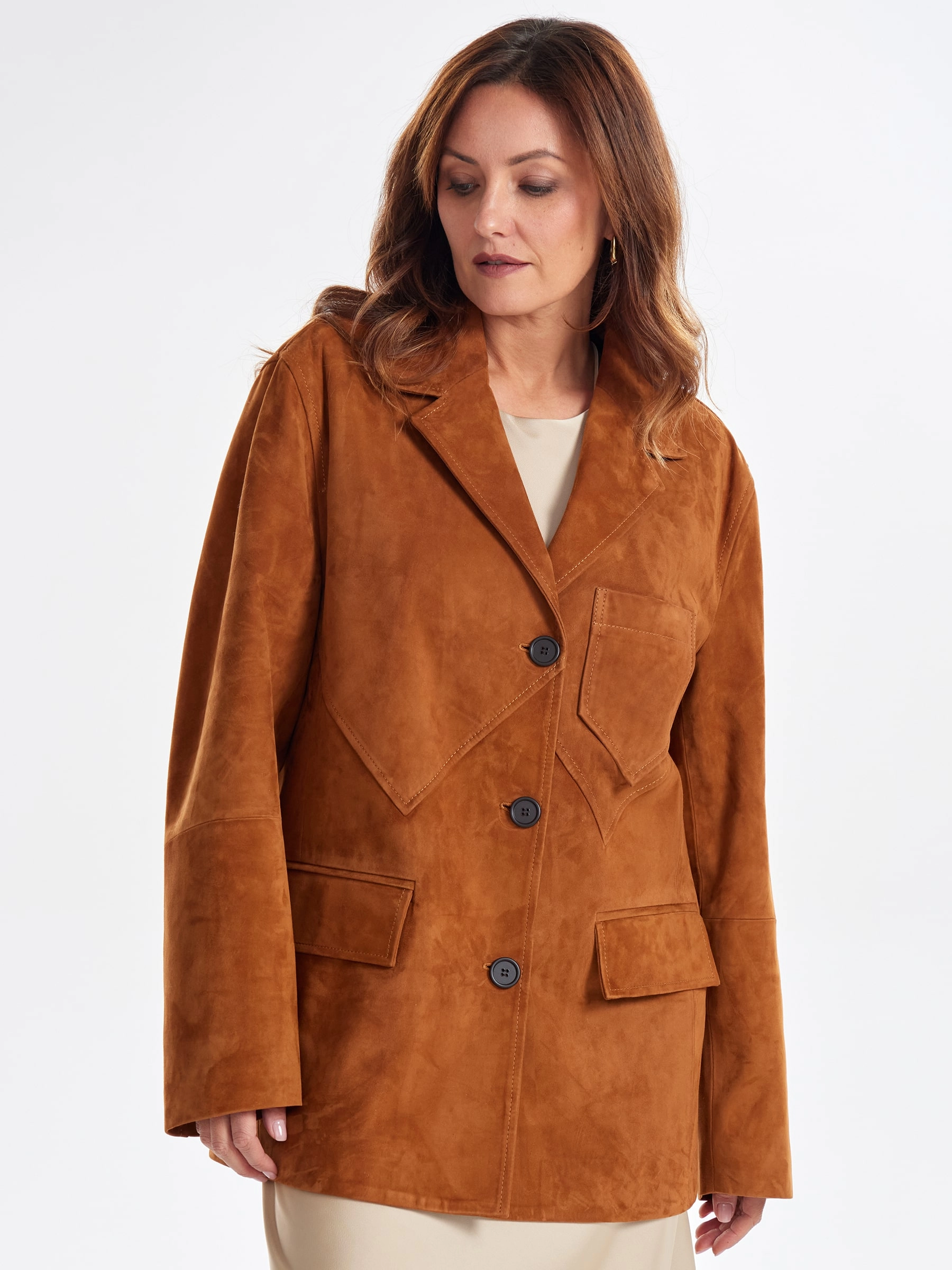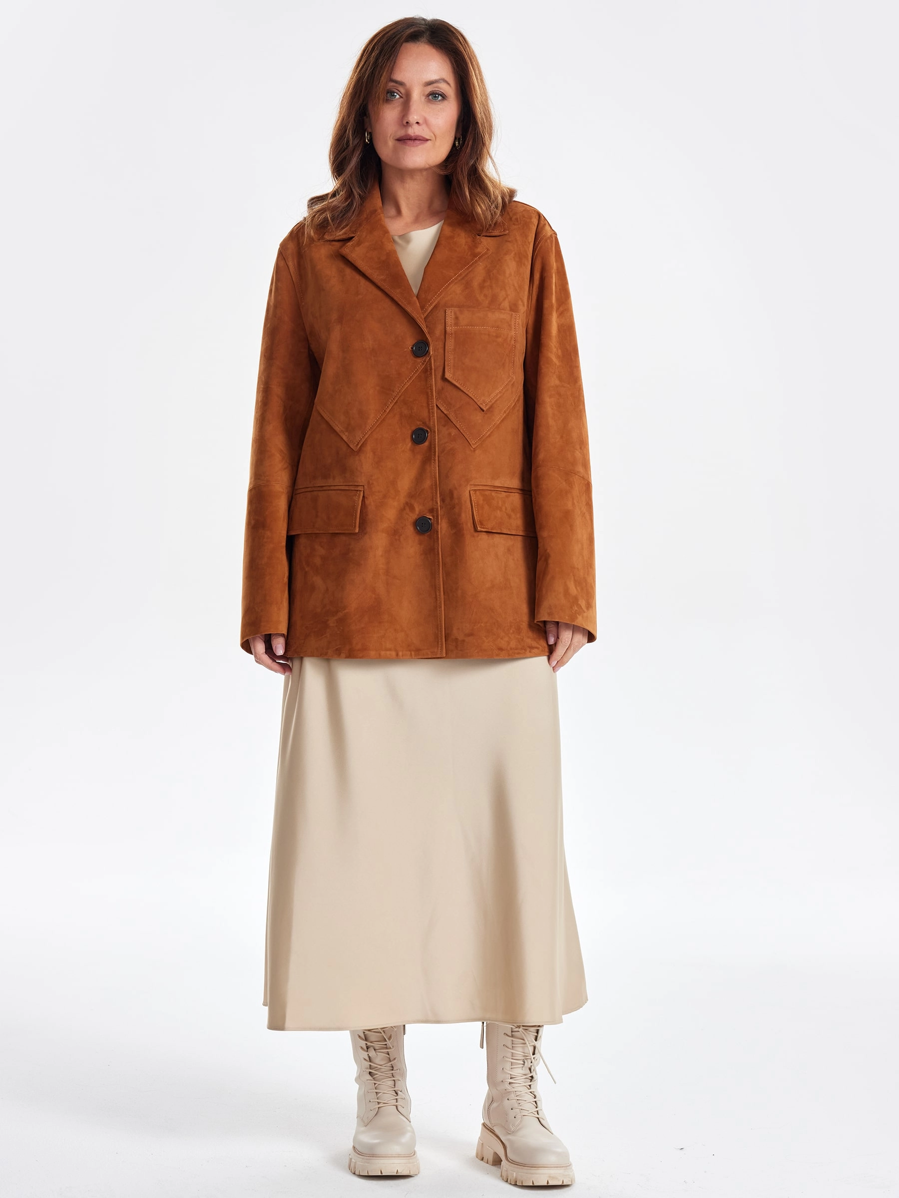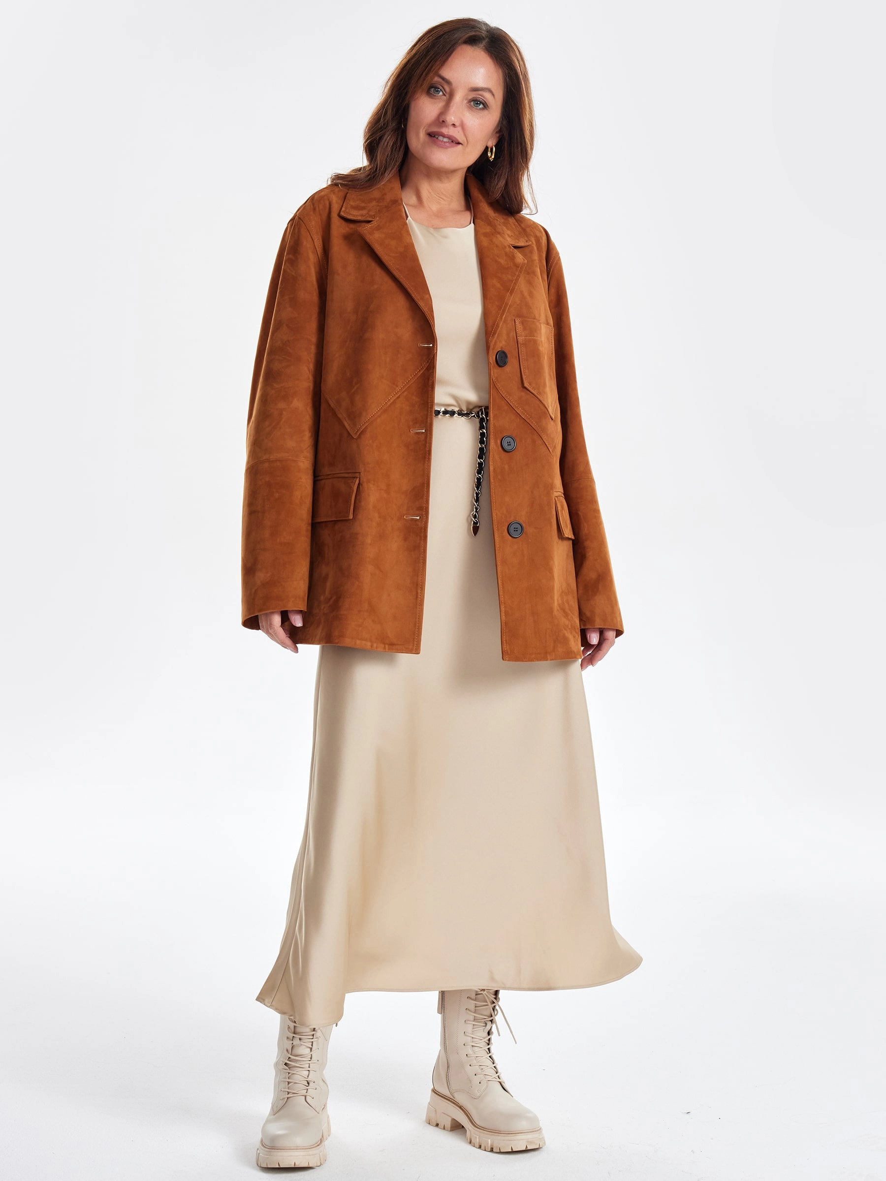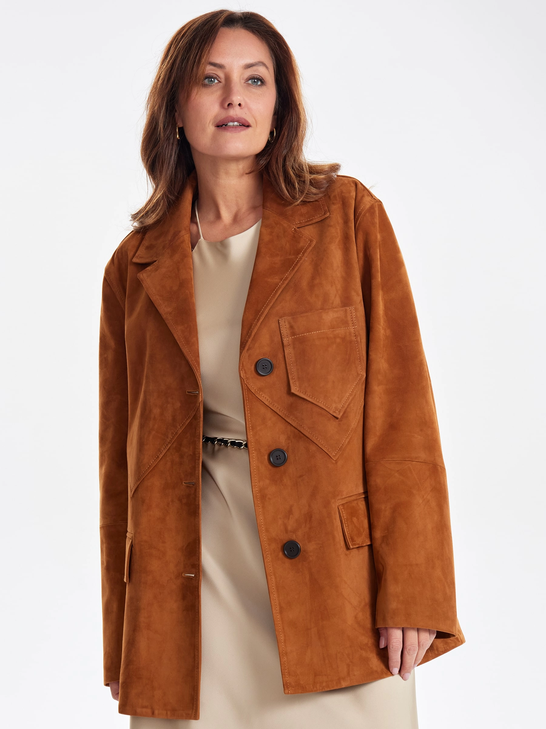 Замшевый пиджак для женщин премиум класса 3069з, виски, размер 44, артикул 24110