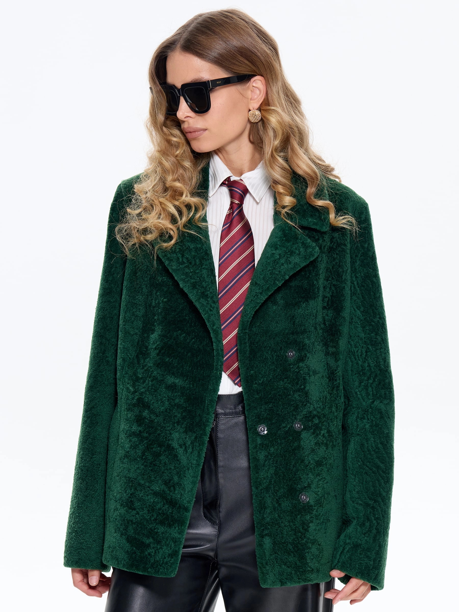 Зеленая дубленка из астрагана 58мех, размер 46, артикул 64760