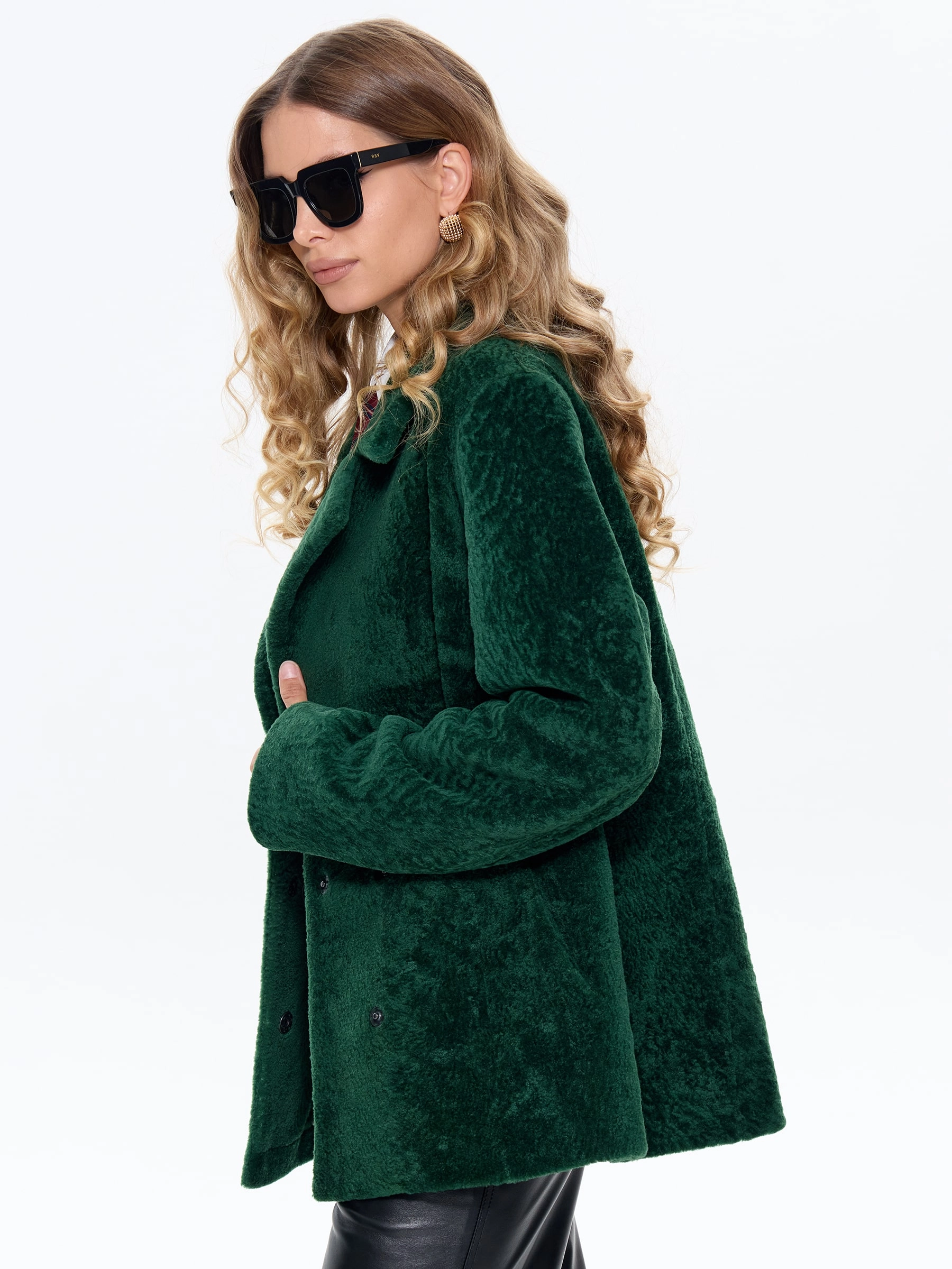 Товар зеленая дубленка из астрагана 58мех, размер 46, артикул 64760 выполнен из астраган с застежкой кнопки. Рассчитан на сезон: осень-зима. Длина изделия 70 см, силуэт прямой.