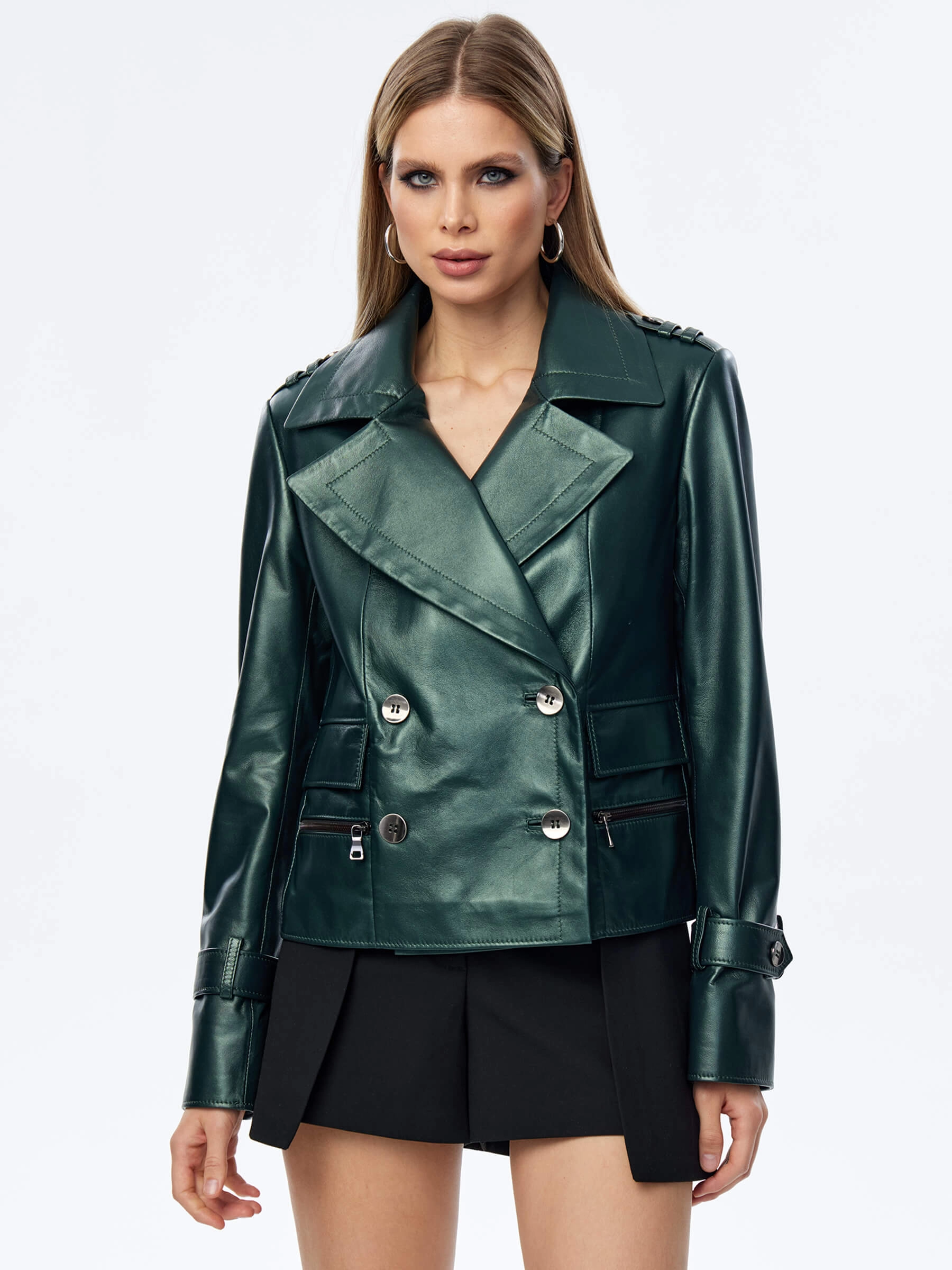 В интернет-магазине Primo Vello вы можете купить интересующий вас товар зеленый женский двубортный кожаный пиджак 3014 в Перми по выгодной цене 39 990 руб.