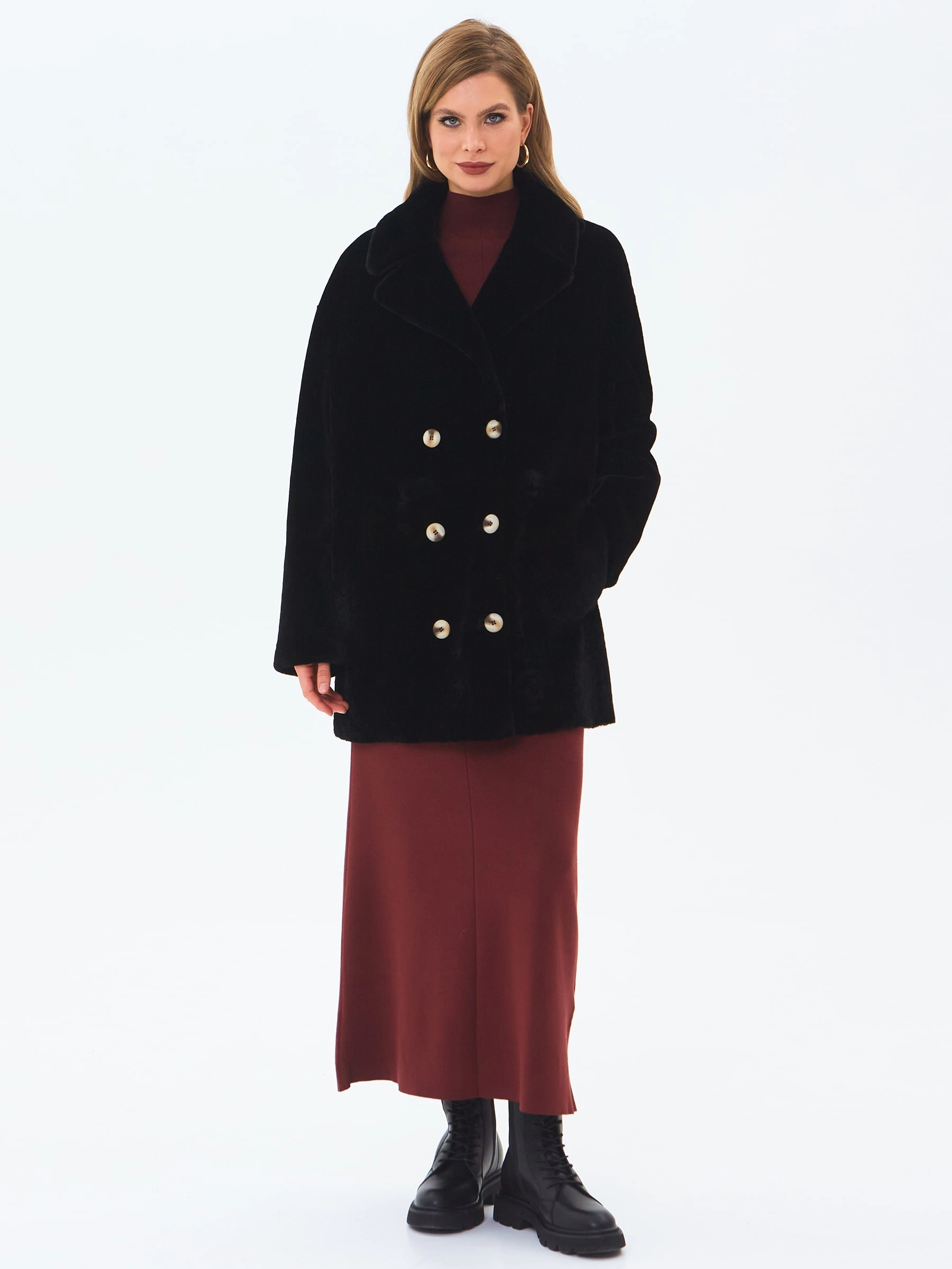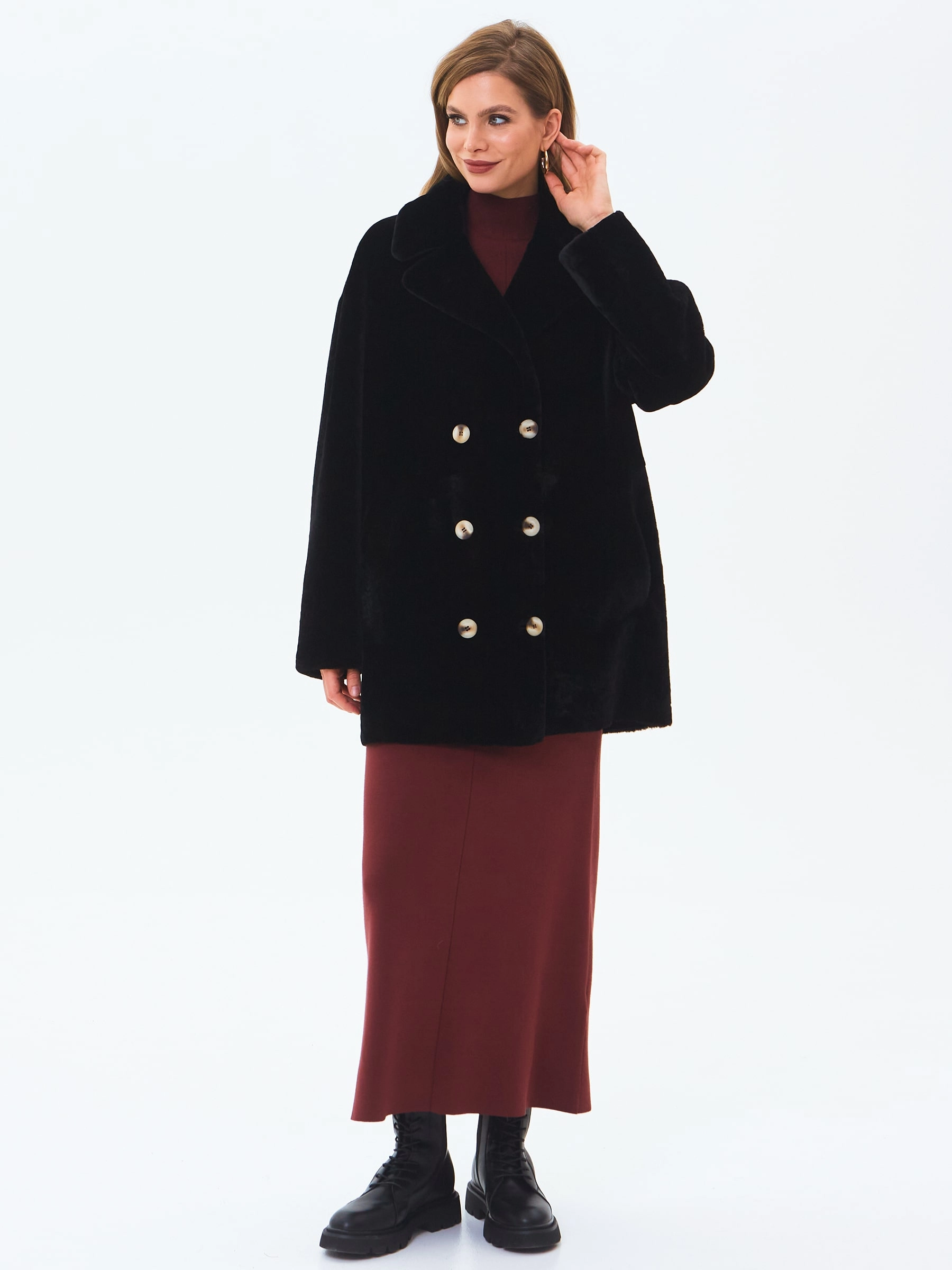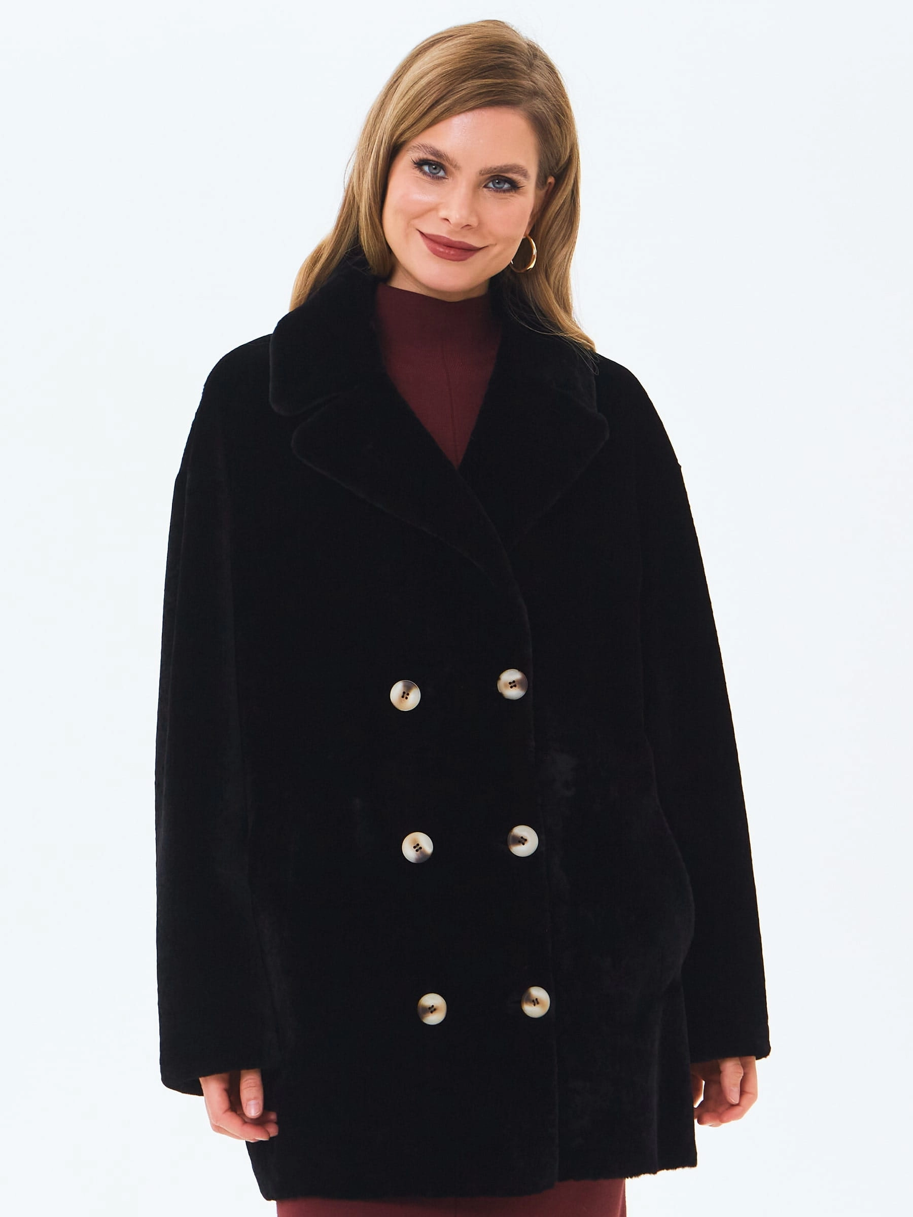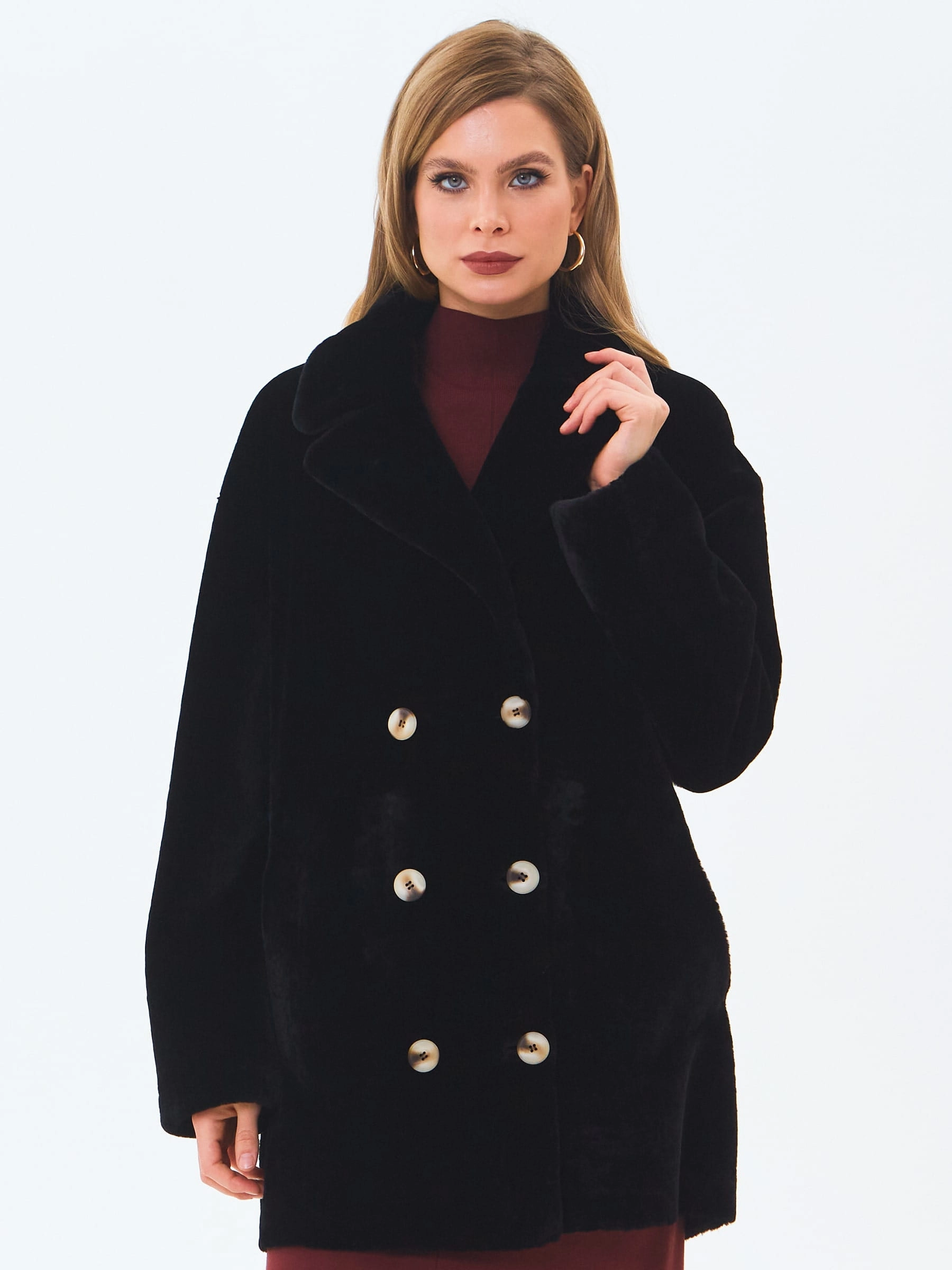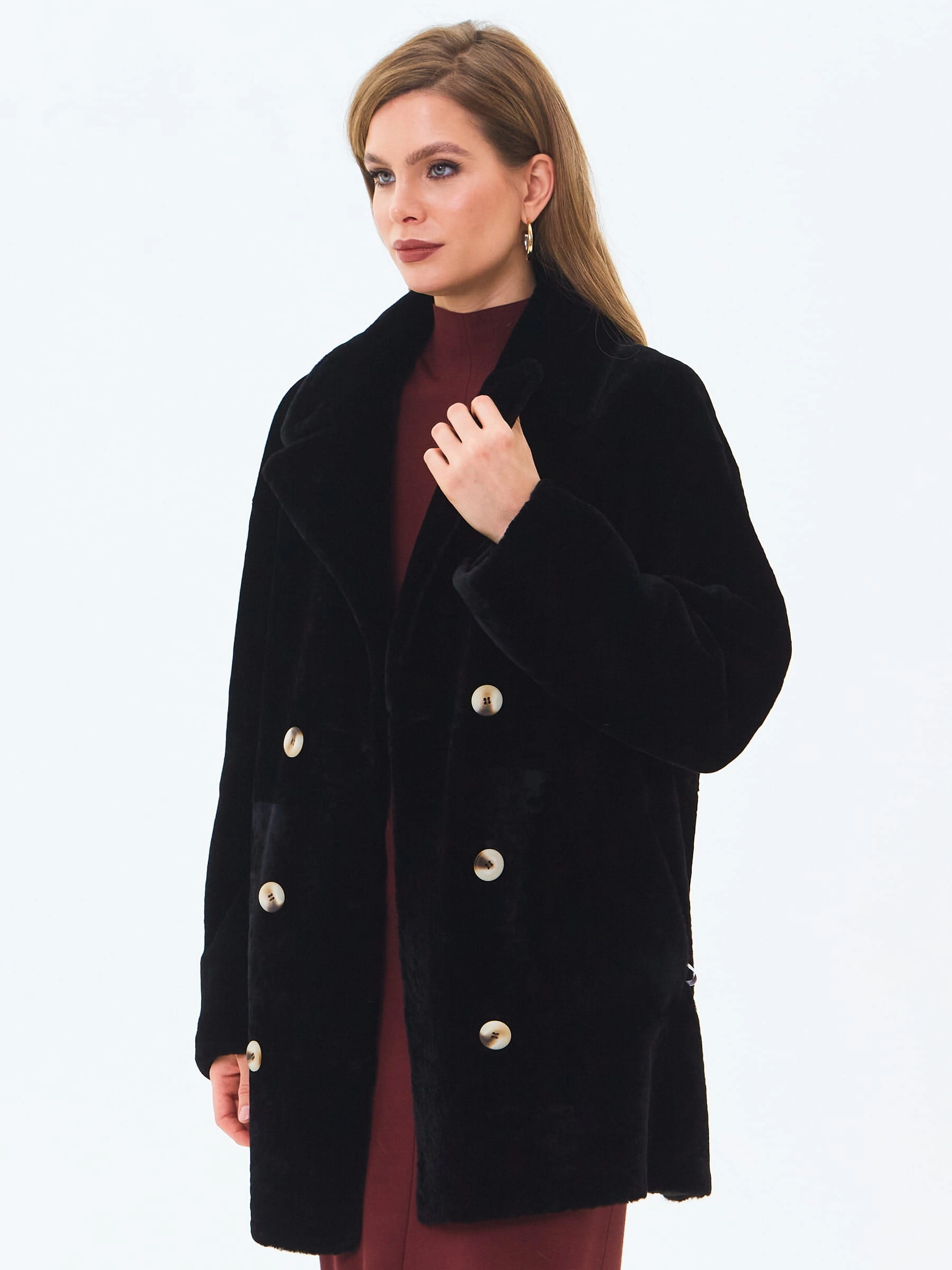 Женская дубленка из астрагана 2064, черная, размер 48, артикул 64640