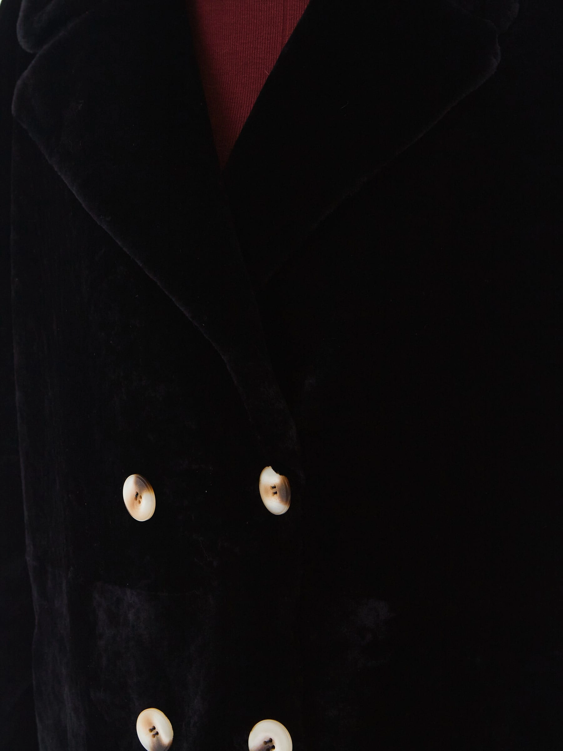 Стиль и комфорт читается в этой двубортной модели. Дубленку прямого кроя выполнили из нежного меха астраган. Прямой крой, спущенная линия плеча, широкие лацканы, два врезных кармана. Идеальная посадка по фигуре. Изделие застегивается крупными пуговицами.