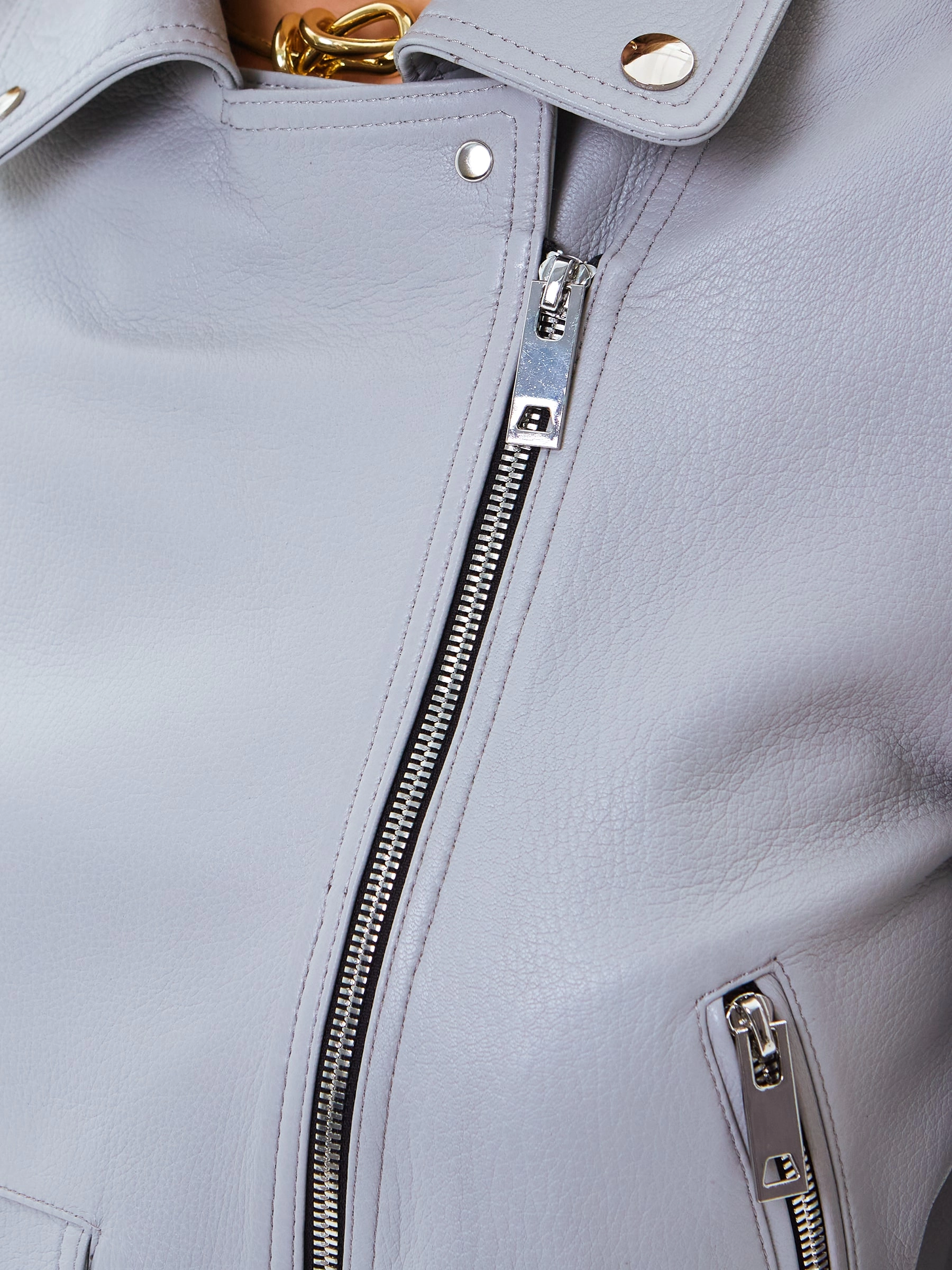 Товар женская кожаная куртка косуха с поясом премиум класса 3080, серая, размер 42, артикул 24530 выполнен из натуральной кожи с застежкой молния. Рассчитан на сезон: весна-лето. Длина изделия 46 см, силуэт прямой.