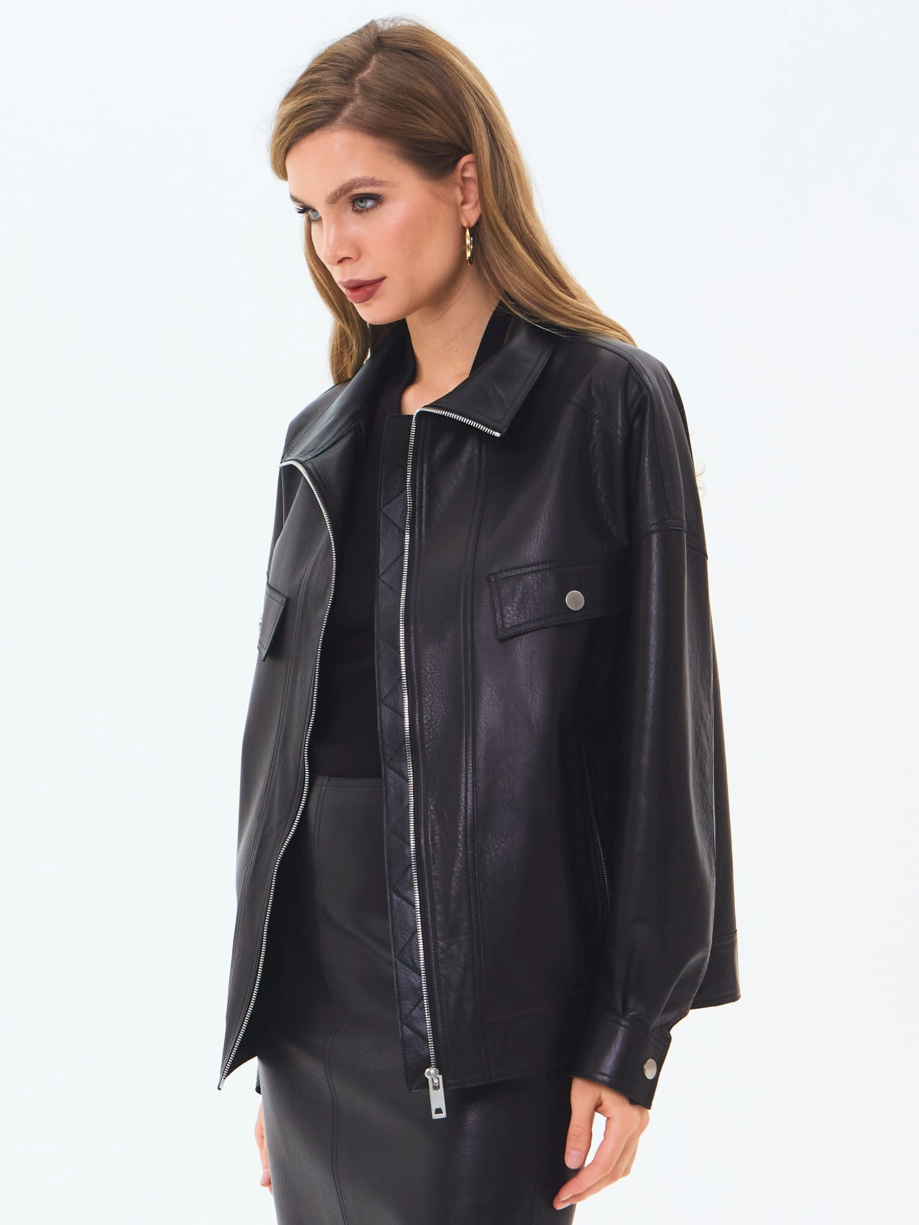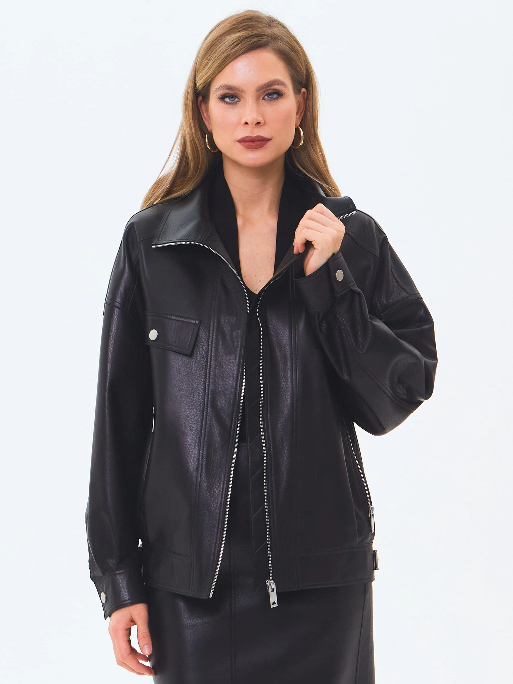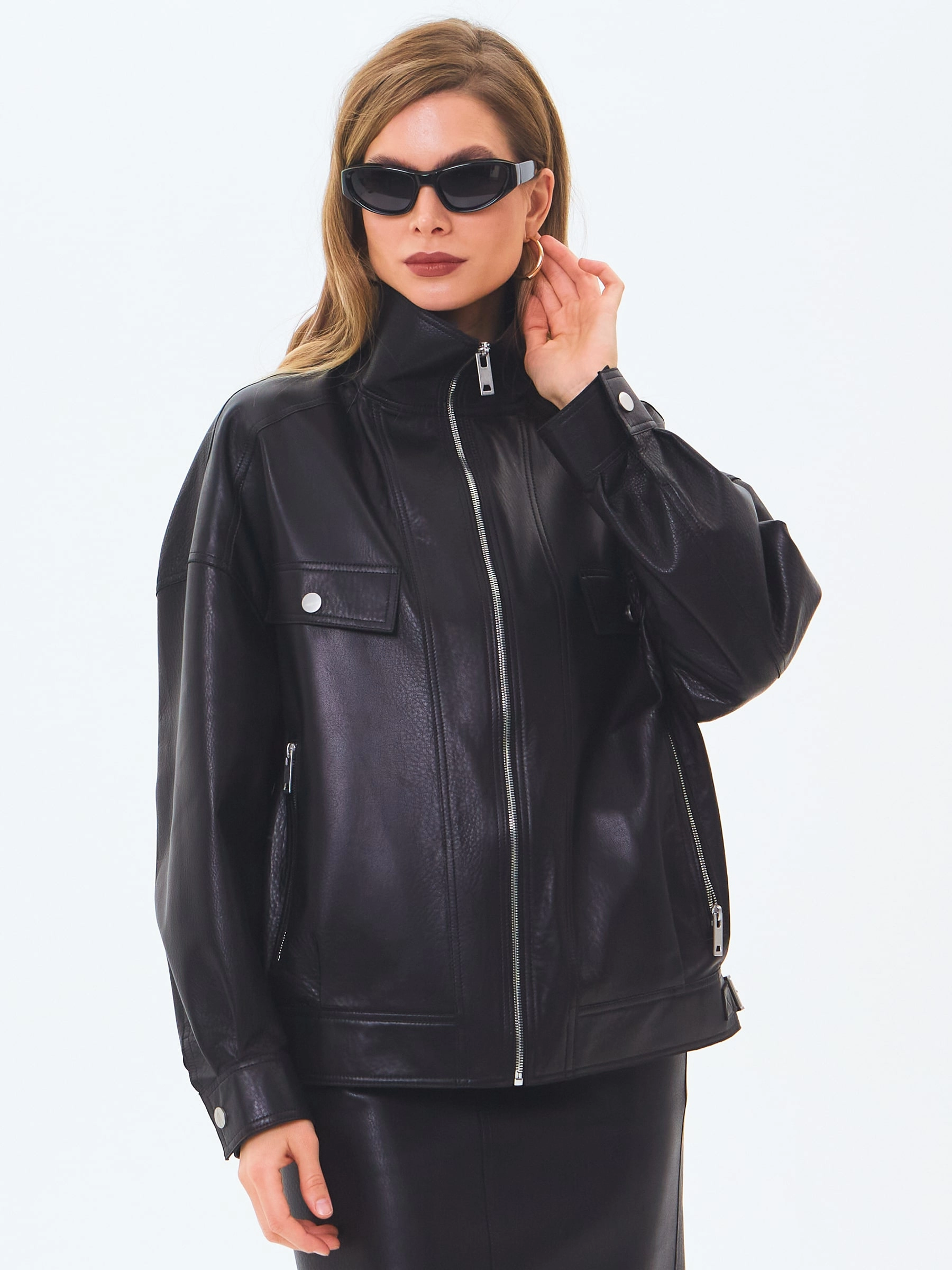 Товар женская кожаная куртка премиум класса 3087, черная, размер 46, артикул 24460 выполнен из натуральной кожи с застежкой молния. Рассчитан на сезон: весна-лето. Длина изделия 64 см, силуэт прямой.
