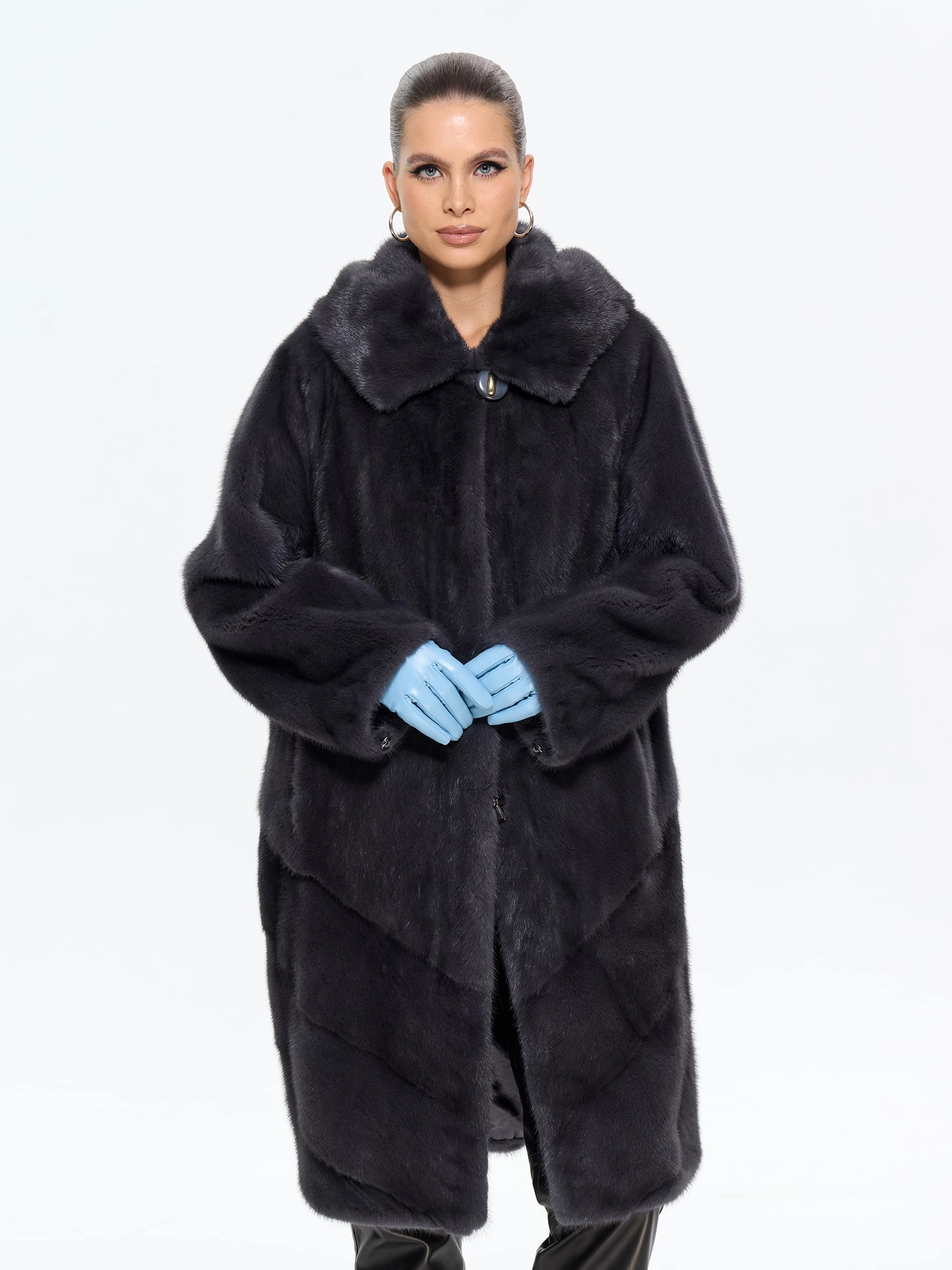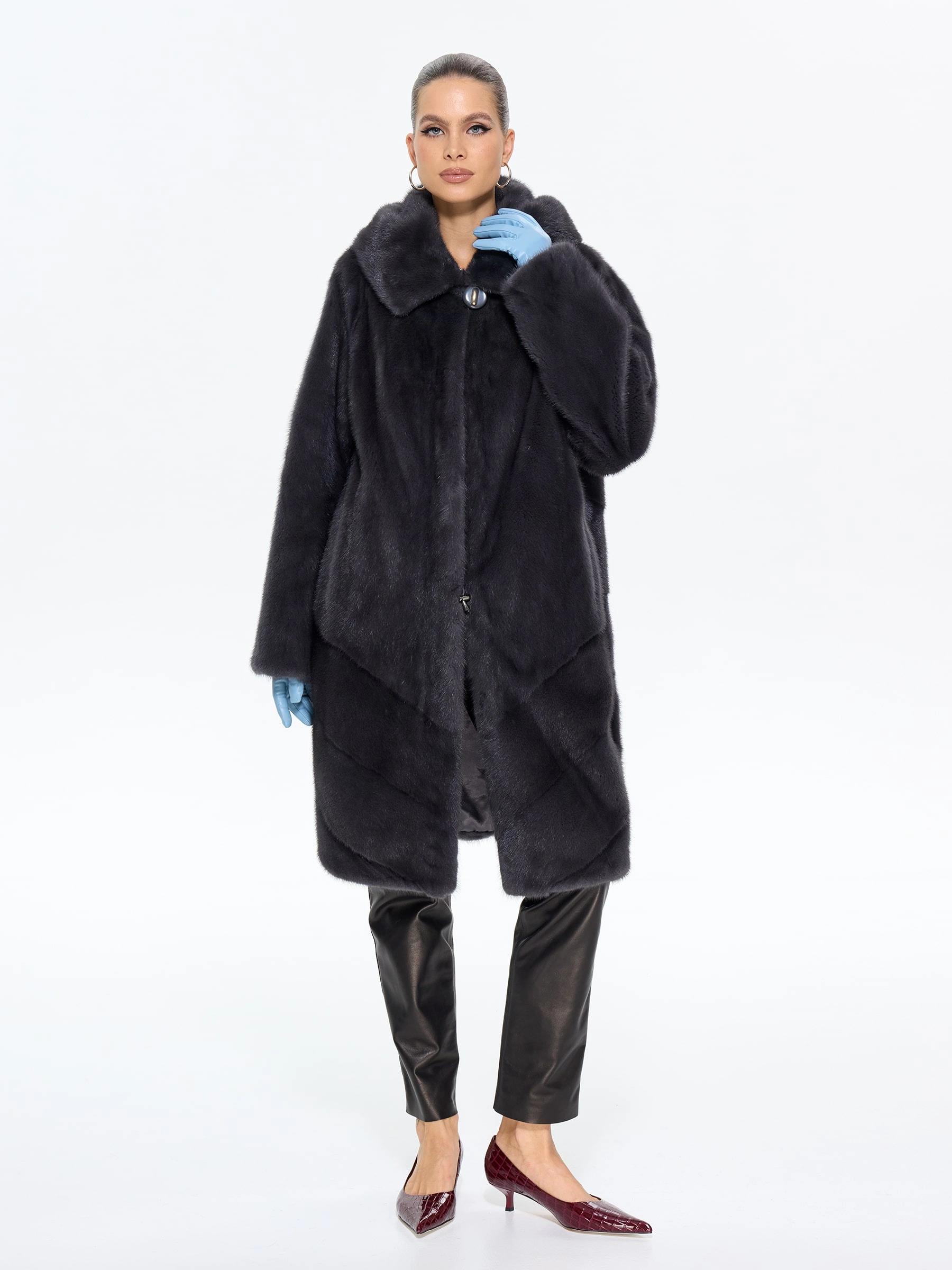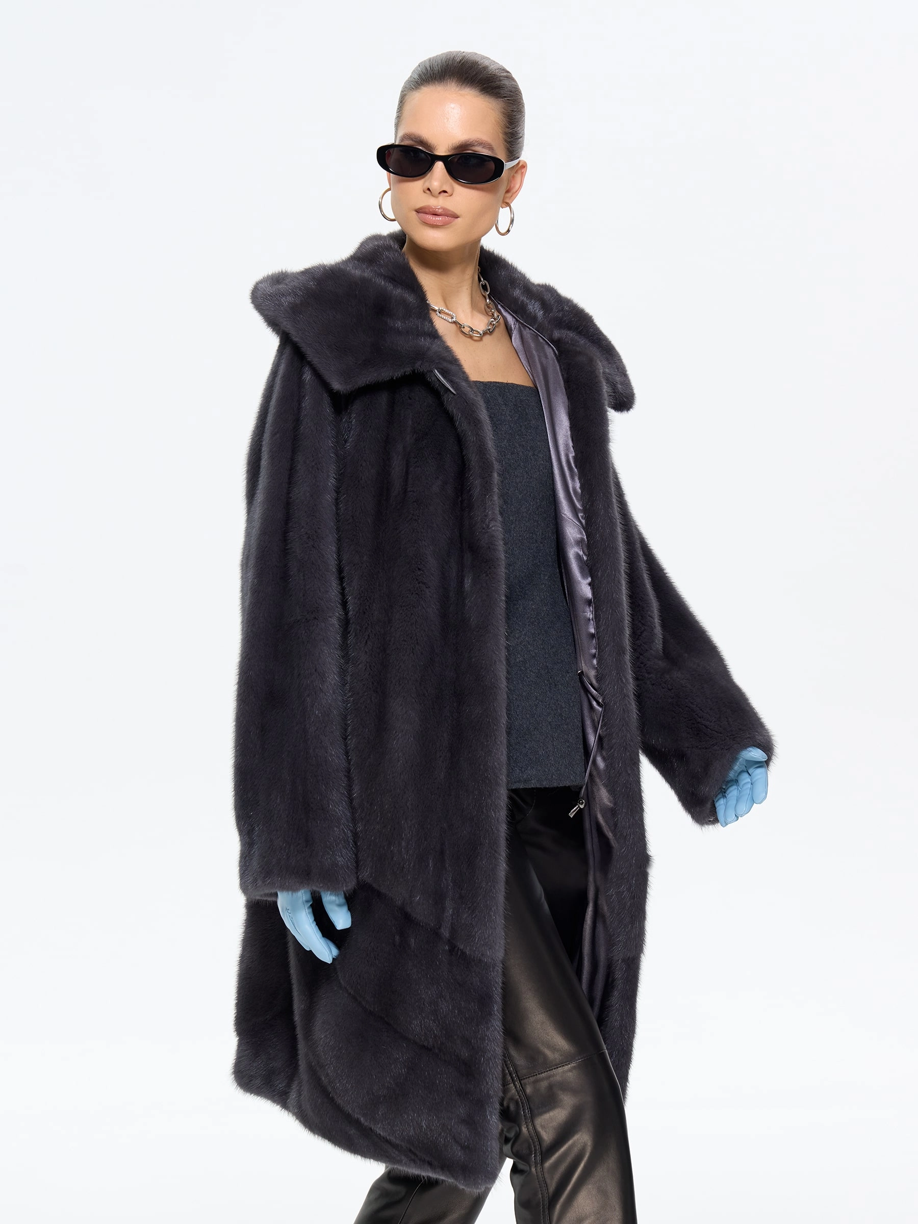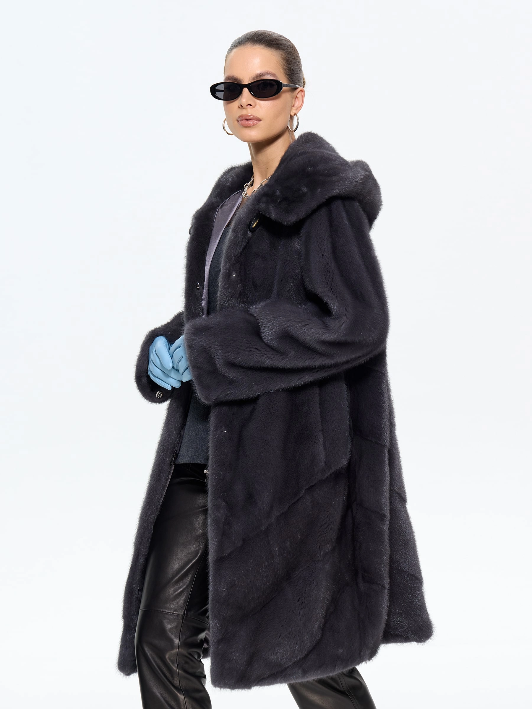 Подарите себе роскошь классики с этой элегантной шубой из густого меха норки премиум-класса с капюшоном. Модель прямого силуэта длиной 100 см искусно сшита с диагональной раскладкой меха на спине и по низу, что придает образу динамику и подчеркивает богатую текстуру меха. Практичность и утонченность сочетаются в деталях: глубокий капюшон, втачные рукава, клипсы и удобные боковые карманы. Стилисты рекомендуют носить эту шубу с джинсами и высокими сапогами для повседневного образа или с платьем-миди и сапогами-челси для элегантного выхода — она станет безупречной инвестицией в ваш стиль на долгие годы.