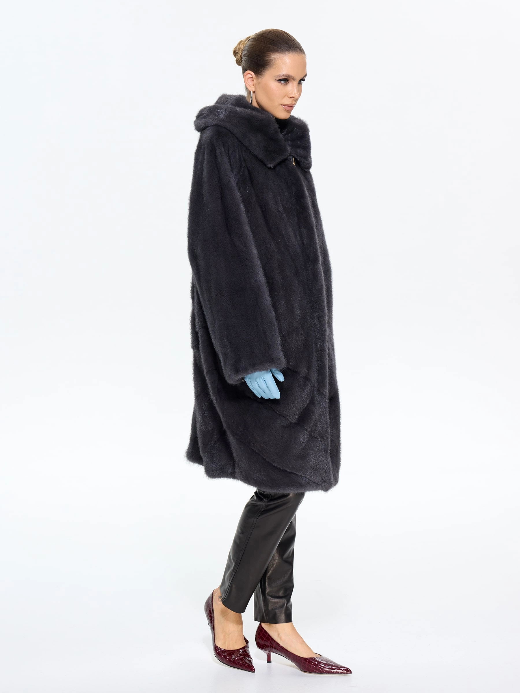 Женская норковая шуба с капюшоном М-101-9- 708, графитовая, размер 52, артикул 65370