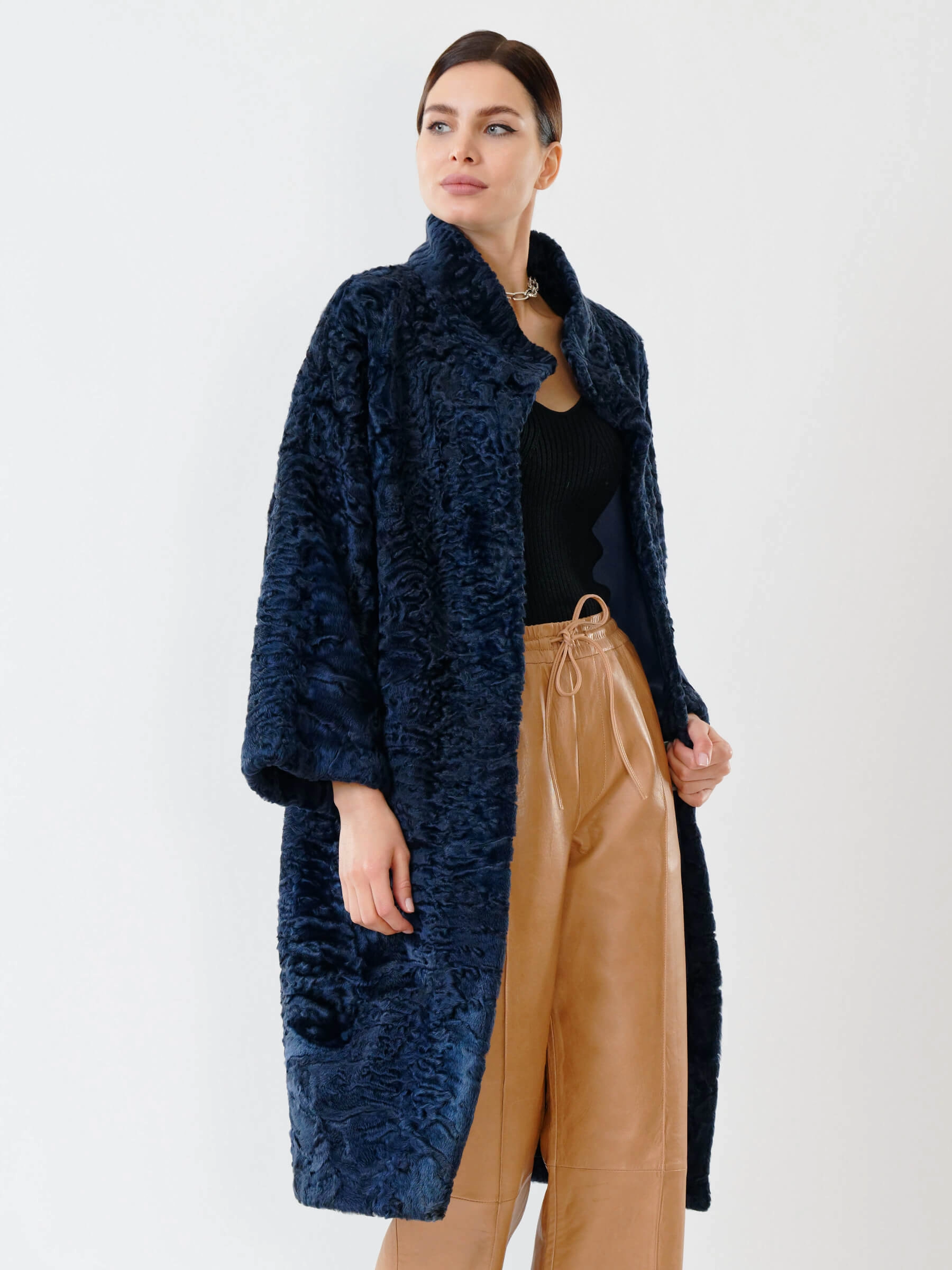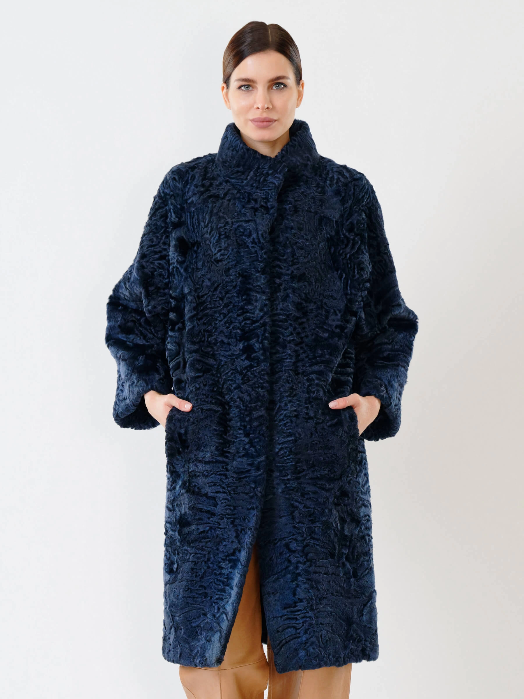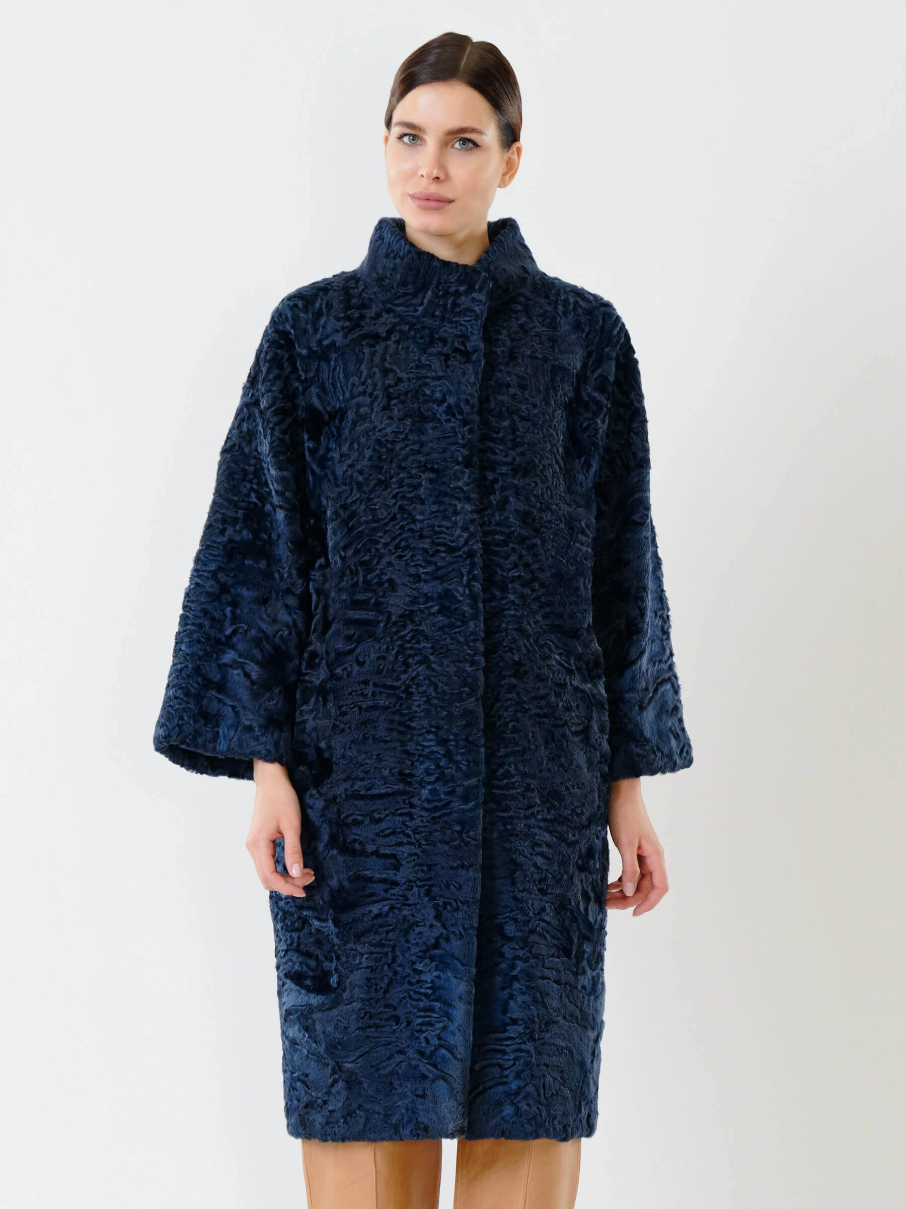 Каракулевая женская шуба 17106(с), синяя, размер 48, артикул 22630