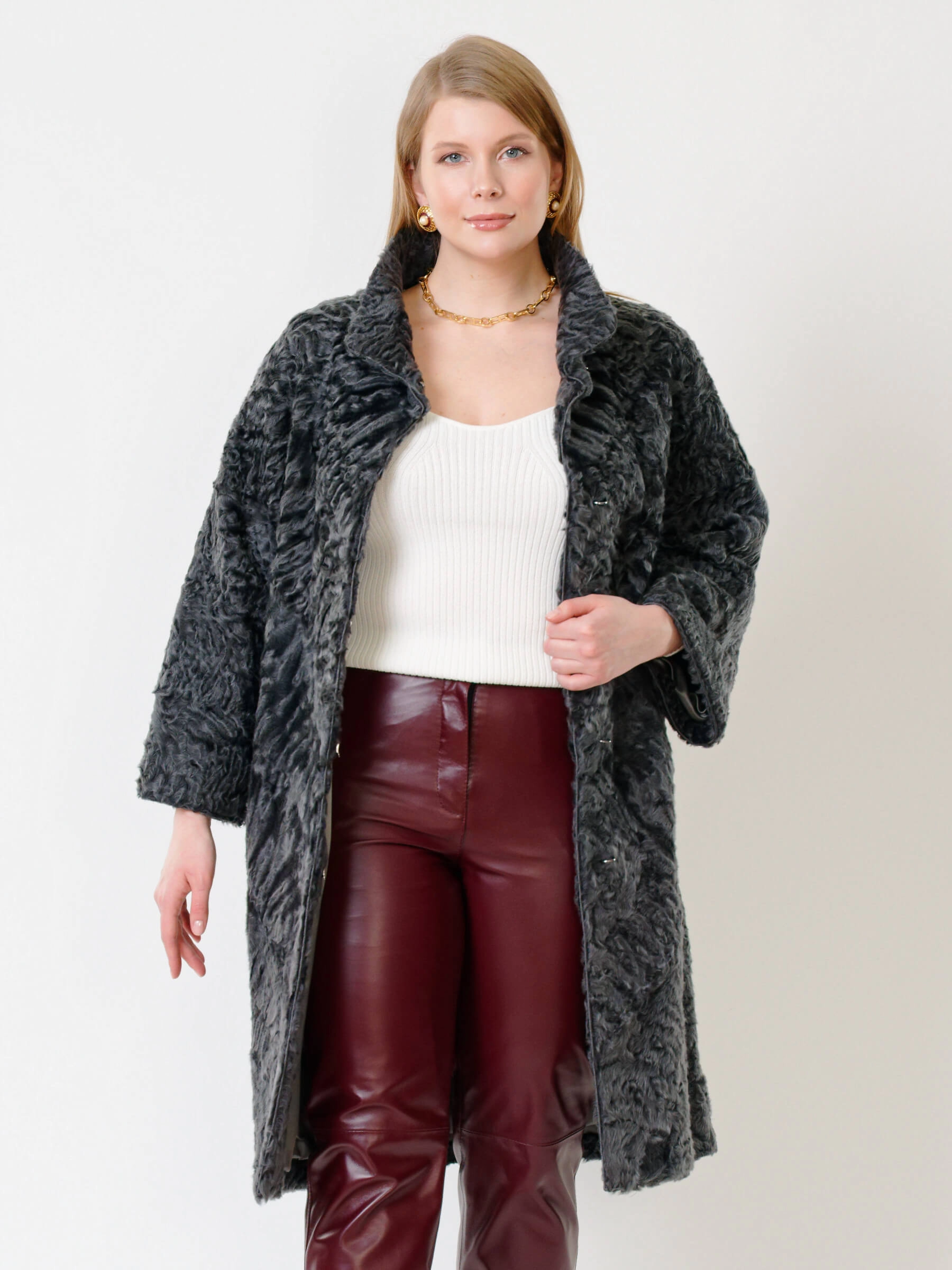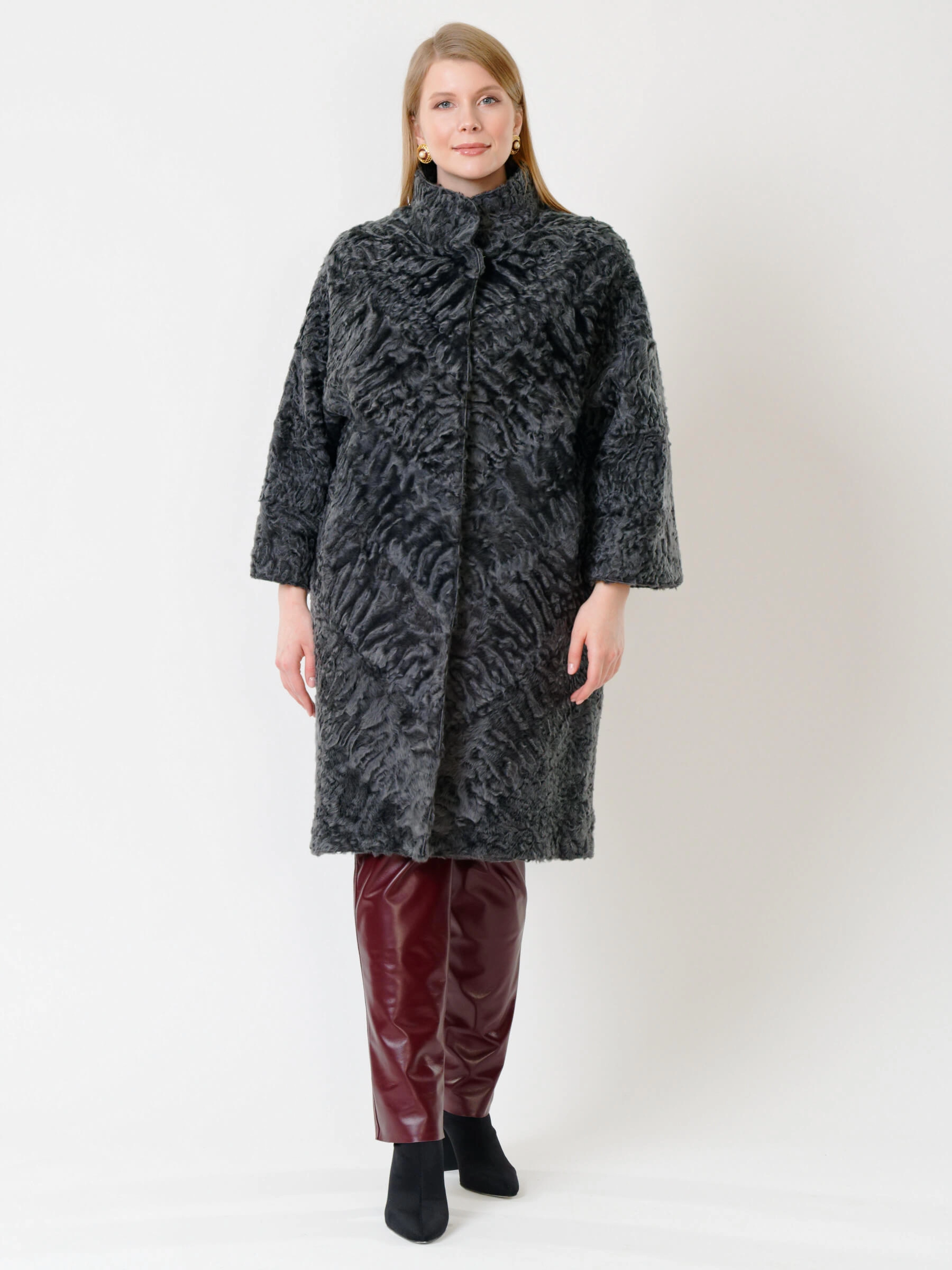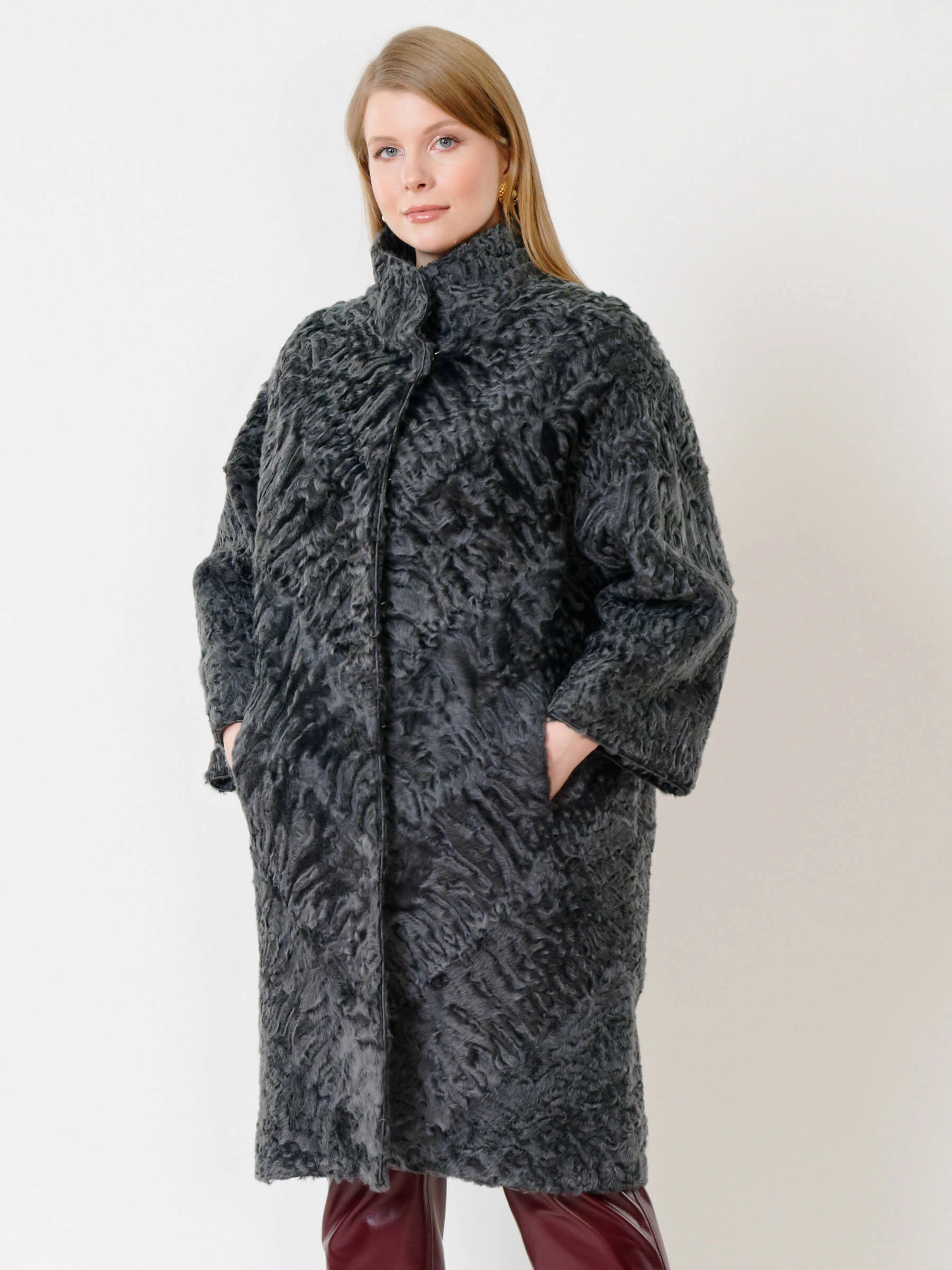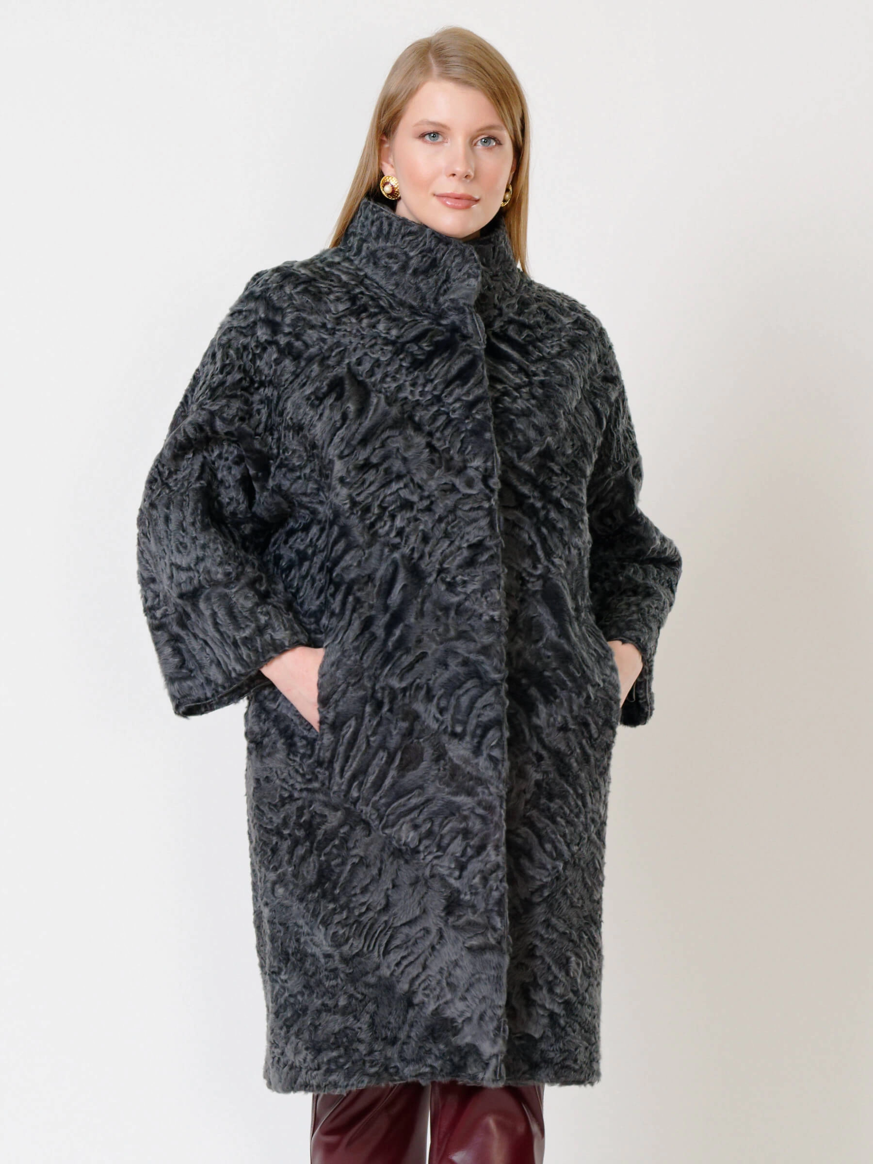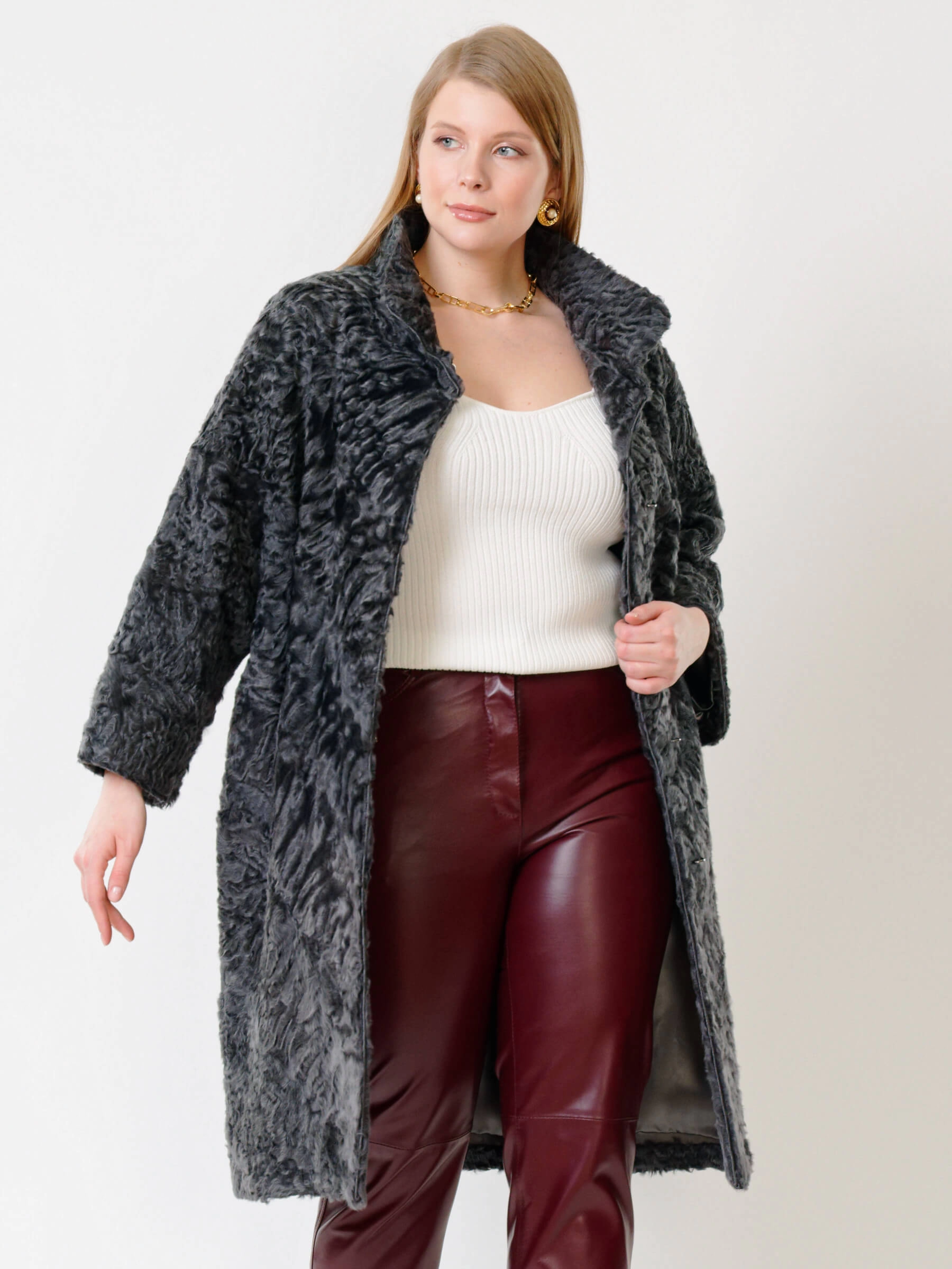 Шуба из меха каракуля женская 17106д, серая, размер 52, артикул 22690