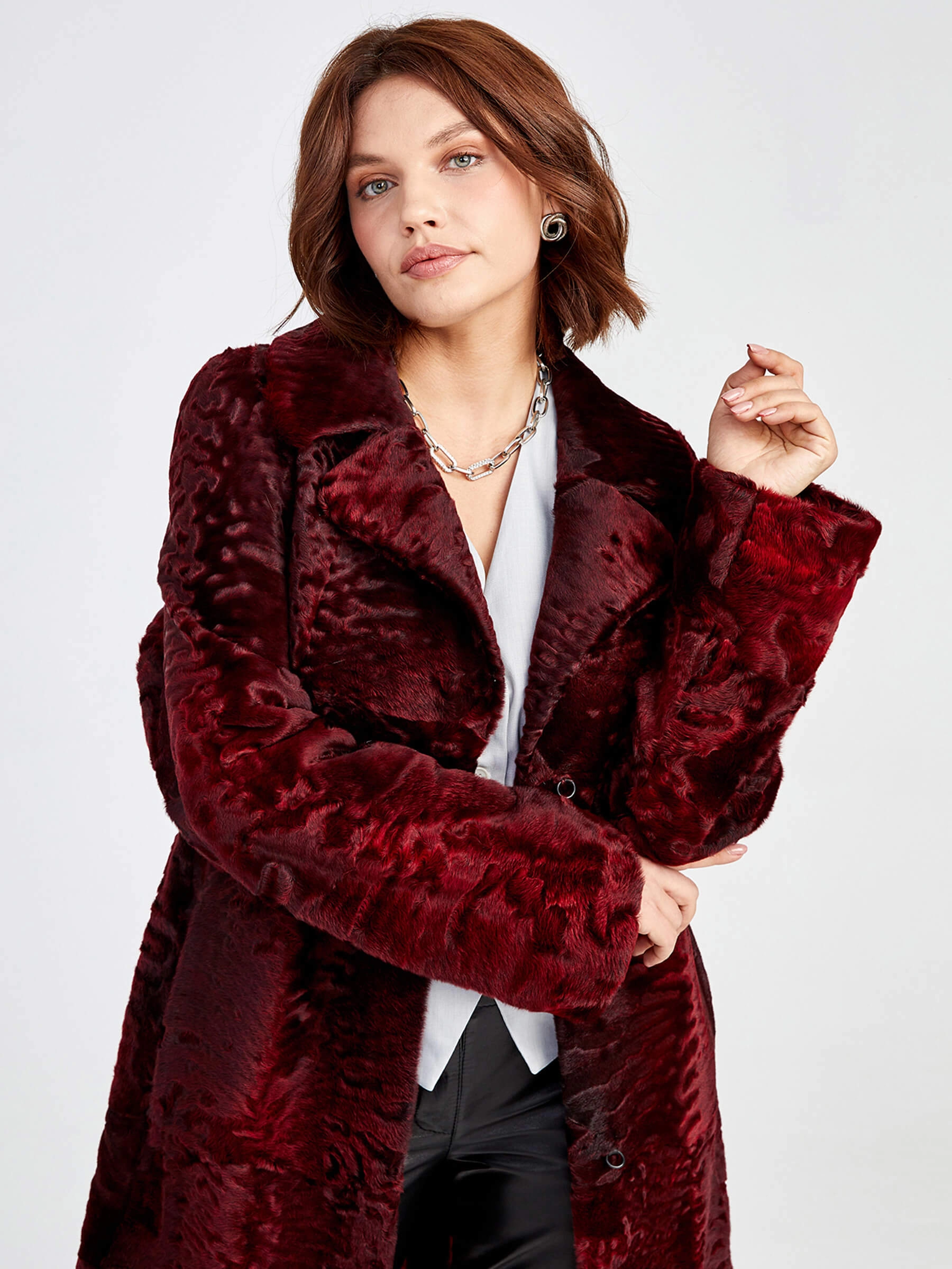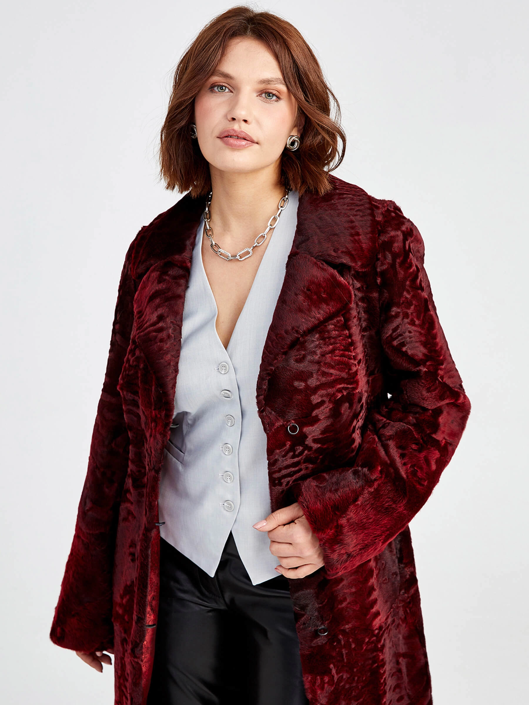 Шуба из меха каракуля для женщин Лола(в) _2, бордовая, размер 48, артикул 22780