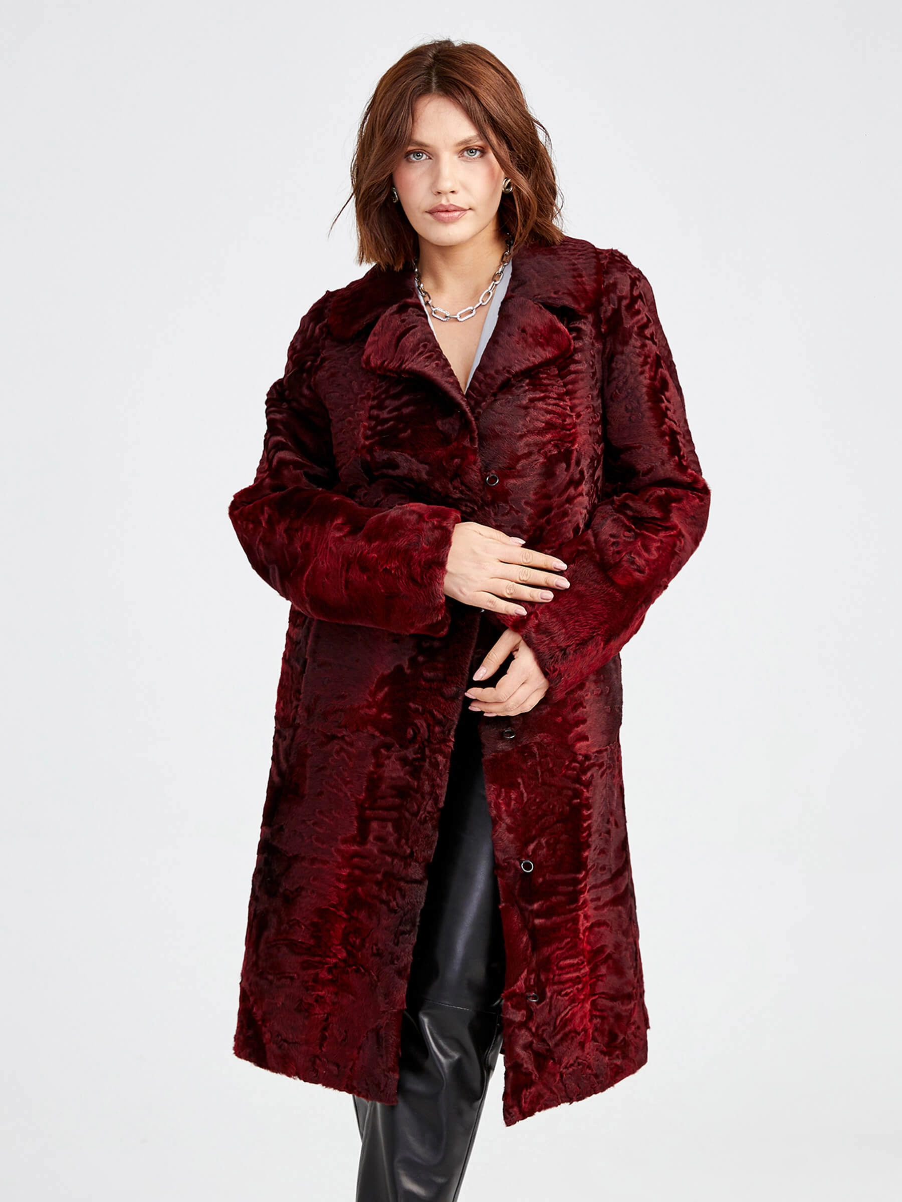 Товар шуба из меха каракуля для женщин лола(в) _2, бордовая, размер 48, артикул 22780 выполнен из мех каракуля с застежкой клипсы. Рассчитан на сезон: осень-зима. Длина изделия свыше 90 см, силуэт прямой.