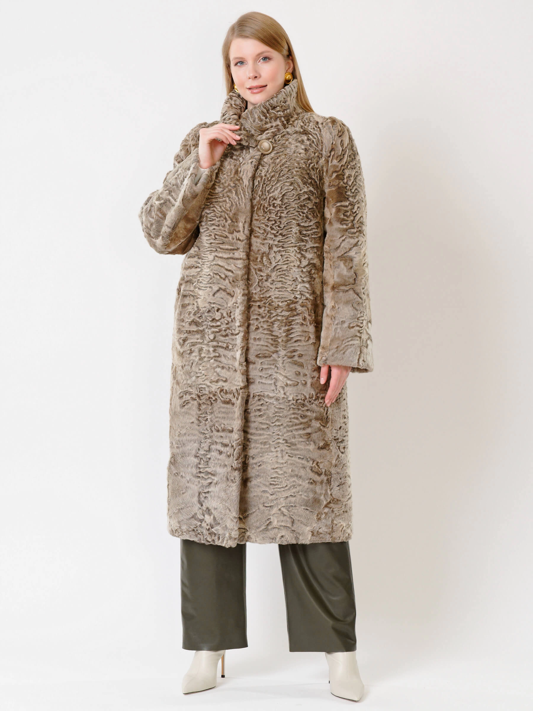 Товар длинная женская шуба из меха каракуля надежда, бежевая, размер 52, артикул 22670 выполнен из мех каракуля с застежкой клипсы. Рассчитан на сезон: осень-зима. Длина изделия свыше 90 см, силуэт прямой.