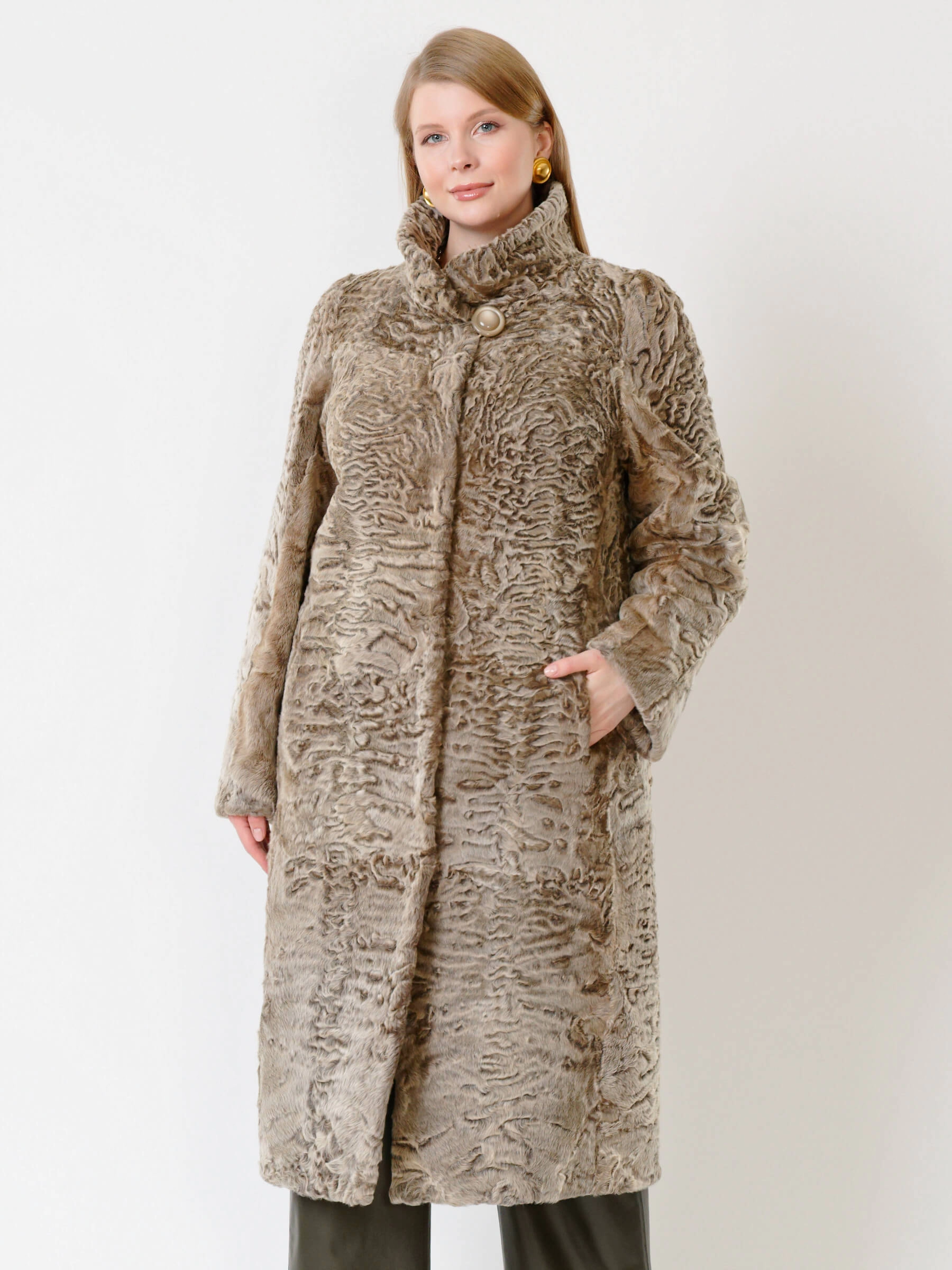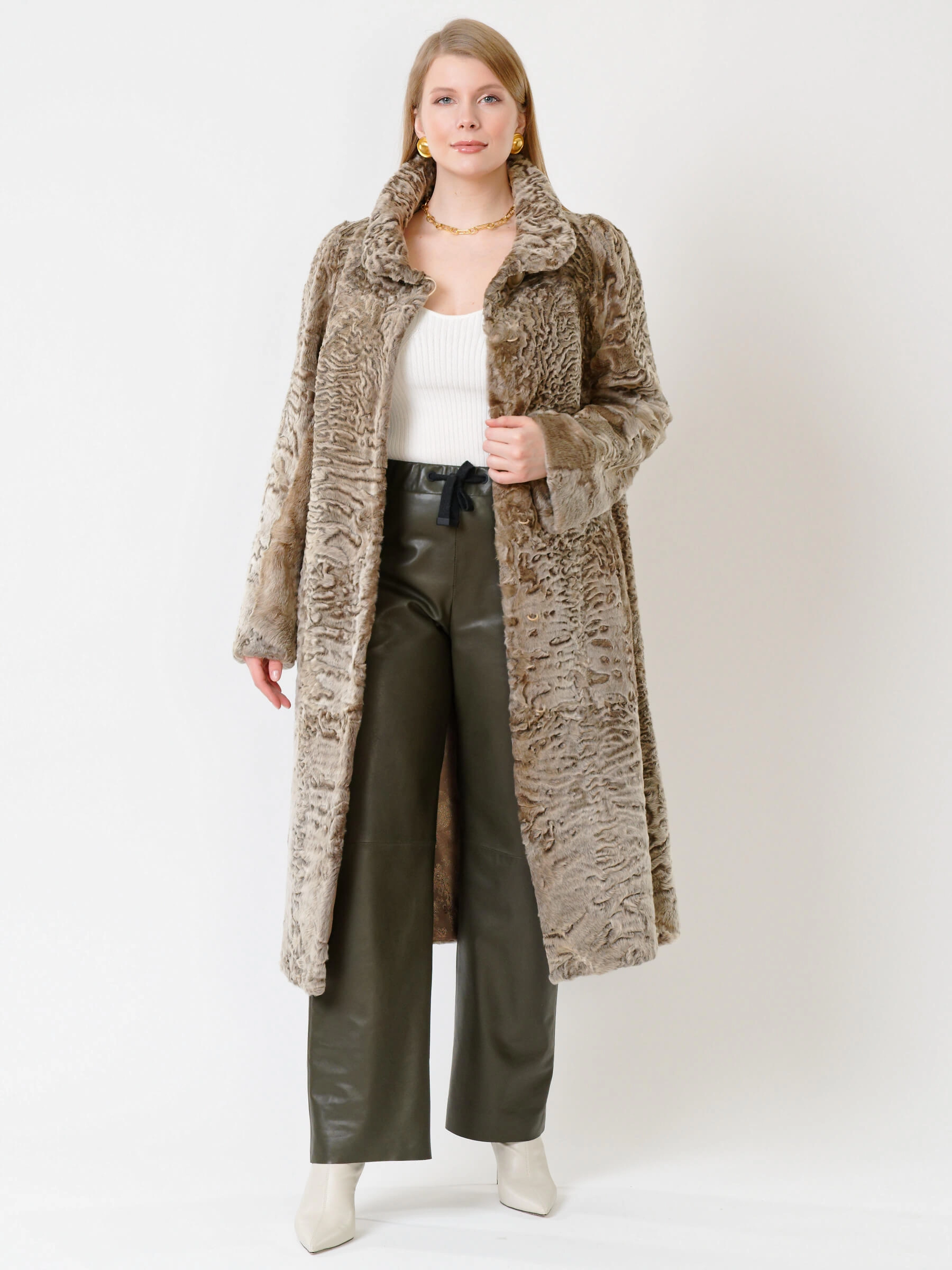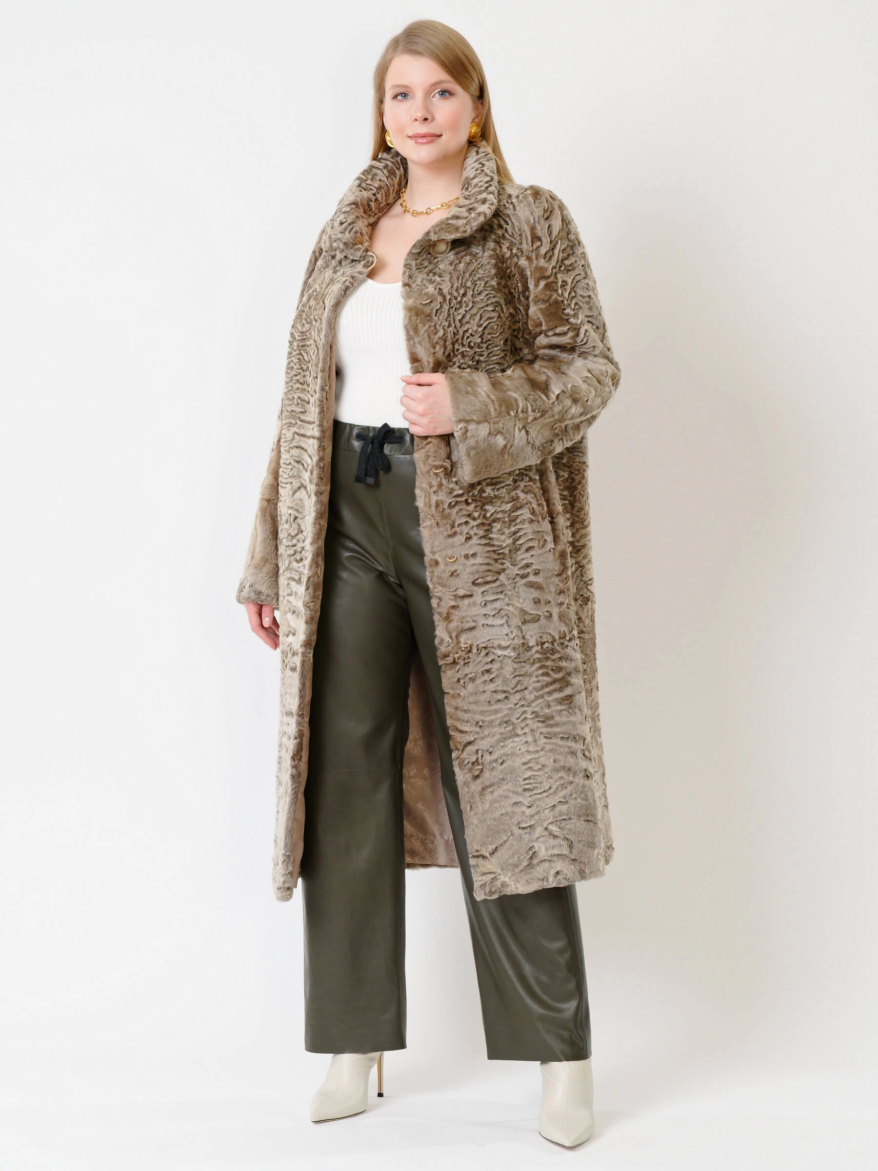 Длинная женская шуба из меха каракуля Надежда, бежевая, размер 52, артикул 22670