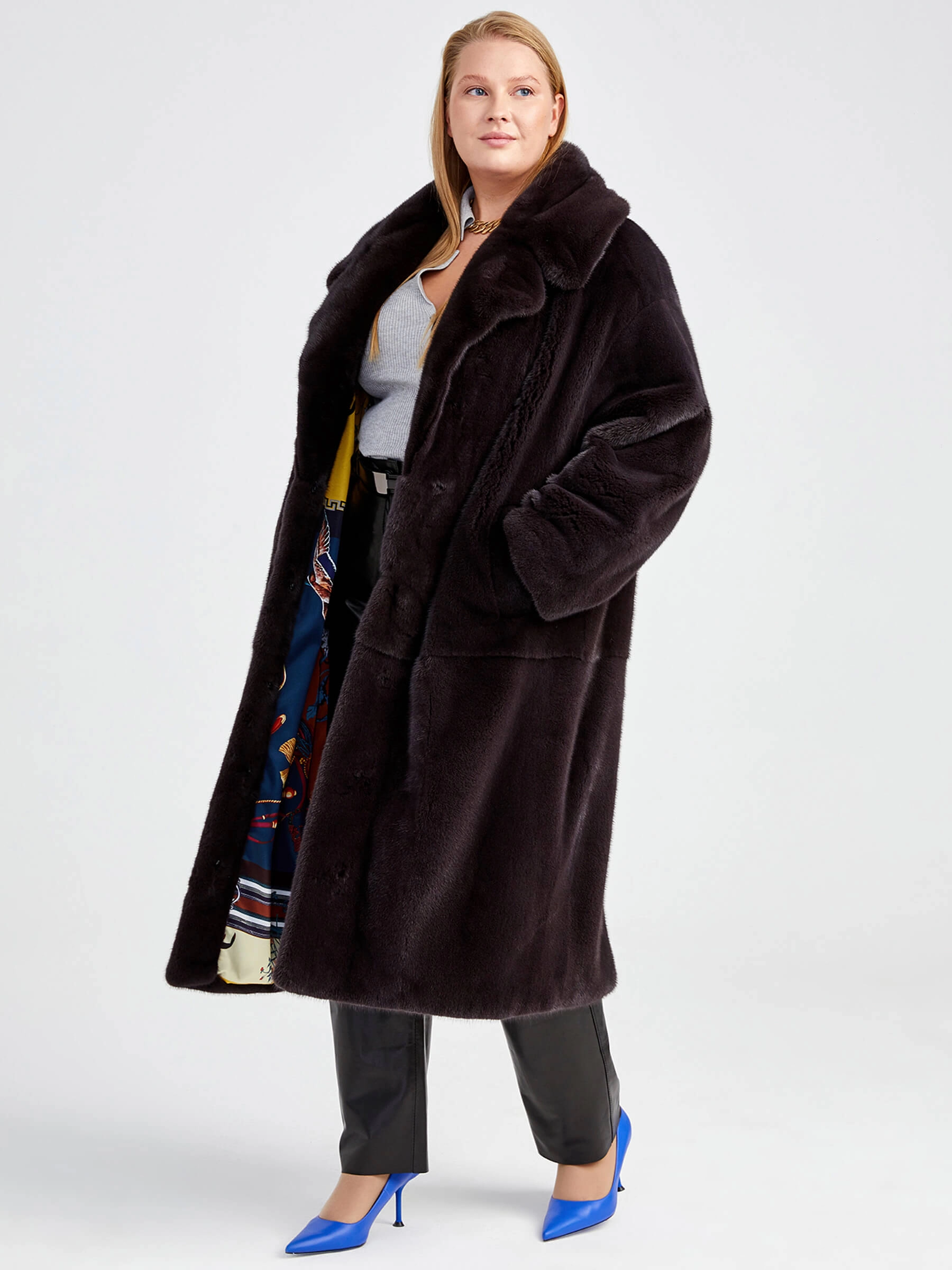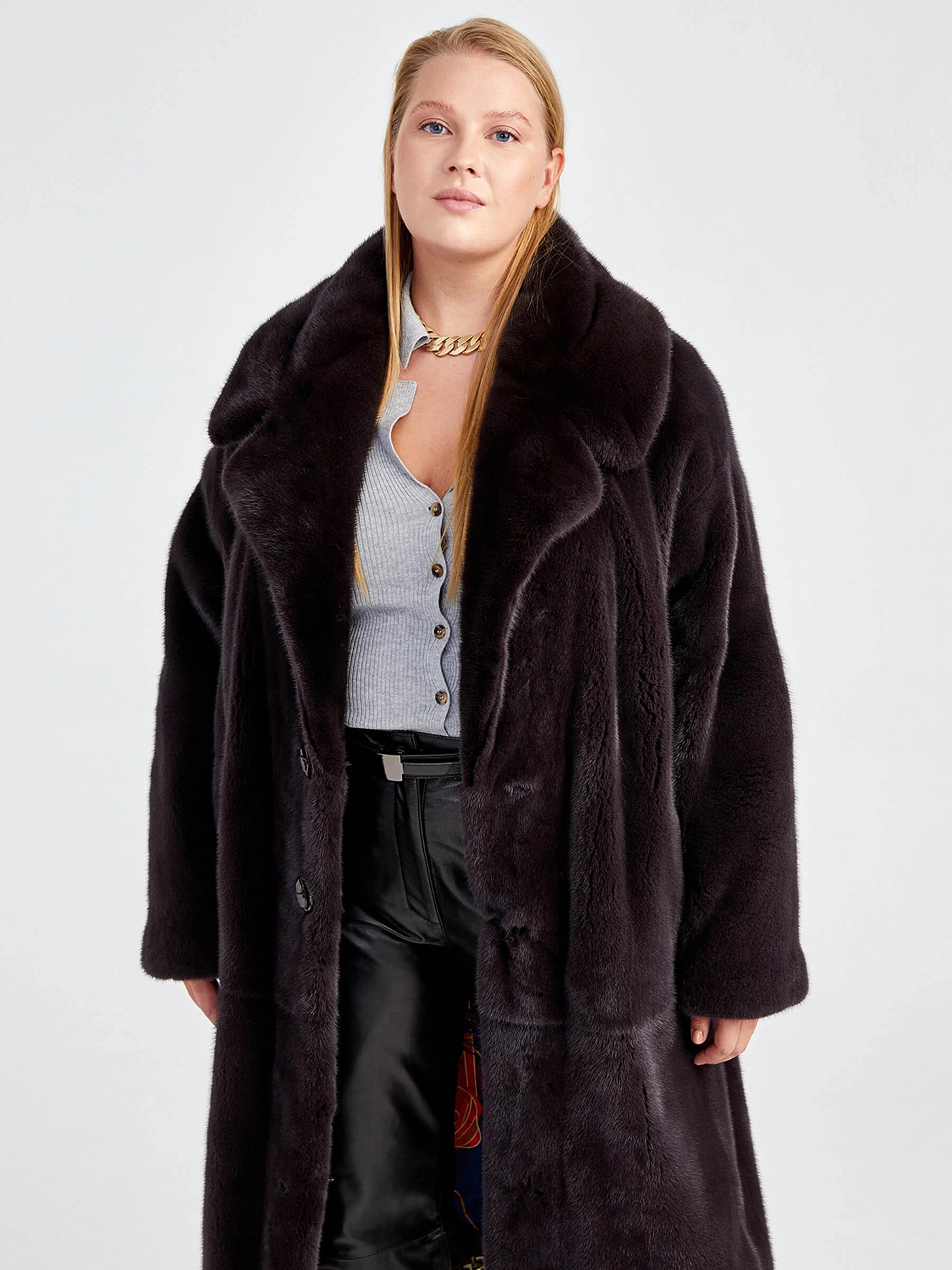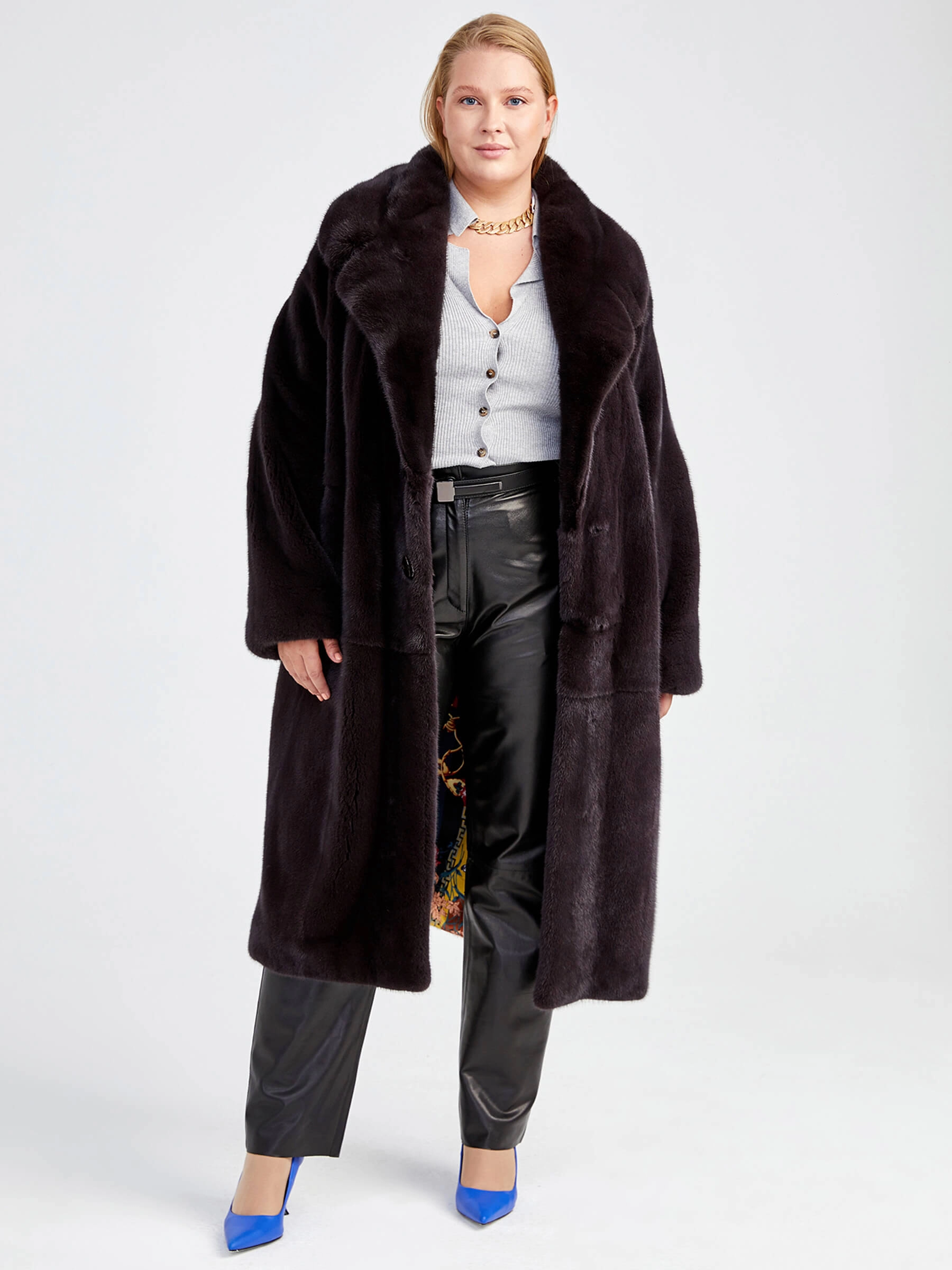 Длинная норковая женская шуба с английским воротником 19410(ав), фиолетовый, размер 48, артикул 32890