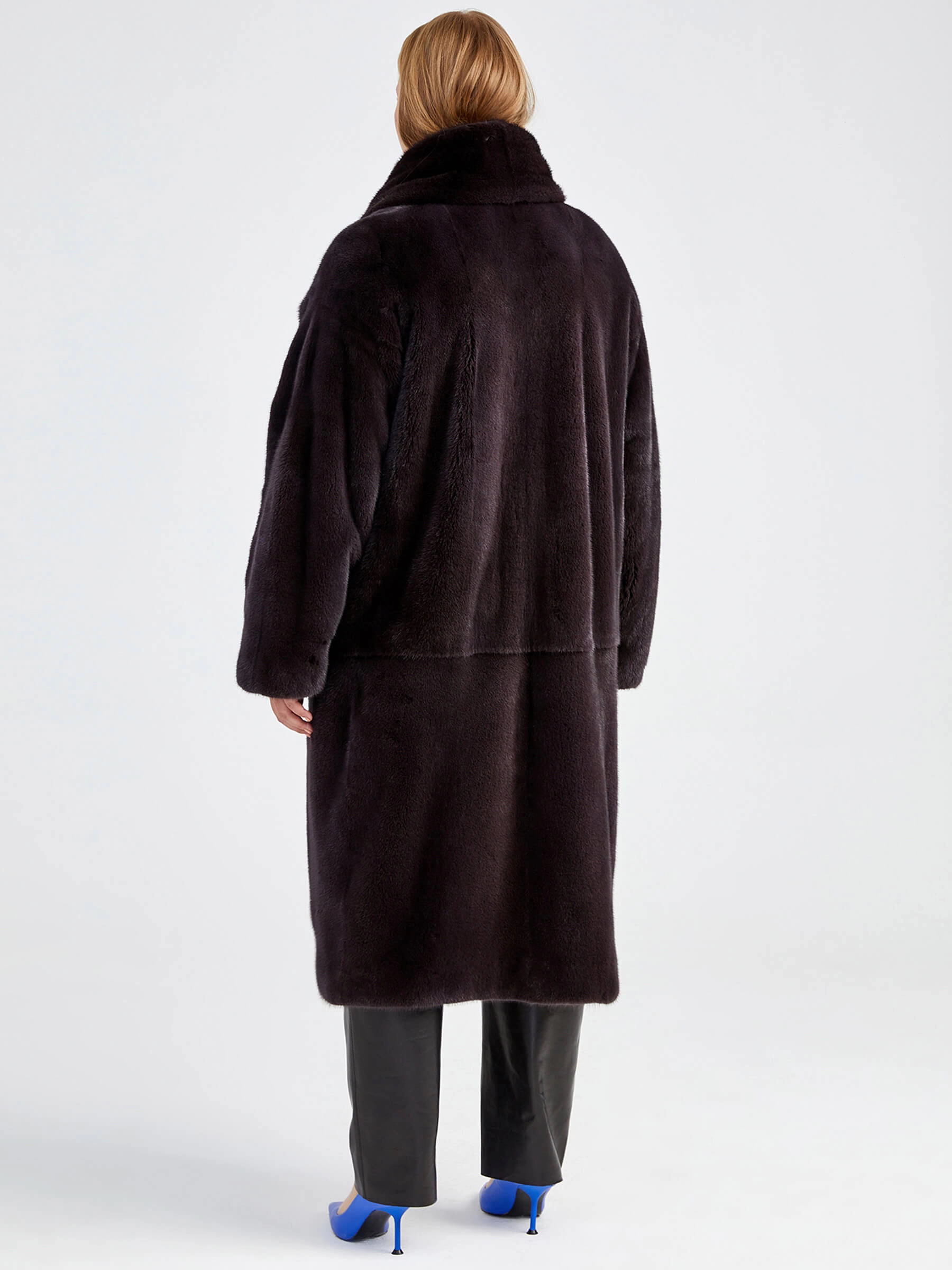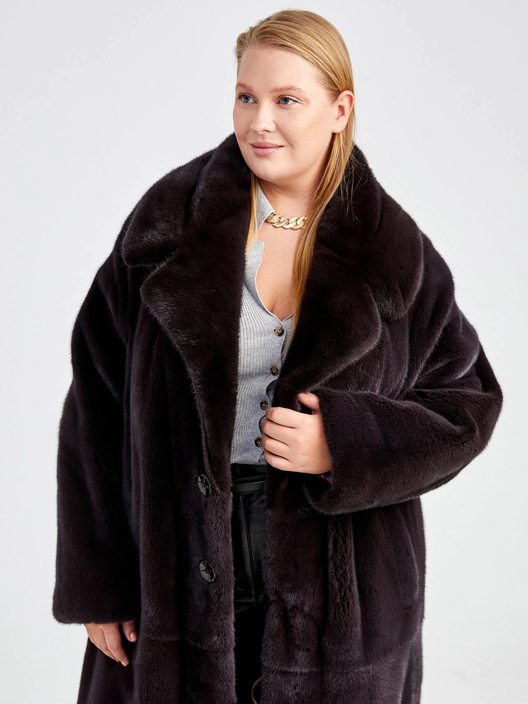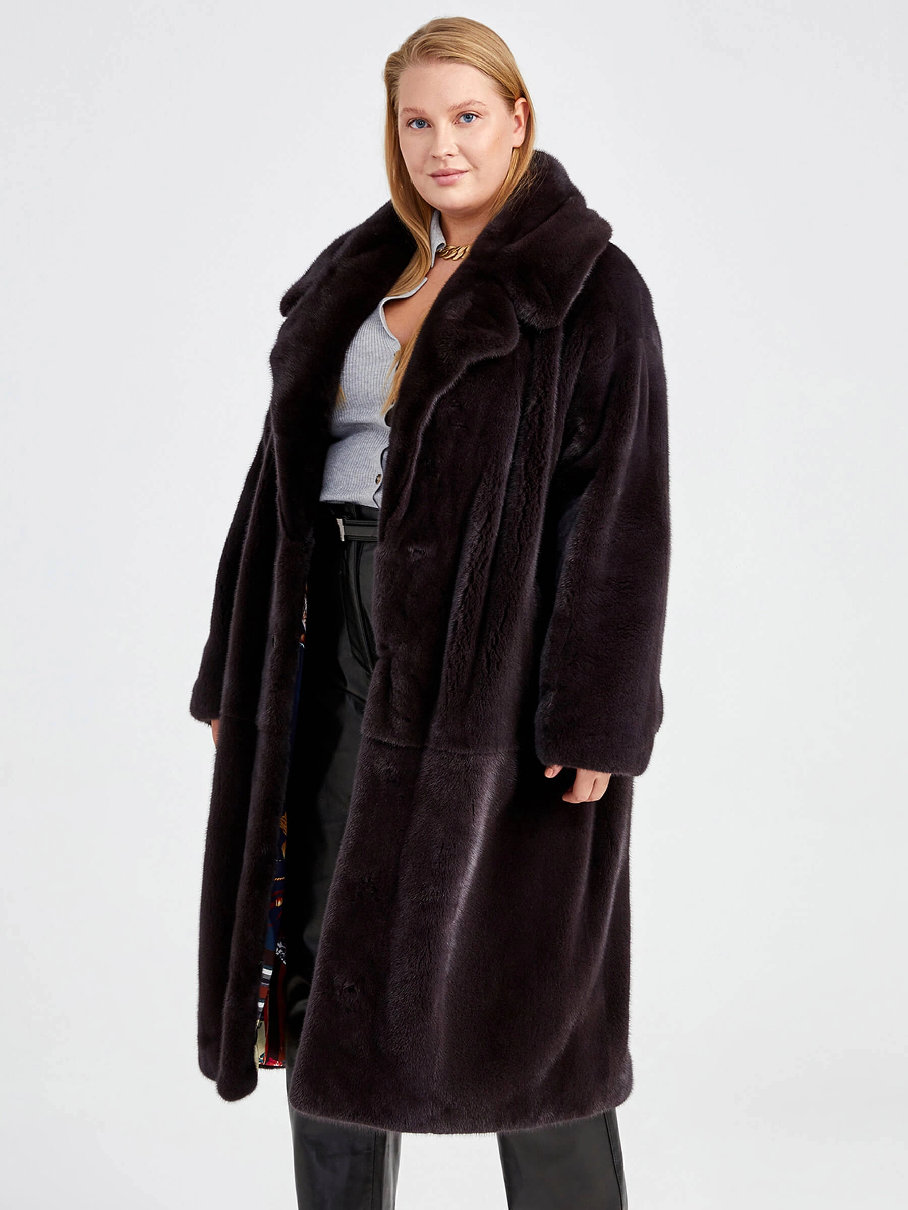 Длинная норковая женская шуба с английским воротником 19410(ав), фиолетовый, размер 48, артикул 32890