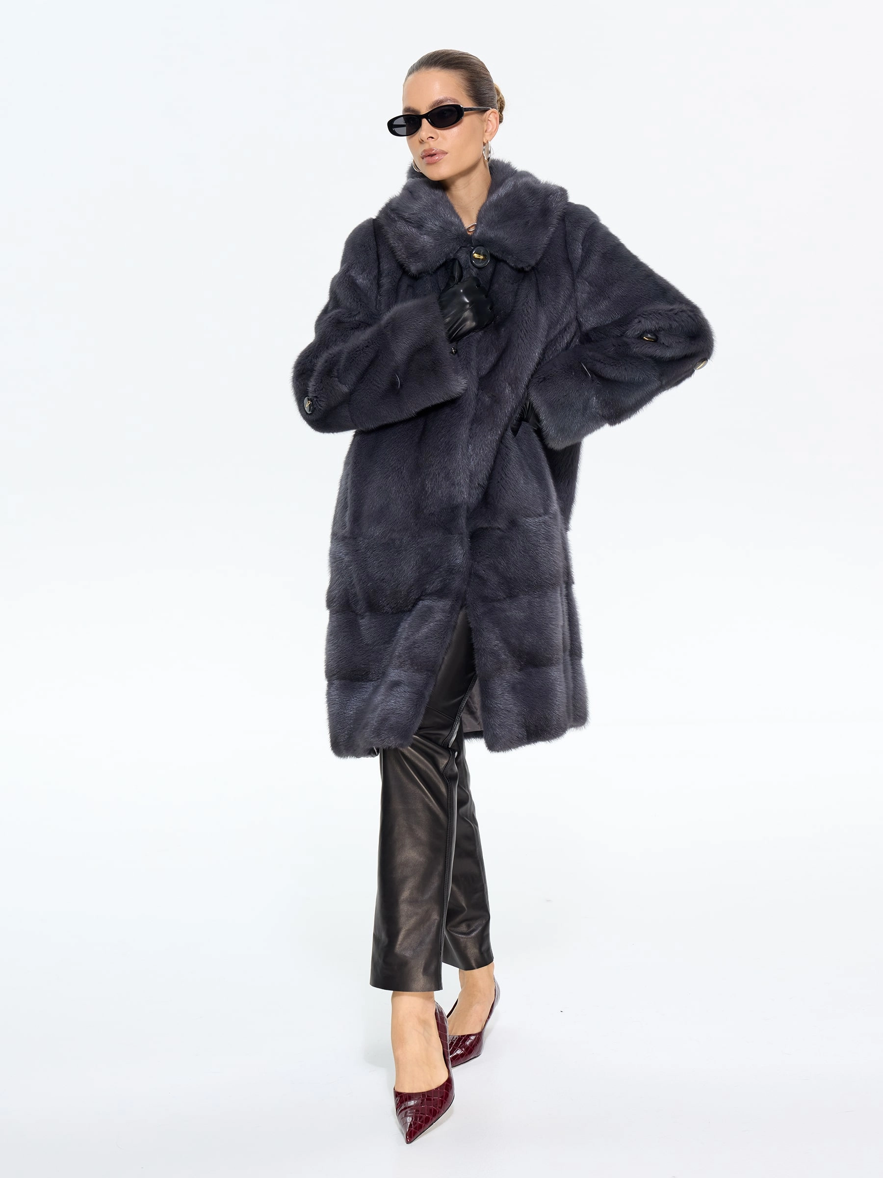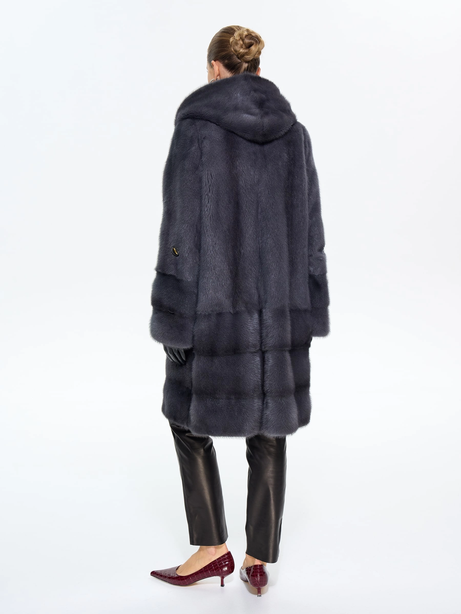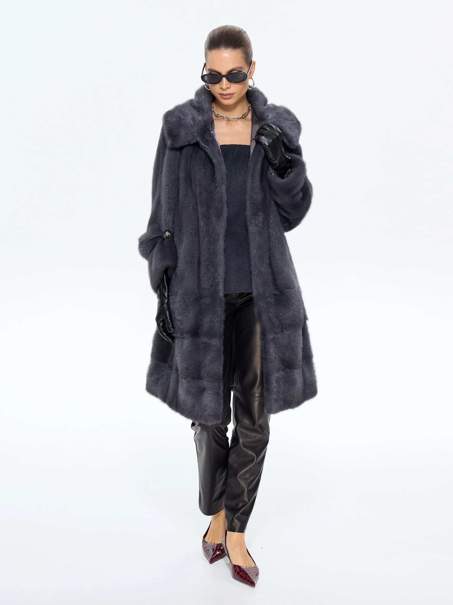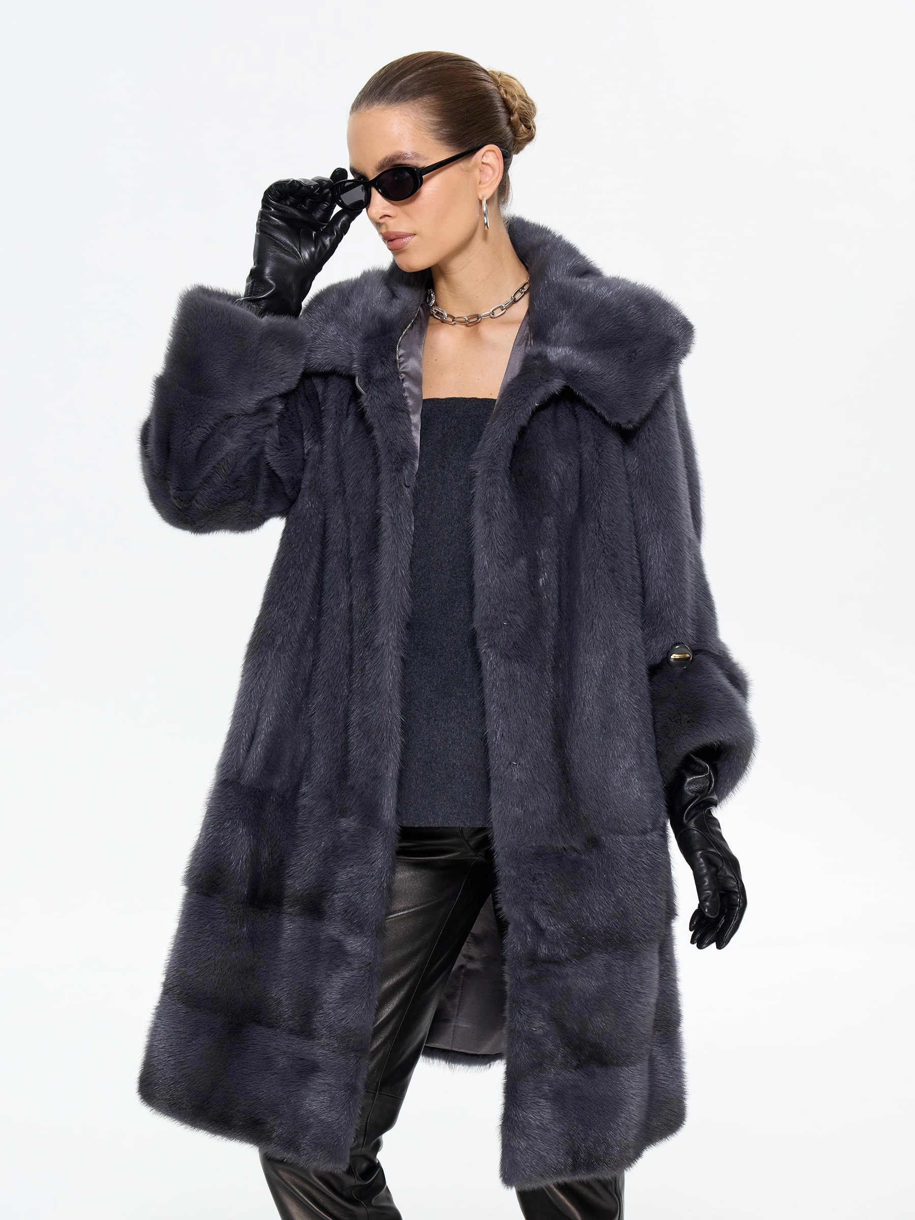 Классическая шуба из меха норки премиум-класса в глубоком оттенке «графит» — это инвестиция в ваш безупречный стиль. Ее прямой силуэт длиной 100 см, практичный капюшон и уникальная деталь — регулируемый по длине втачной рукав — позволяют идеально адаптировать образ под ваше настроение. Совет от стилистов: универсальность этой шубы поражает. Для повседневной элегантности сочетайте ее с джинсами, водолазкой и уггами, а для вечернего выхода — набросьте на плечи поверх однотонного платья-футляра. Эта модель не просто согреет, а стаольным образом подчеркнет вашу утонченность и чувство стиля в любой ситуации.