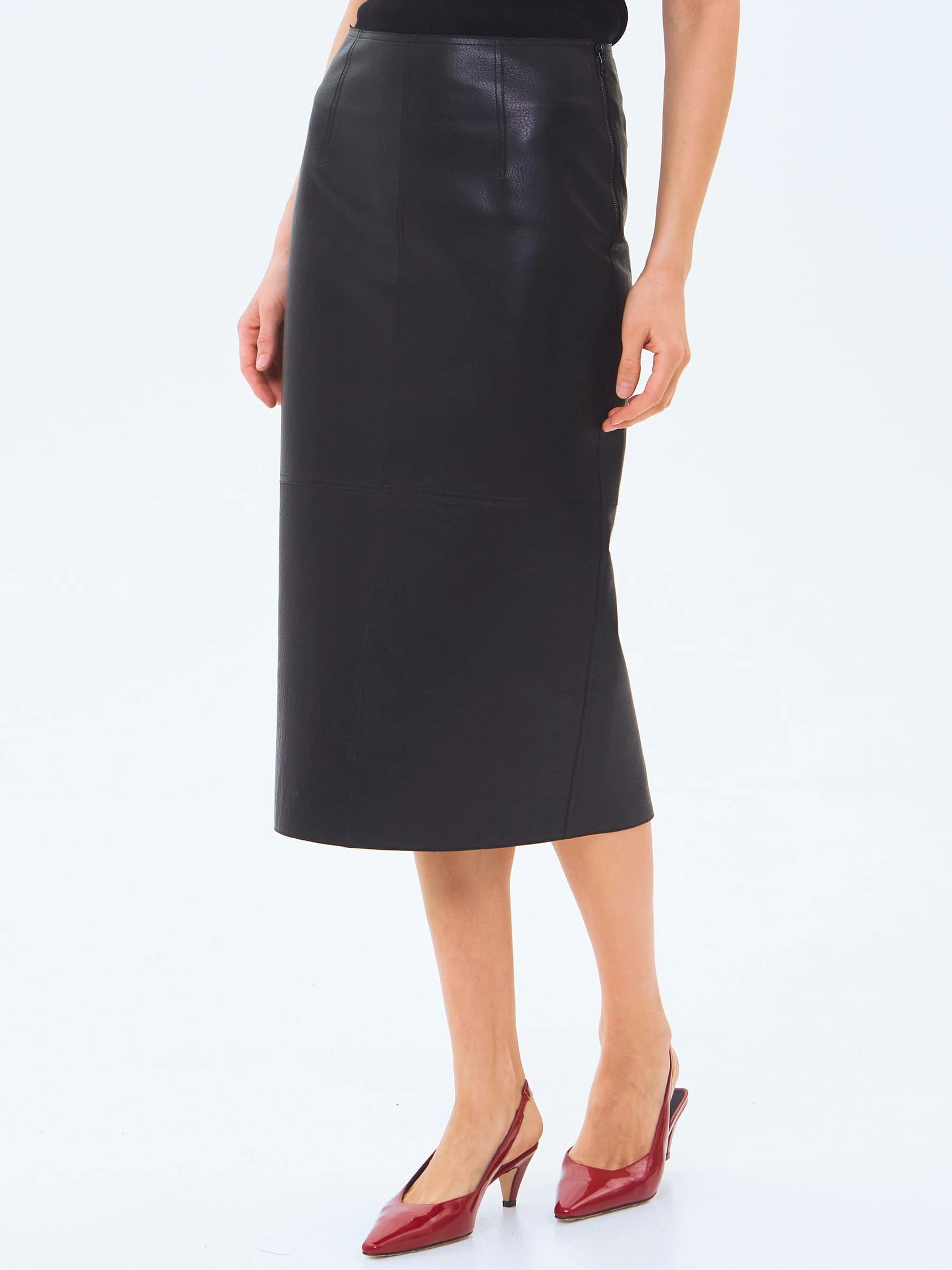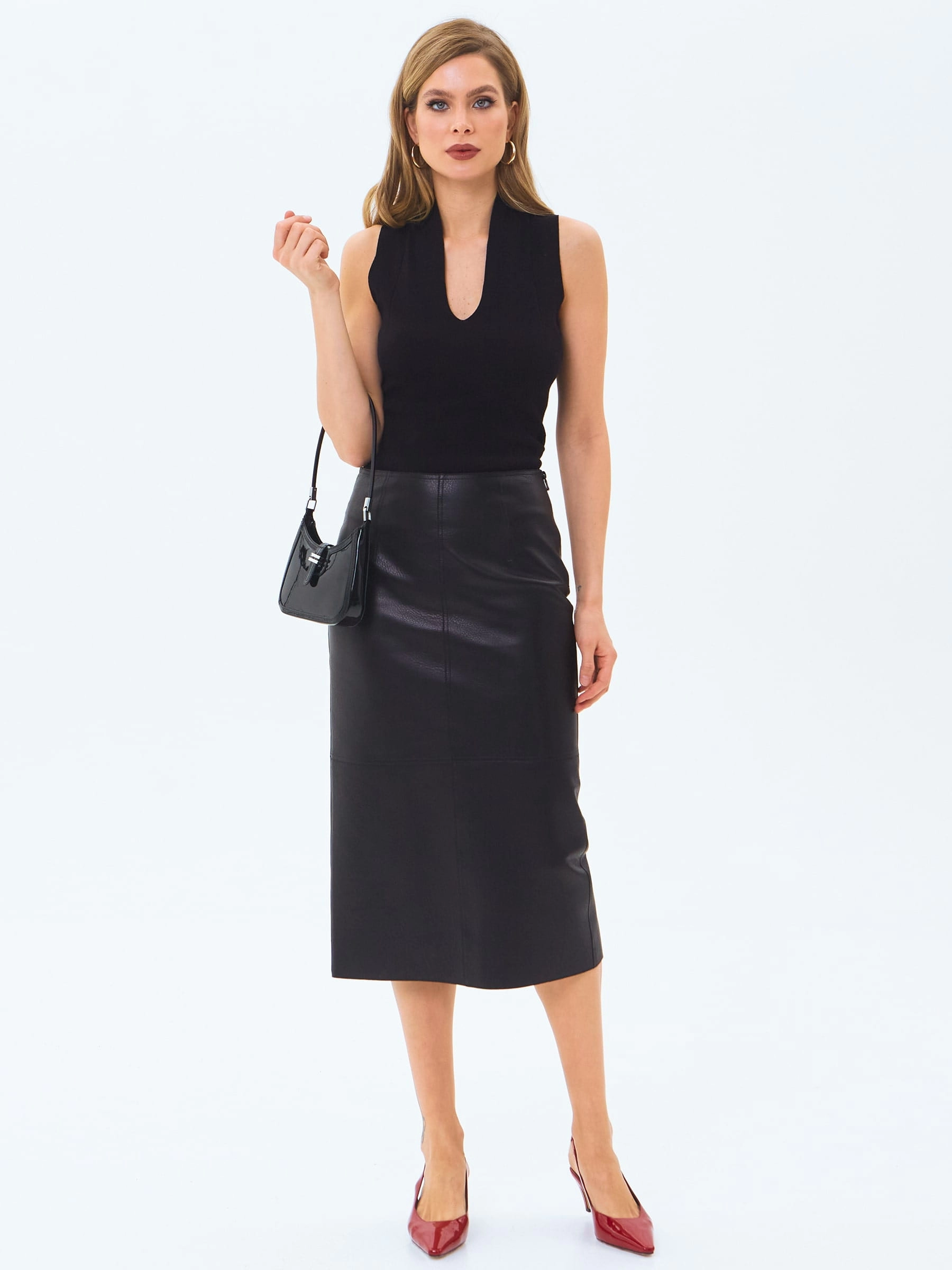 Кожаная юбка-карандаш 18, черная, размер 50, артикул 86000