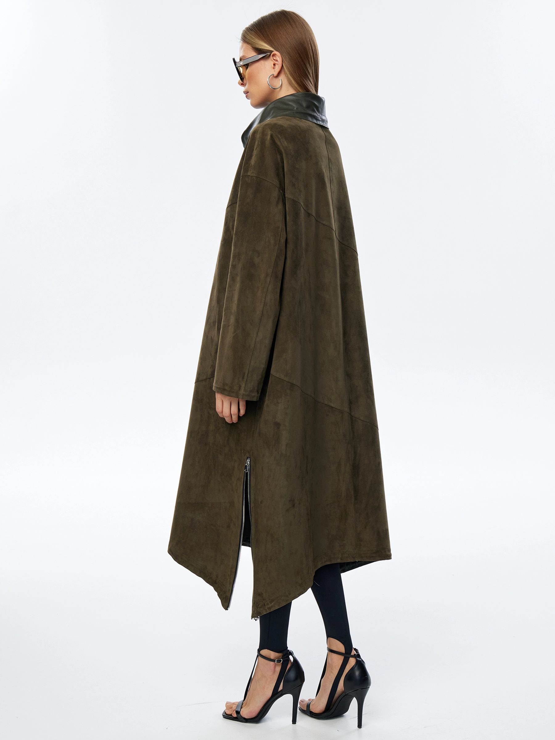 Женский длинный замшевый плащ оверсайз премиум класса 3061з, хаки, размер 50, артикул 23600
