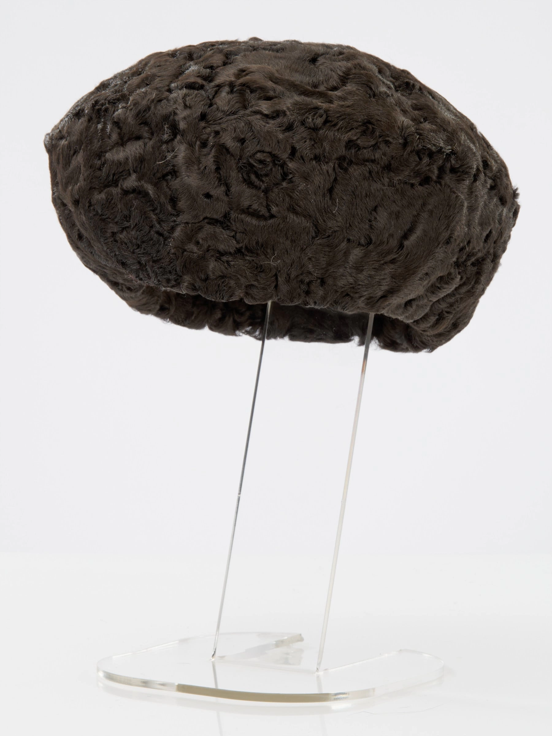 Женский головной убор из меха каракуля Берет, темно-коричневый, артикул 51060
